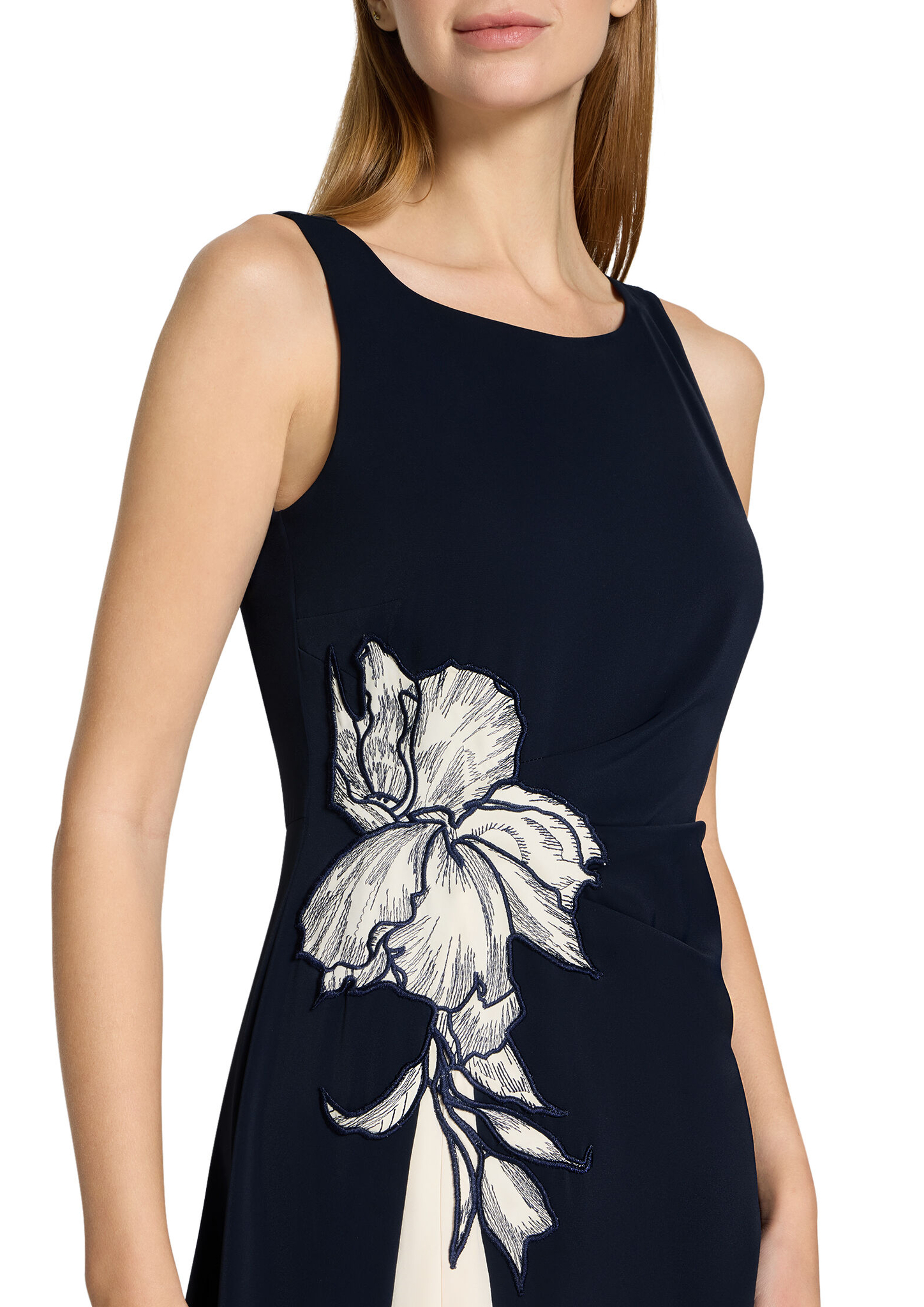 * Passform: Ausgestellt * Gesamtlänge: 120 cm * Länge ab Taille: 78 cm * Ärmellänge: Ohne Arm * Ausschnittform: Rundhals-Ausschnitt * Längeninfo: Midi * Verschluss: Reißverschluss * Muster: Placement * Futter: 100% Polyester * Besatz: 100% Polyester