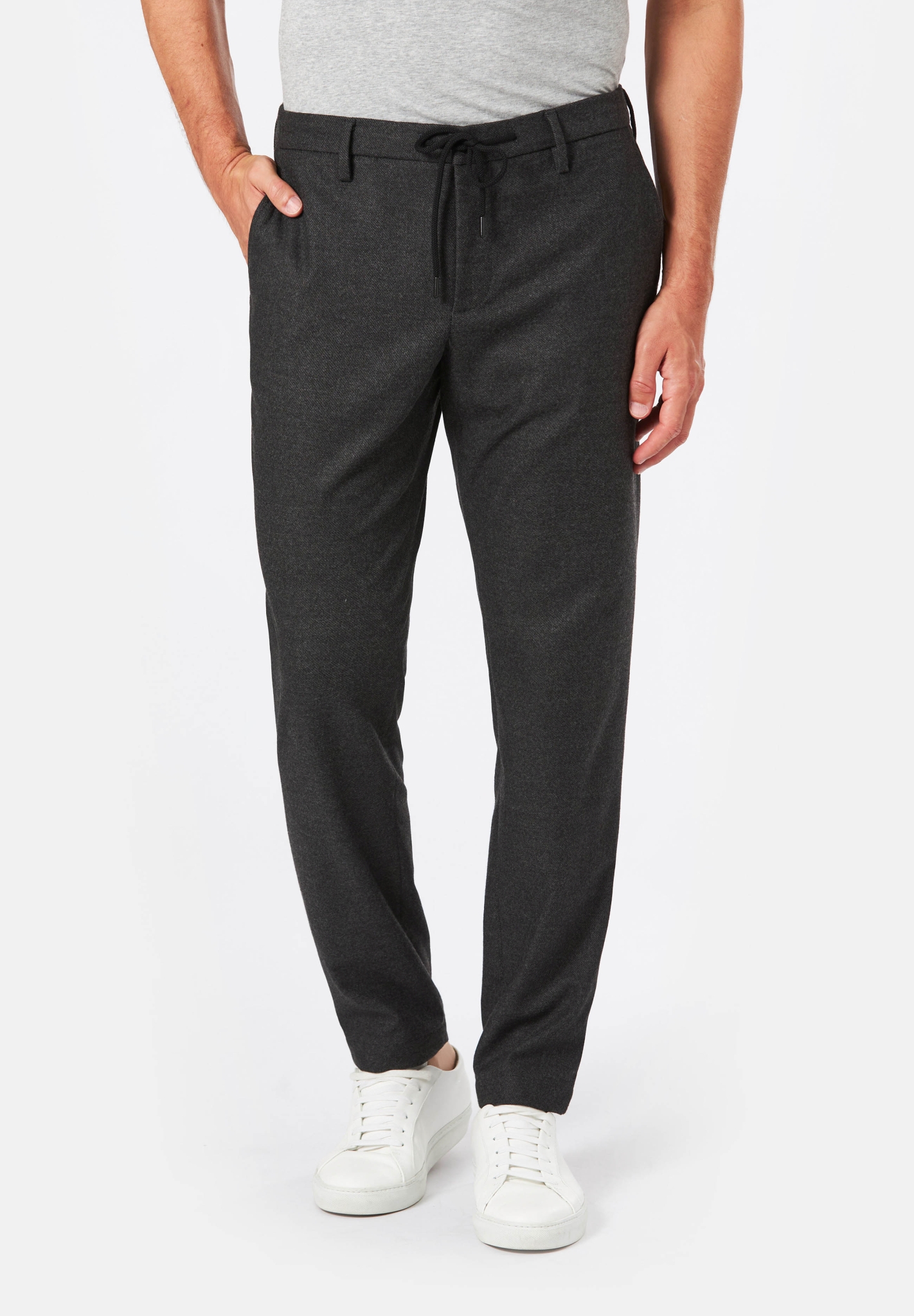 Diese Chino mit Kordelzug besticht durch den smarten Wool Look. Durch den variabel tragbaren Kordelzug kann diese Hose sportlich oder gepflegt getragen werden.