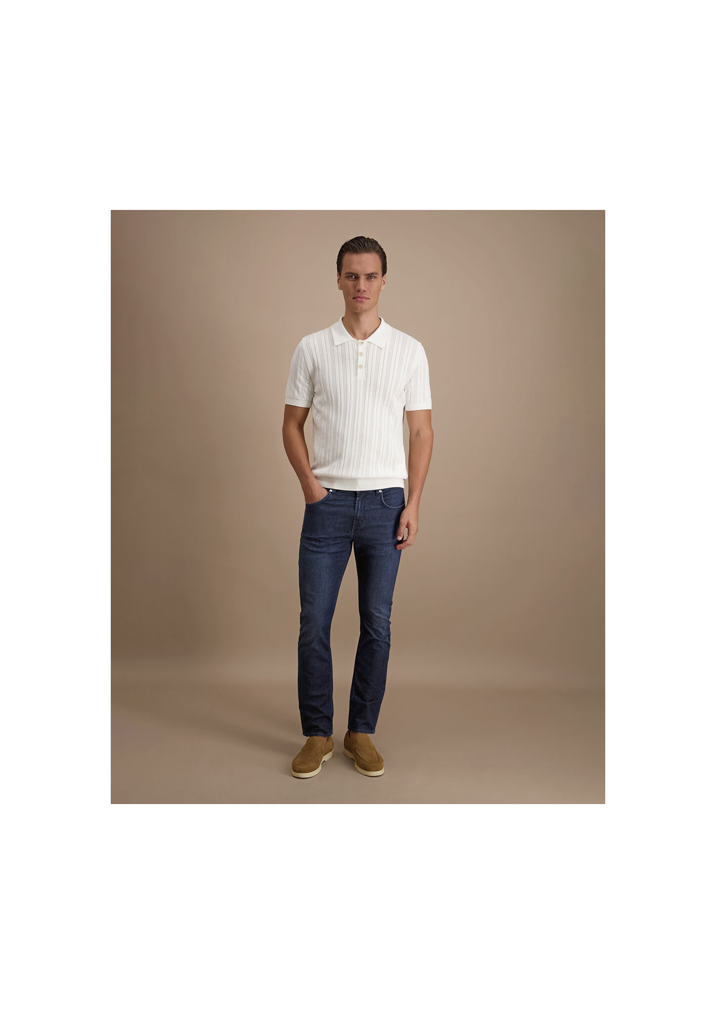 Leichte Sommerjeans aus elastischem Baumwolldenim. Regular Fit mit geradem Beinverlauf. mehr