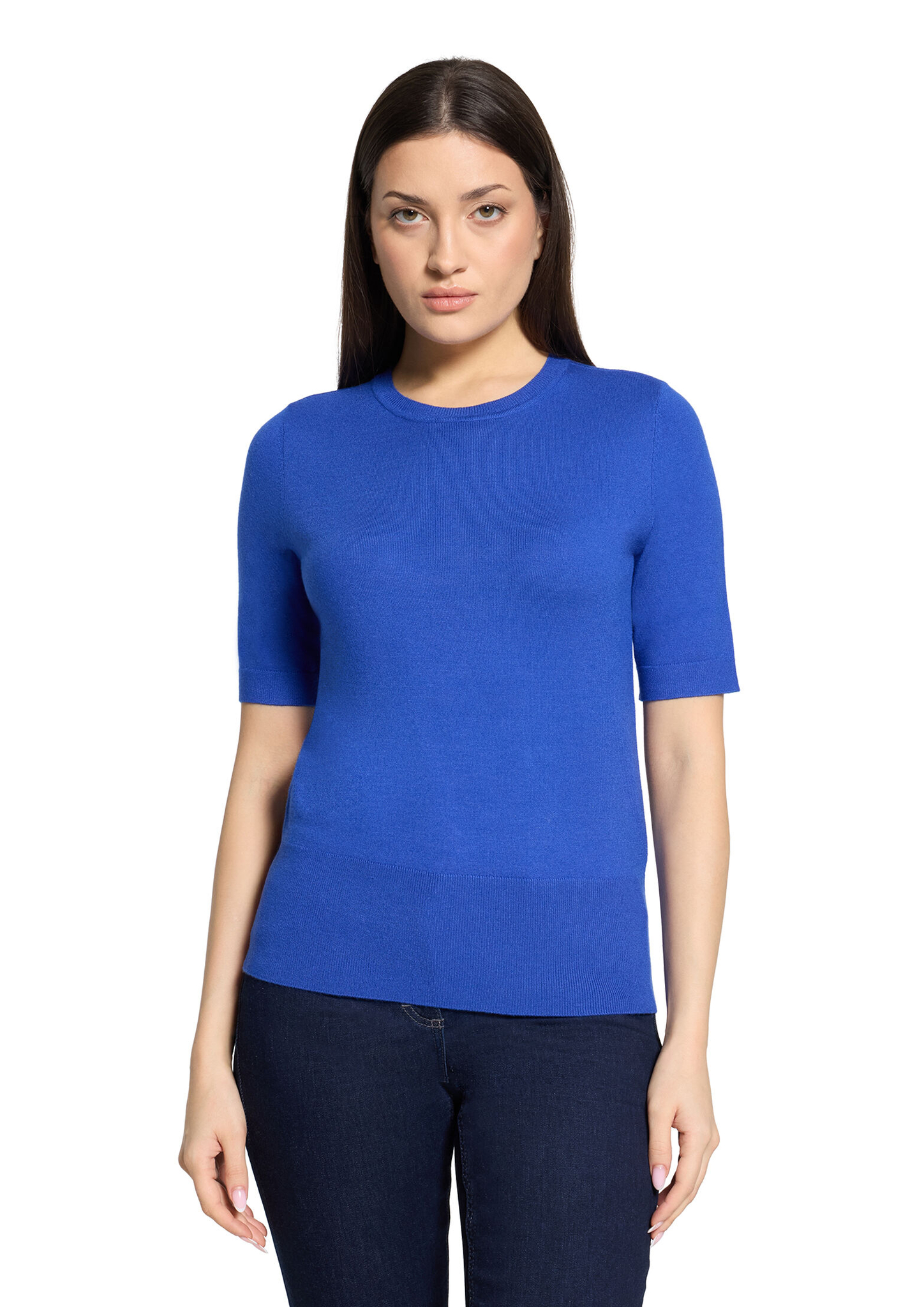 * Passform: Figurnah * Gesamtlänge: 62 cm * Ärmellänge: Halbarm * Ausschnittform: Rundhals-Ausschnitt * Materialart: Strick * Muster: Uni