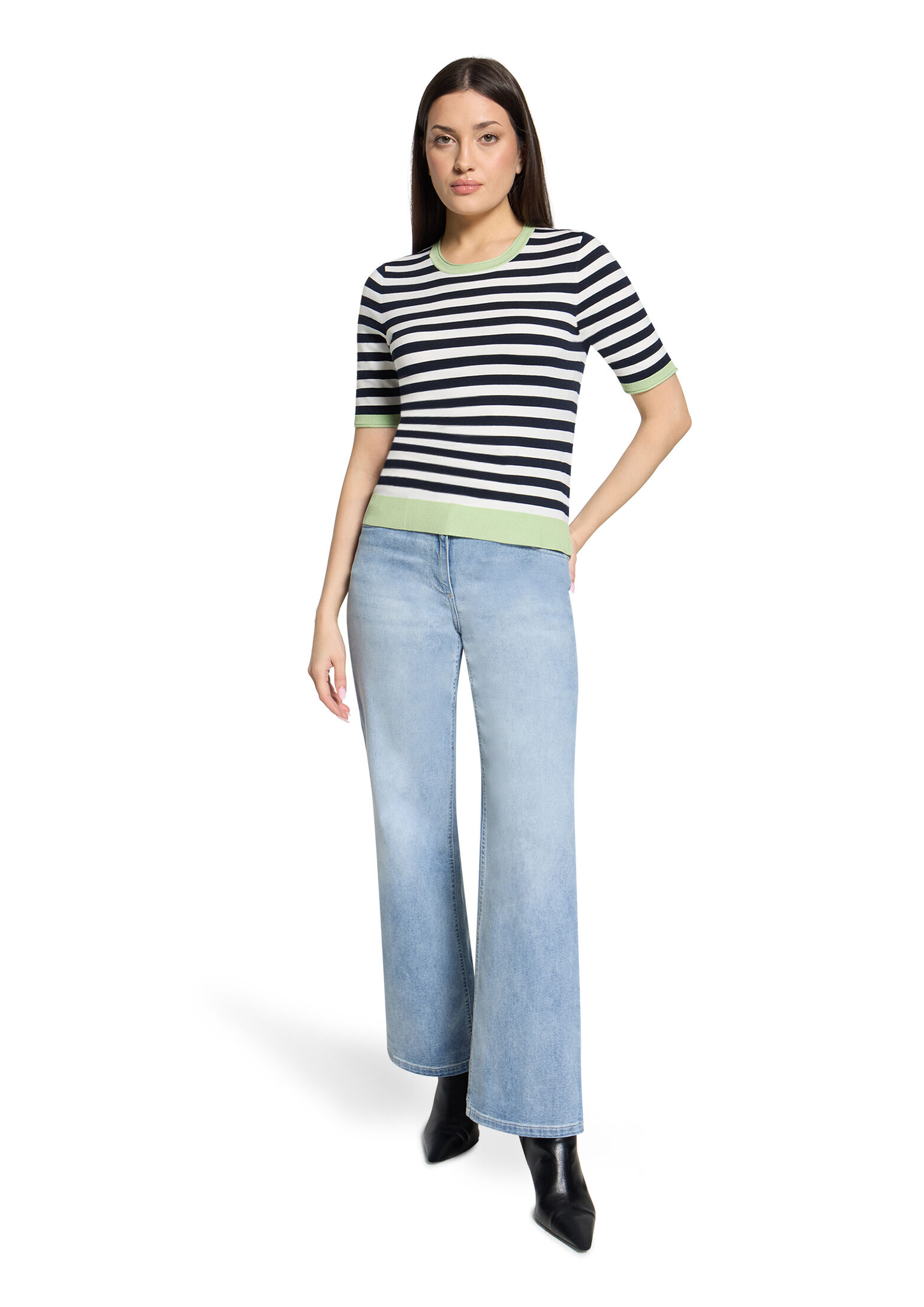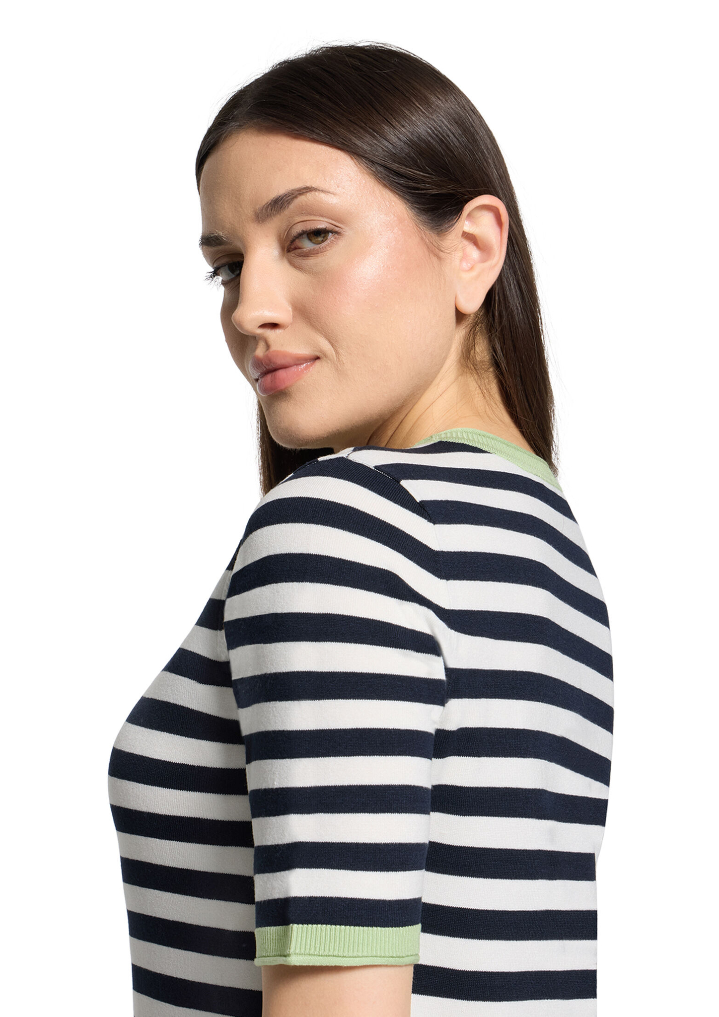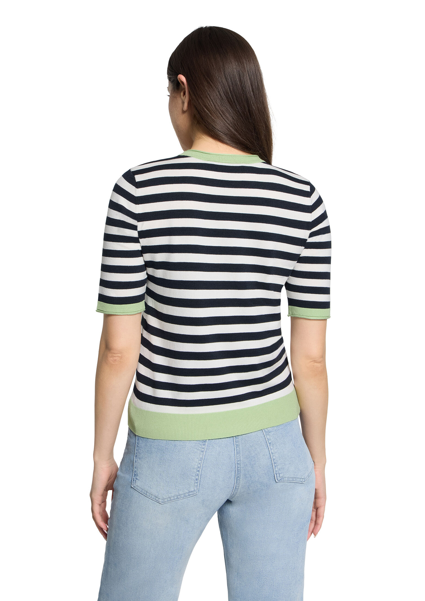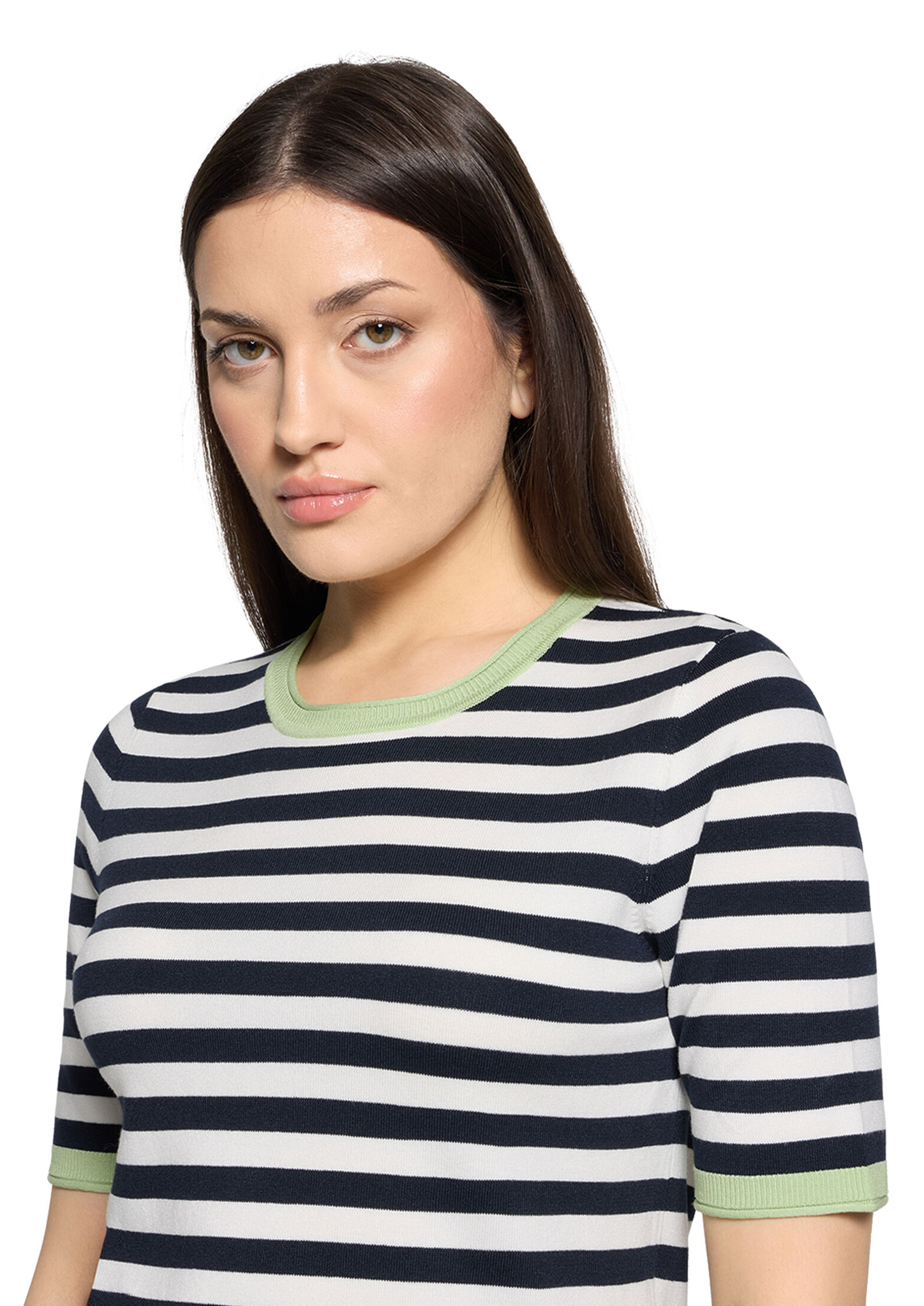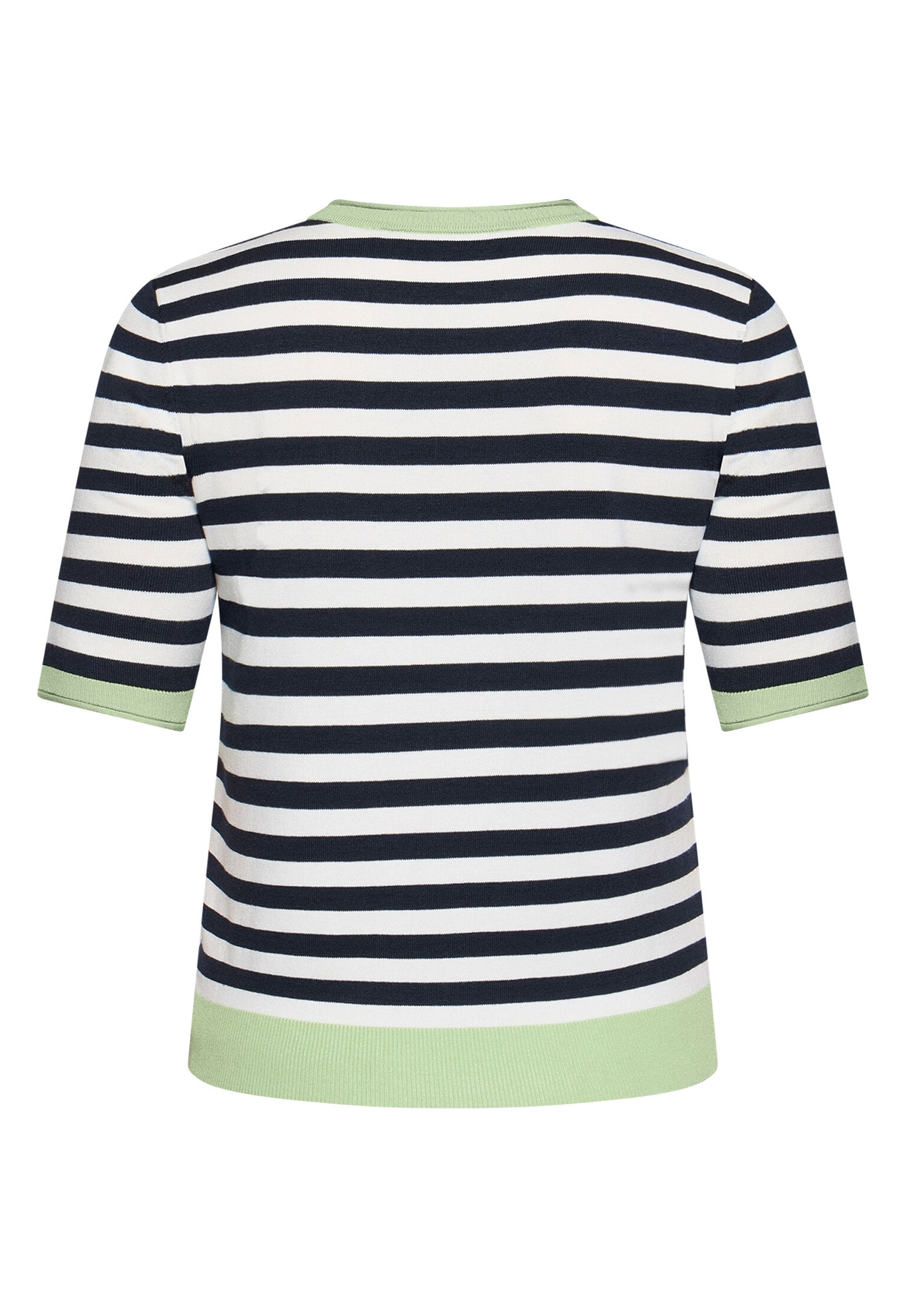 * Passform: Gerade * Gesamtlänge: 56 cm * Ärmellänge: Kurzarm * Ausschnittform: Rundhals-Ausschnitt * Materialart: Strick * Muster: Streifen
