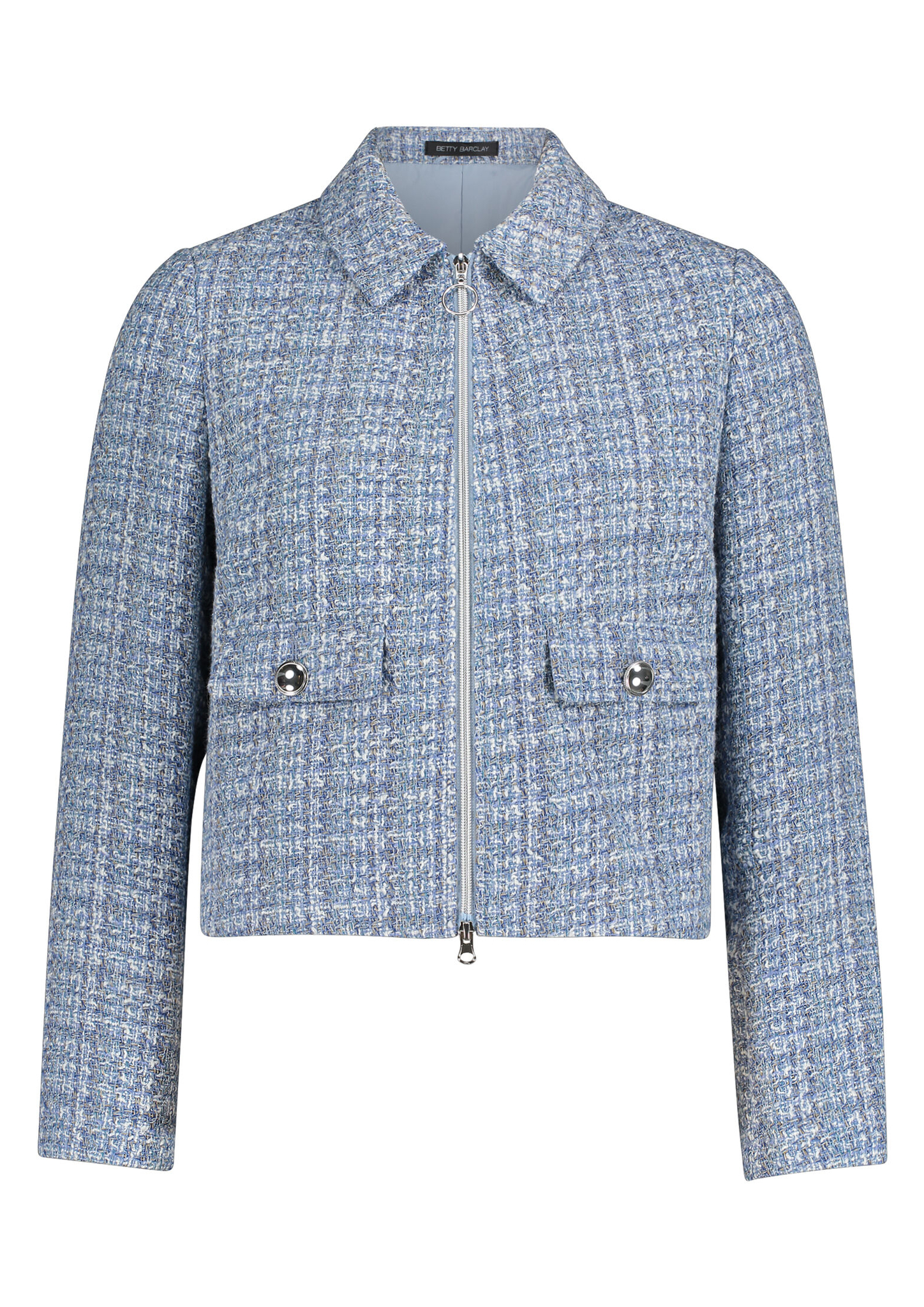 * Passform: Weich fallend * Gesamtlänge: 52 cm * Kragenform: Hemdkragen * Materialart: Bouclé * Tasche: Pattentaschen * Verschluss: Reißverschluss * Muster: Mehrfarbig * Futter: 100% Polyester
