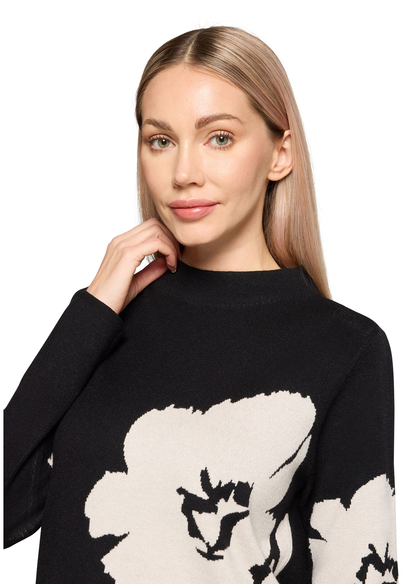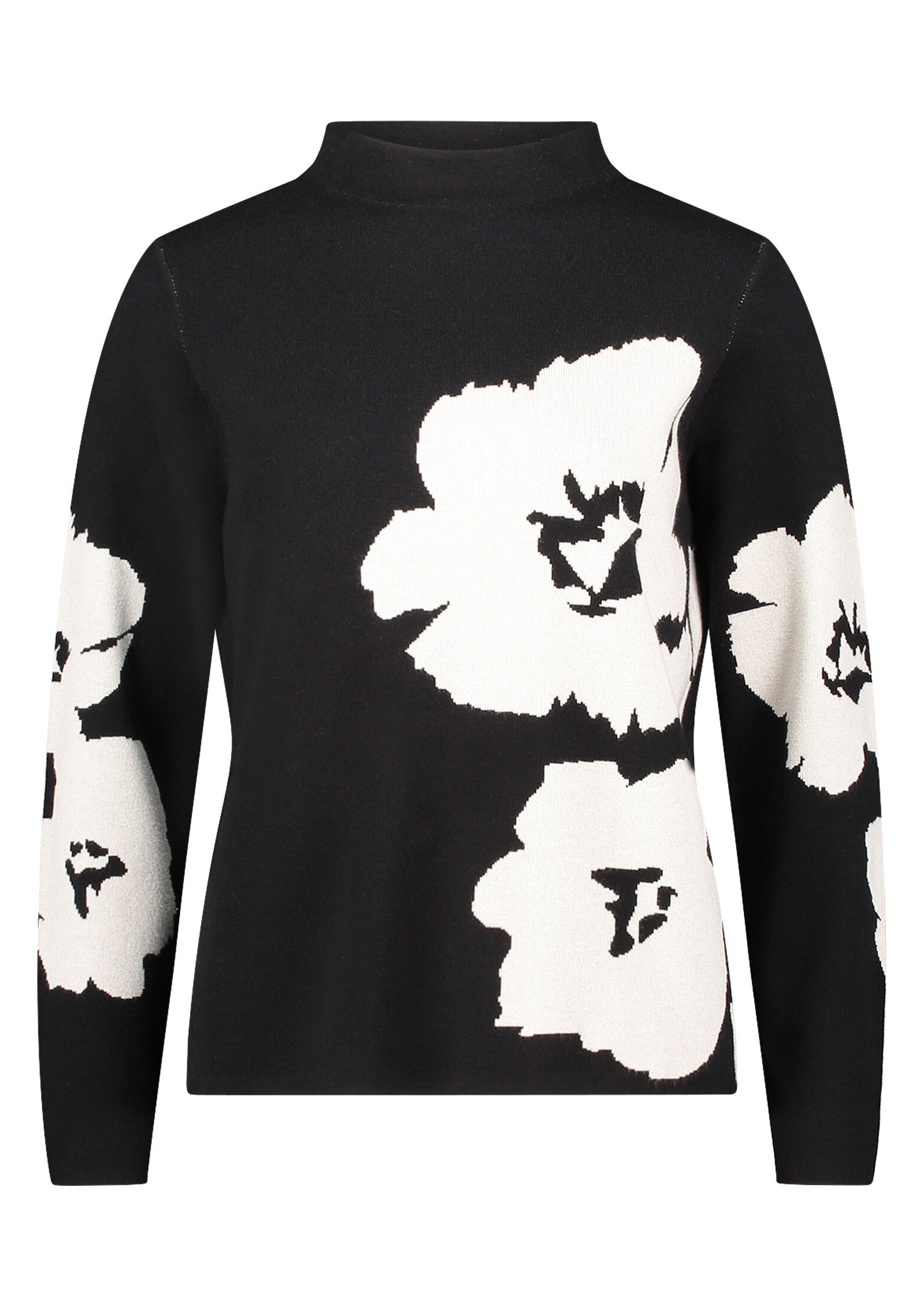 * Passform: Figurumspielend * Gesamtlänge: 62 cm * Ärmellänge: Langarm * Kragenform: Stehkragen * Materialart: Strick * Muster: Floral / Blumen