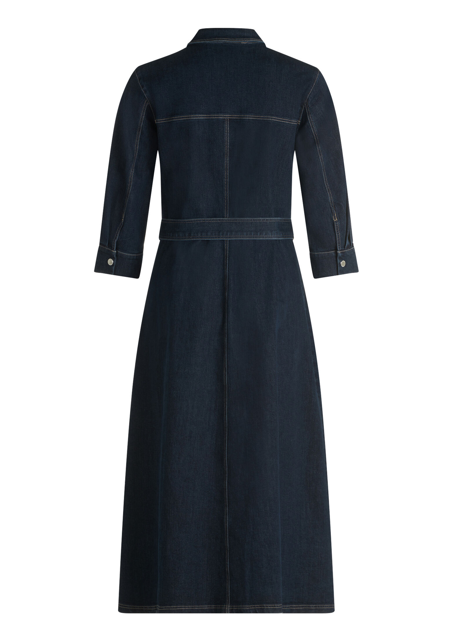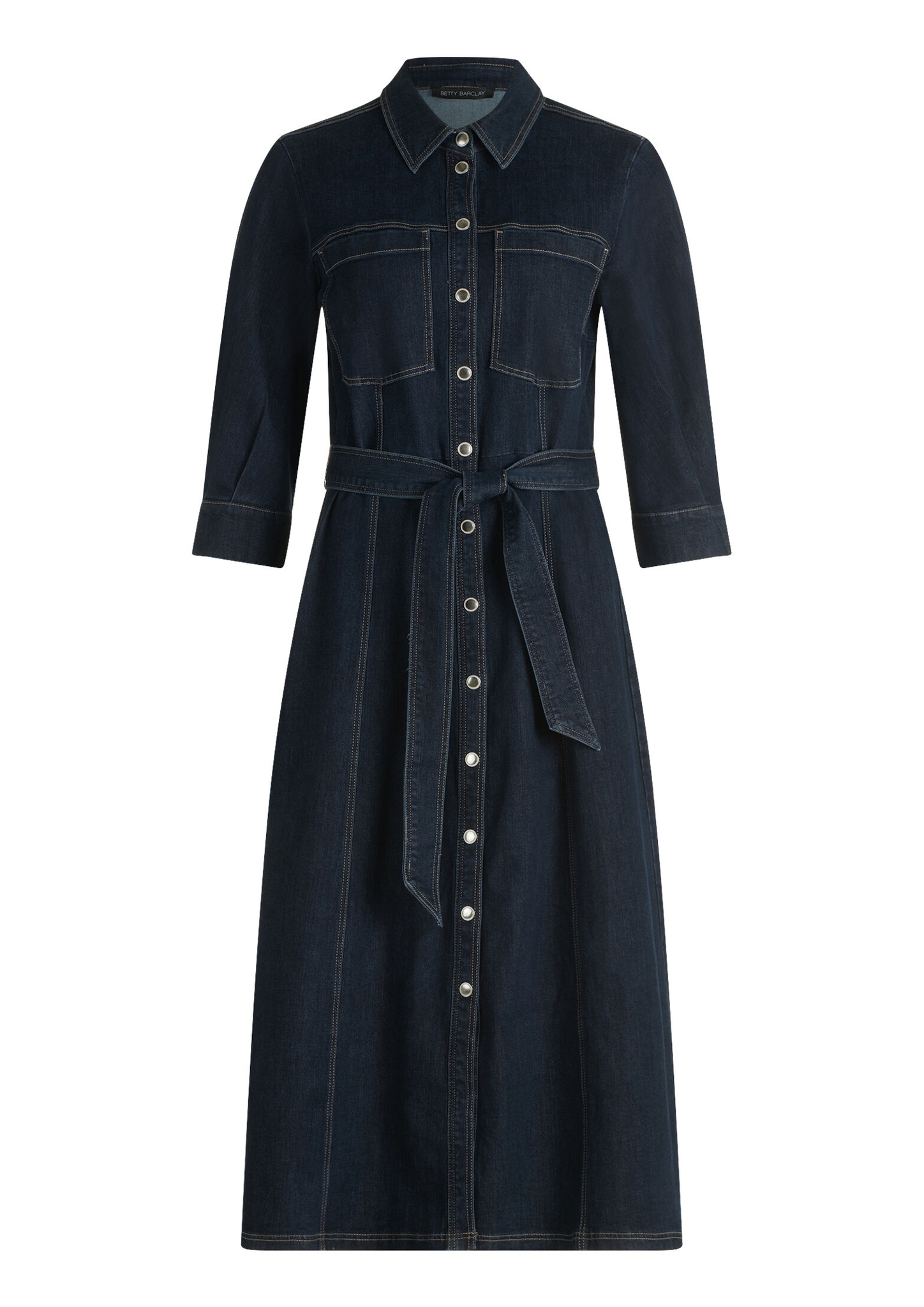 * Passform: Figurumspielend * Gesamtlänge: 125 cm * Ärmellänge: 3/4 Arm * Kragenform: Hemdkragen * Längeninfo: Midi * Tasche: Aufgesetzte Taschen * Verschluss: Knopfleiste * Muster: Uni * Gürtel: 70% Baumwolle, 23% Polyester, 4% Lyocell, 3% Elasthan