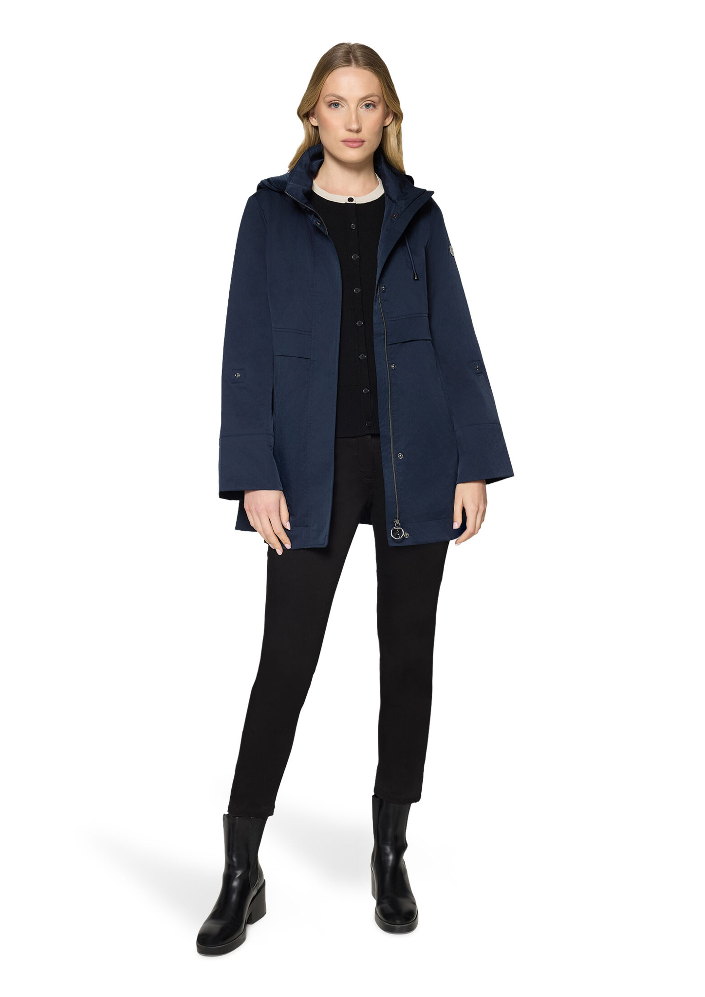 * Passform: Lässig * Gesamtlänge: 78 cm * Ärmellänge: Langarm * Kapuze: Abnehmbar * Kragenform: Stehkragen * Tasche: Paspeltasche * Verschluss: Zweiwege Reißverschluss * Muster: Uni * Futter: 100% Polyester * Besatz: 100% Polyamid
