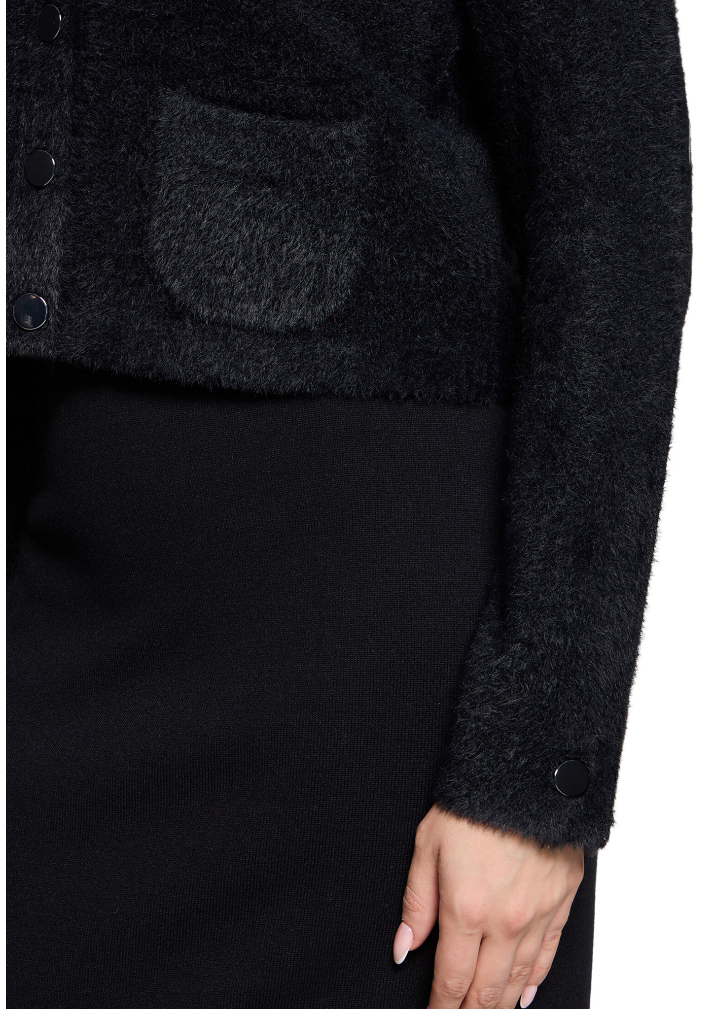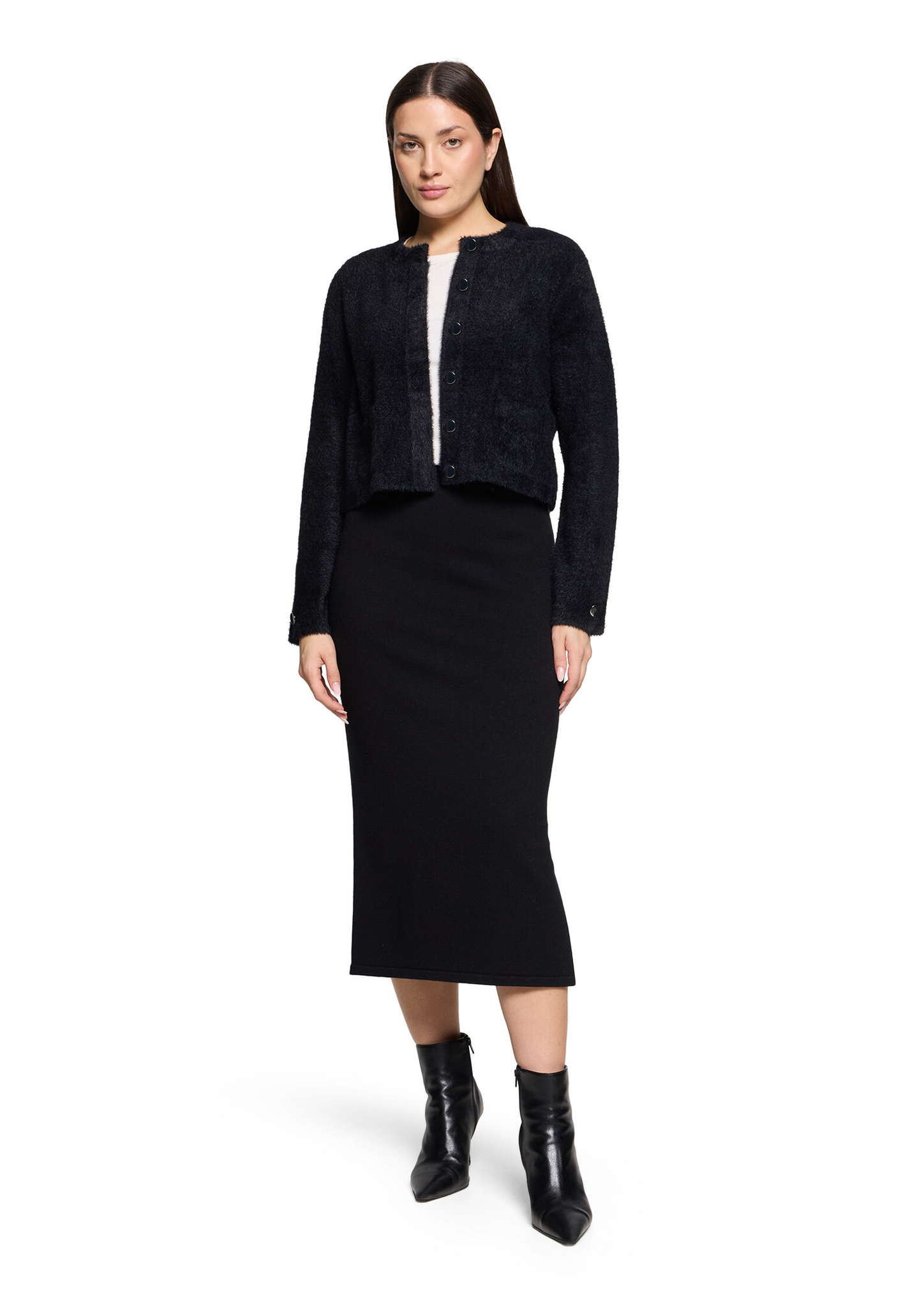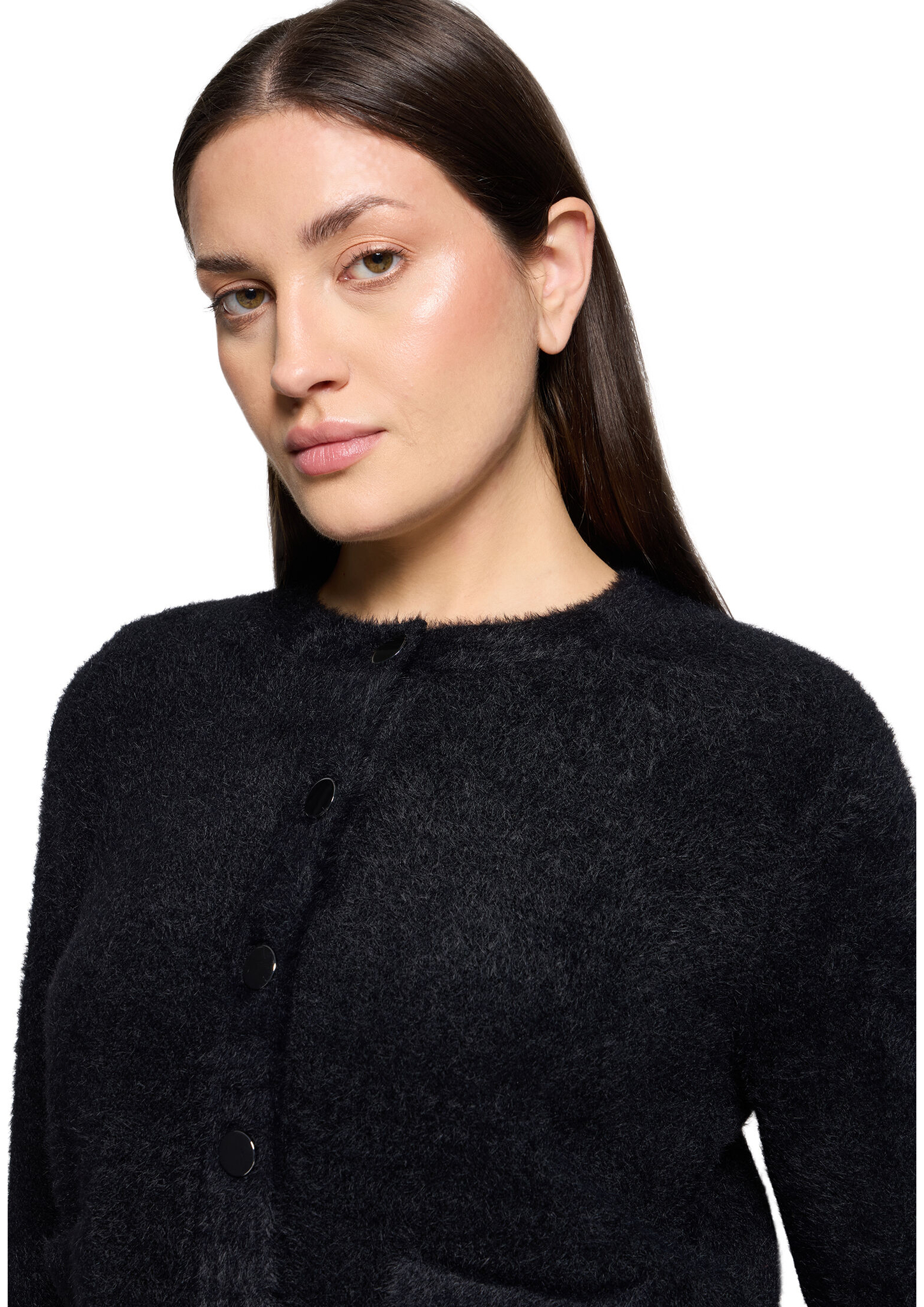 * Passform: Gerade * Gesamtlänge: 50 cm * Ärmellänge: Langarm * Ausschnittform: Rundhals-Ausschnitt * Materialart: Strick * Verschluss: Knopfleiste * Muster: Uni