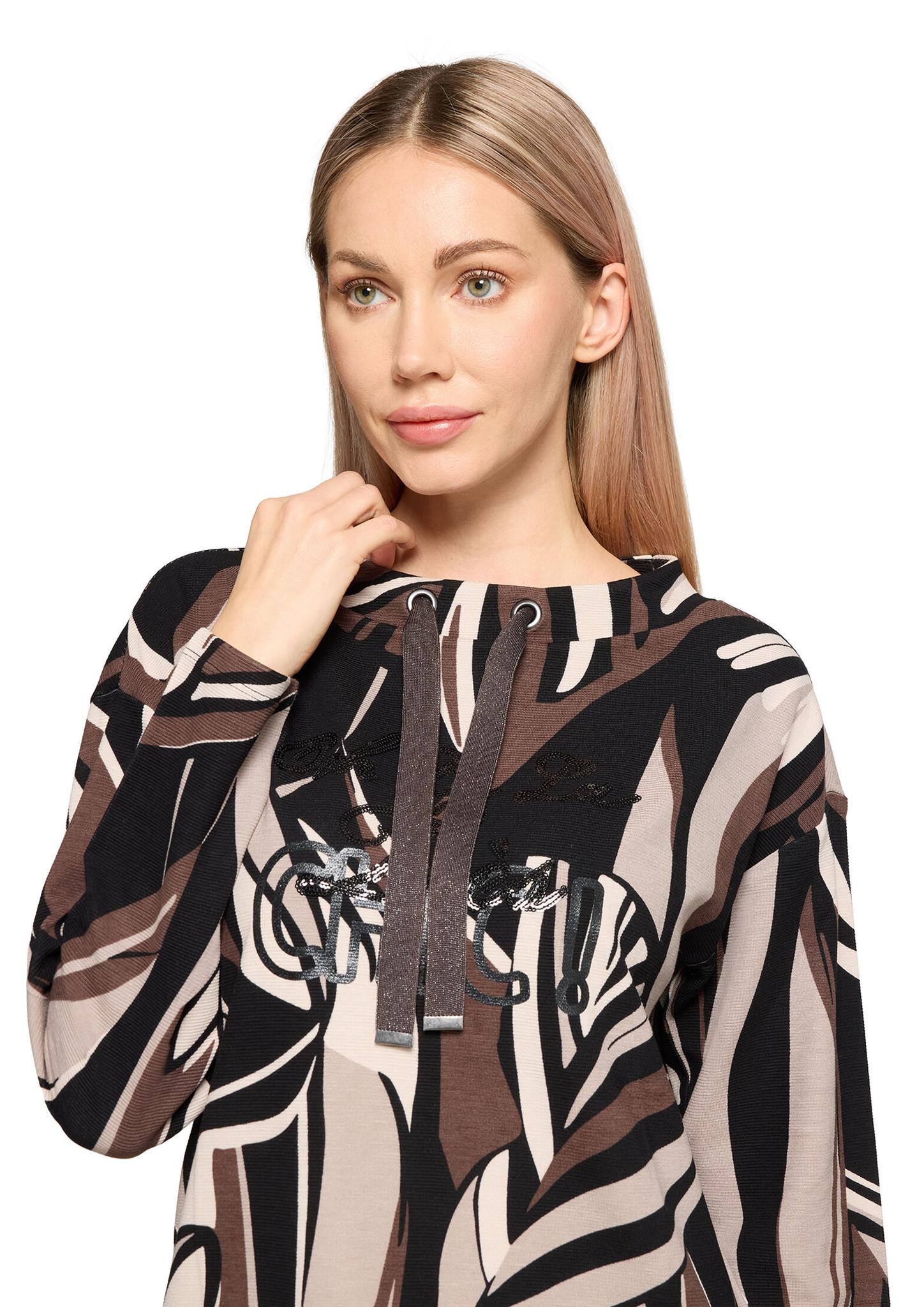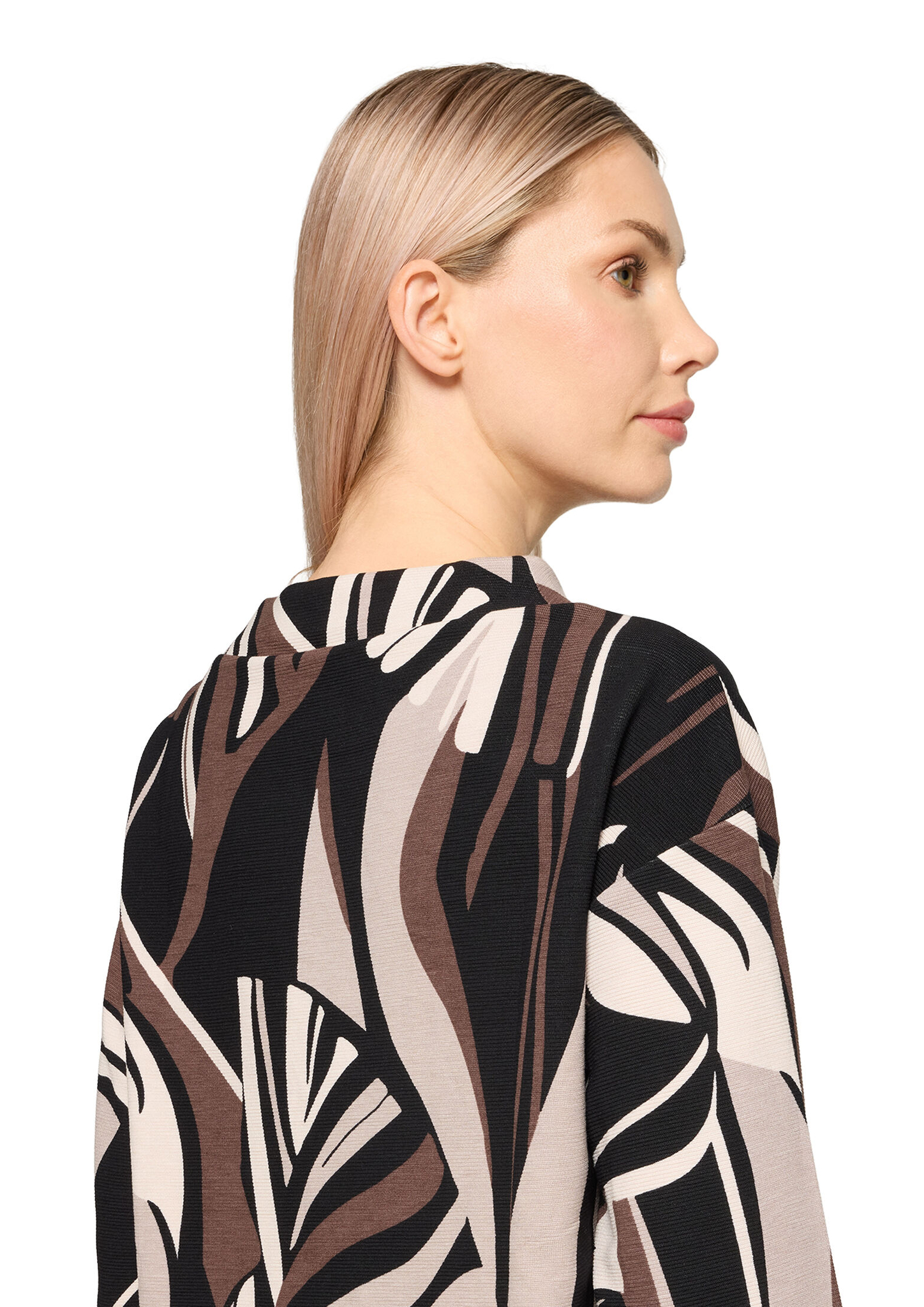 * Passform: Lässig * Gesamtlänge: 64 cm * Ärmelform: Überschnittener Arm * Ärmellänge: Langarm * Kragenform: Stehkragen * Materialart: Sweat * Muster: Grafisch