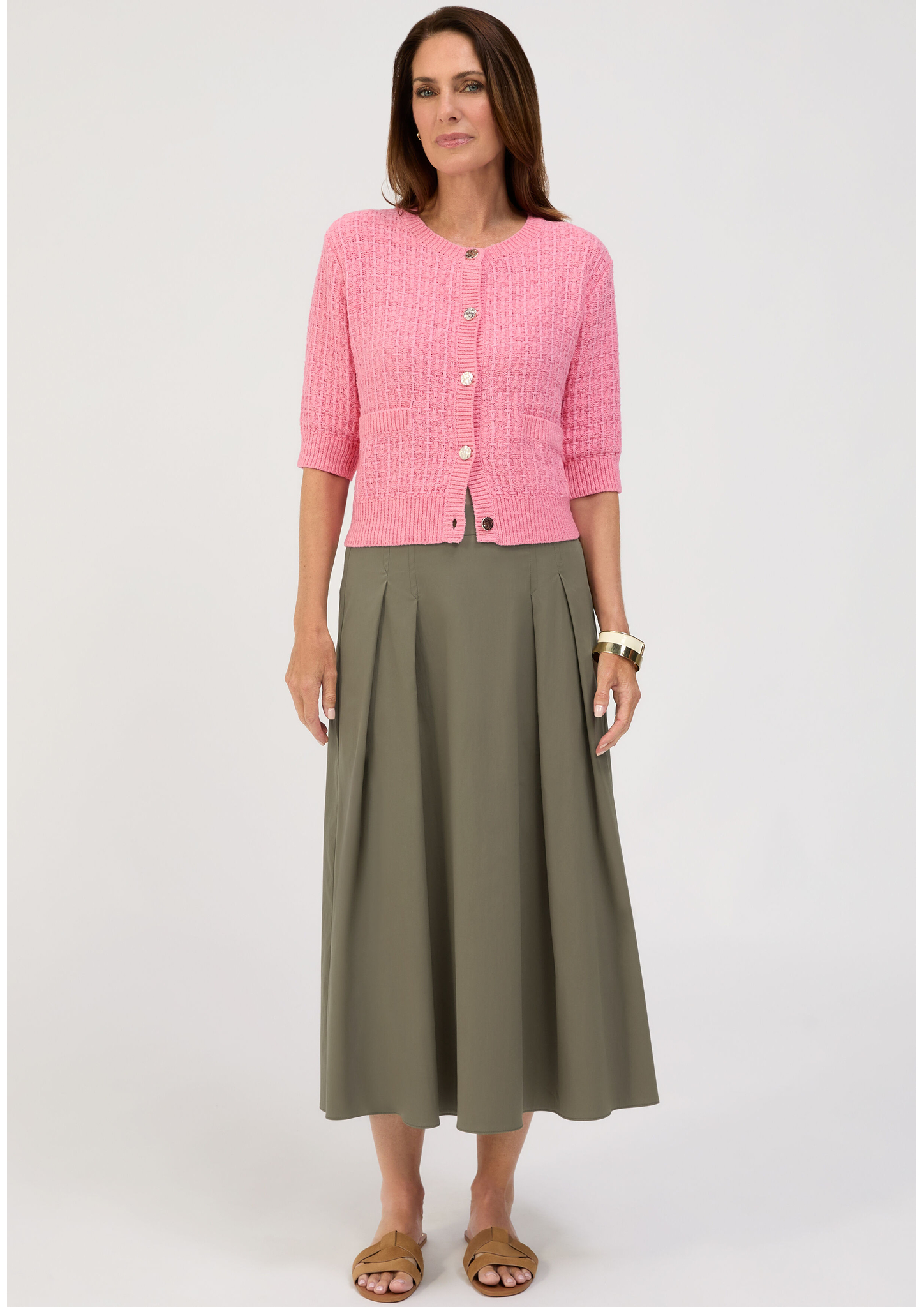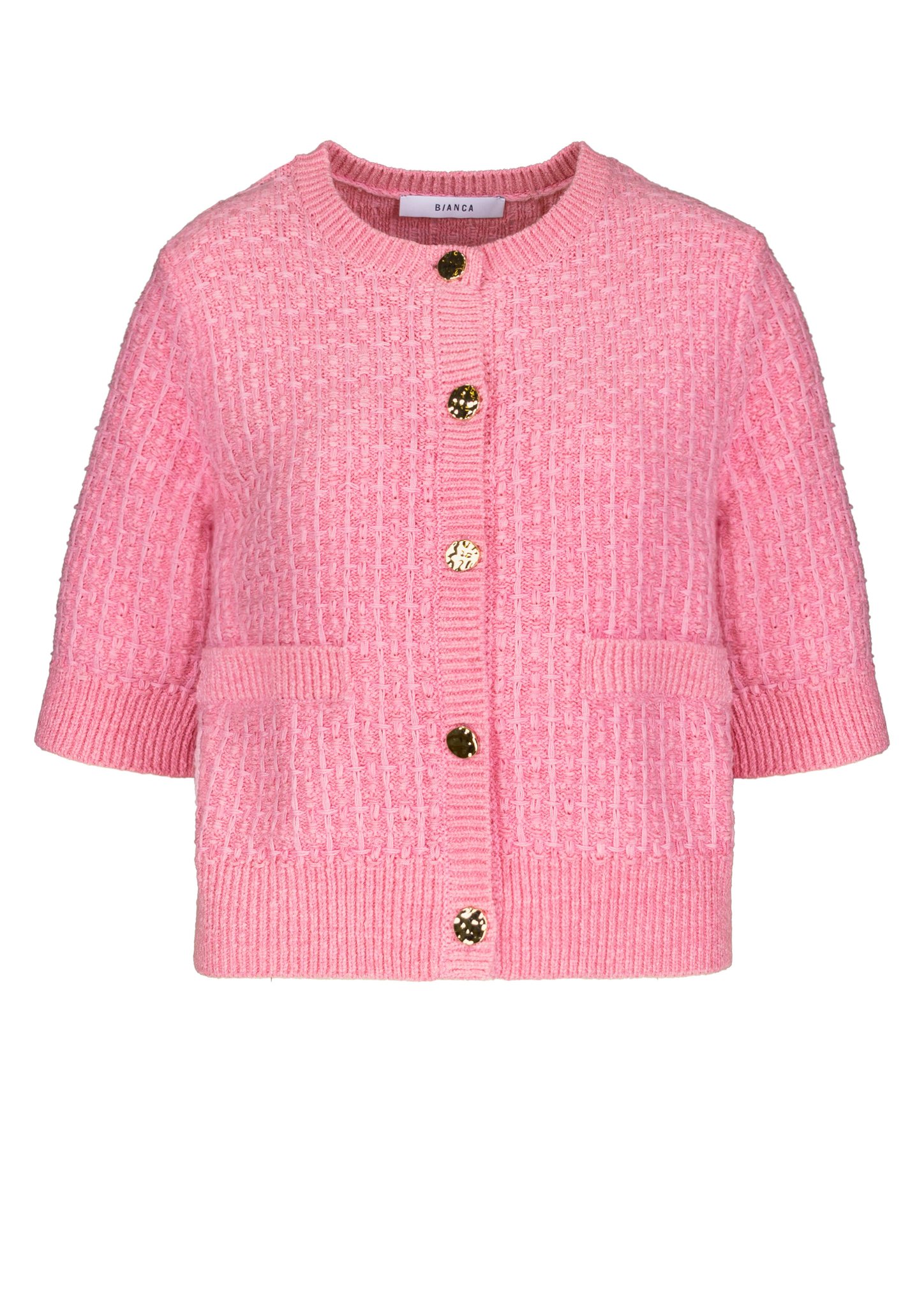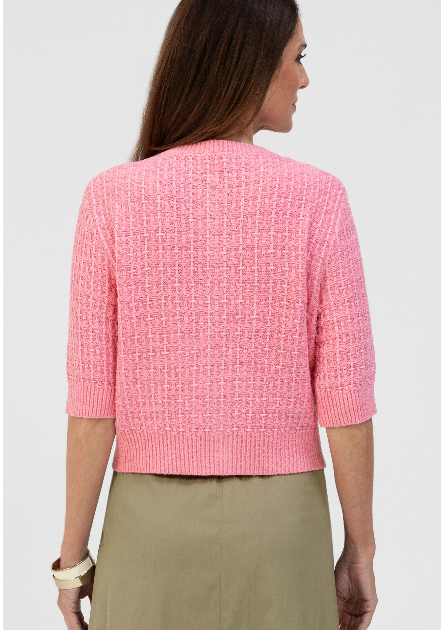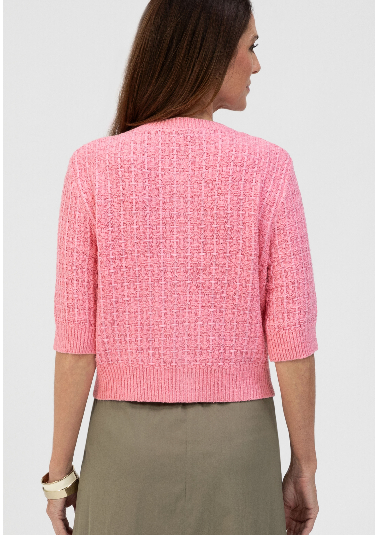 - * Feminine Strickjacke mit Kurzarm, moderne Stricktechnik * Hochwertiger und weicher Materialmix mit Baumwolle * Mit Rundhalsauschnitt und edler Knopfleiste * Gerade, lockere Passform * Bei Gr. 38: Länge ca. 53cm