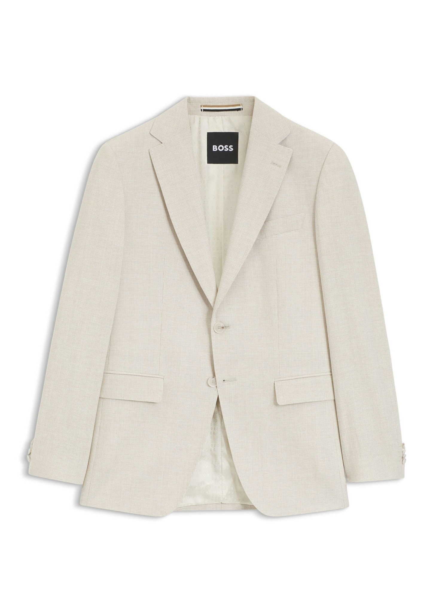 Das schmal geschnittene BOSS Sakko hat ein frisches Muster und ist vielseitig kombinierbar. Sommerlicher Mix aus Baumwolle und Leinen.