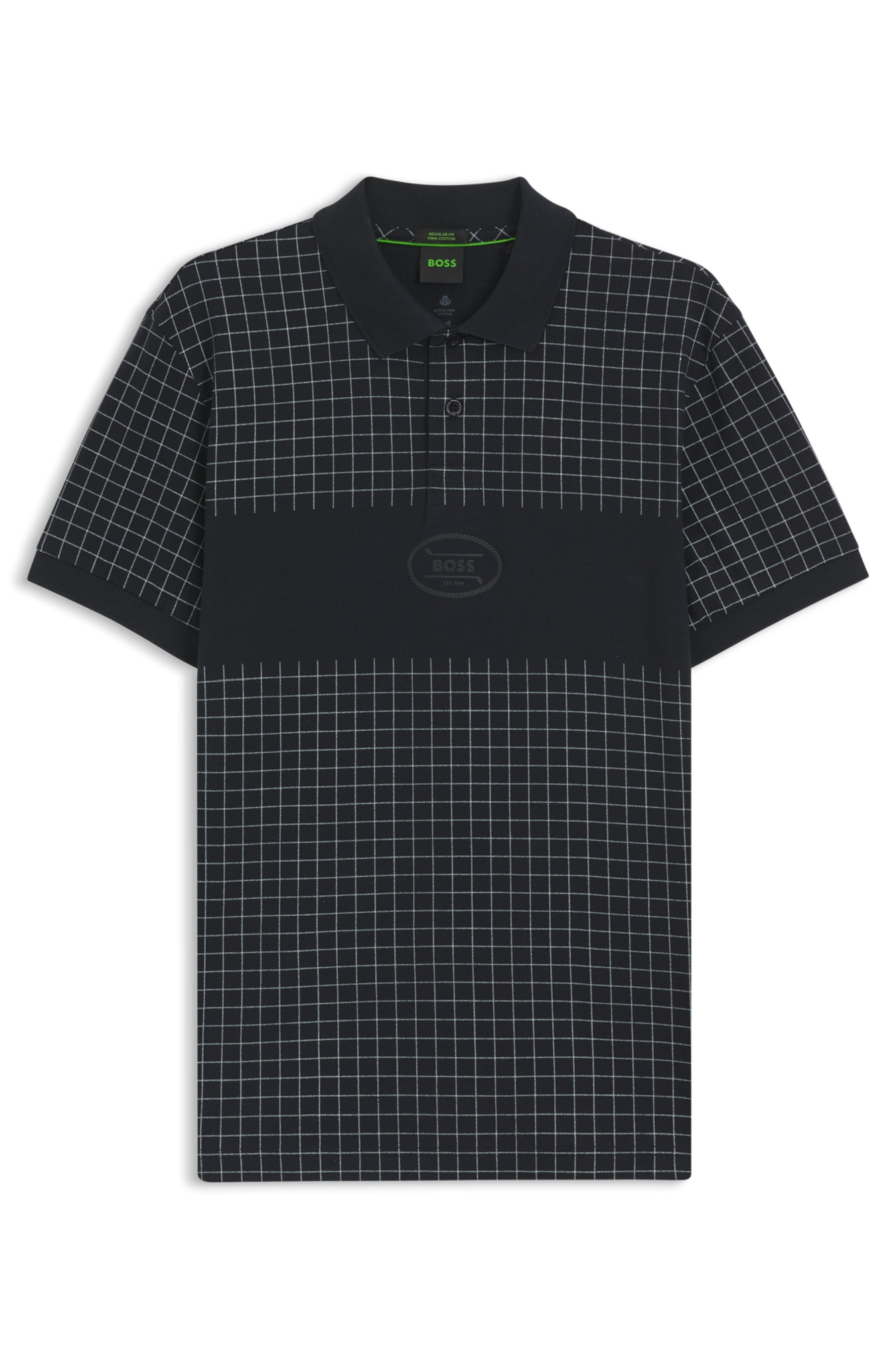 Das gerade geschnittene BOSS Polo mit Karo-Print und Golf-Logo-Artwork sorgt für einen sportiven Look. Besonders softe Pima-Baumwolle. Superleichtes Tragegefühl.