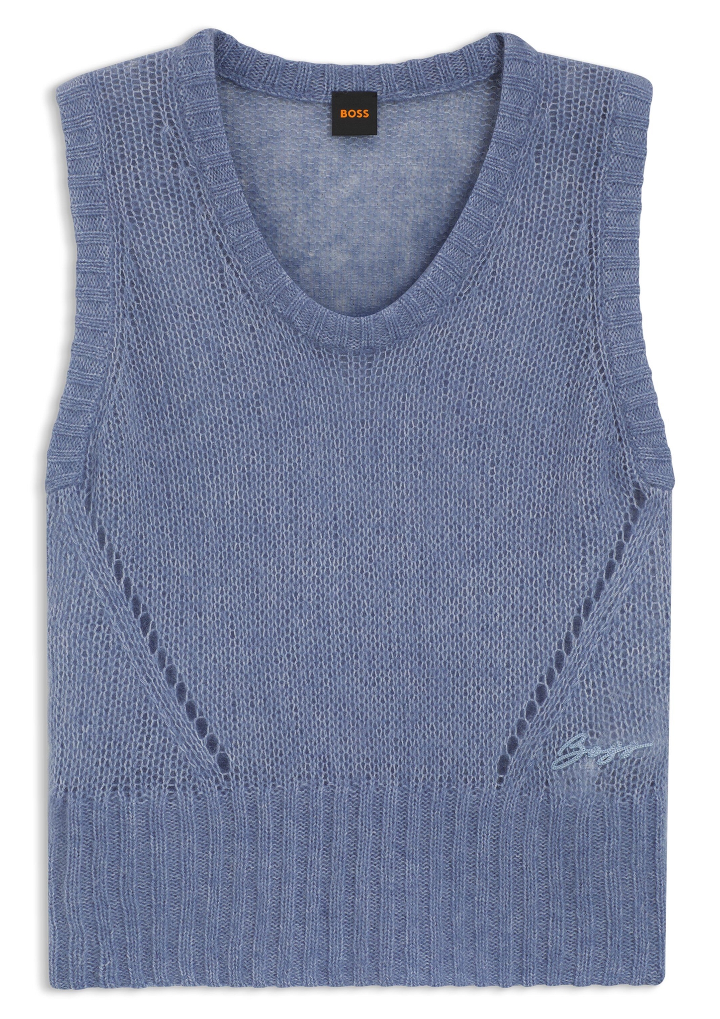 Das locker geschnittene BOSS Top aus elegantem großmaschigem Strick mit Lochmuster-Details ist ideal für Layering-Looks geeignet. Logo-Münze. Material-Mix mit Woll- und Alpaka-Anteil.