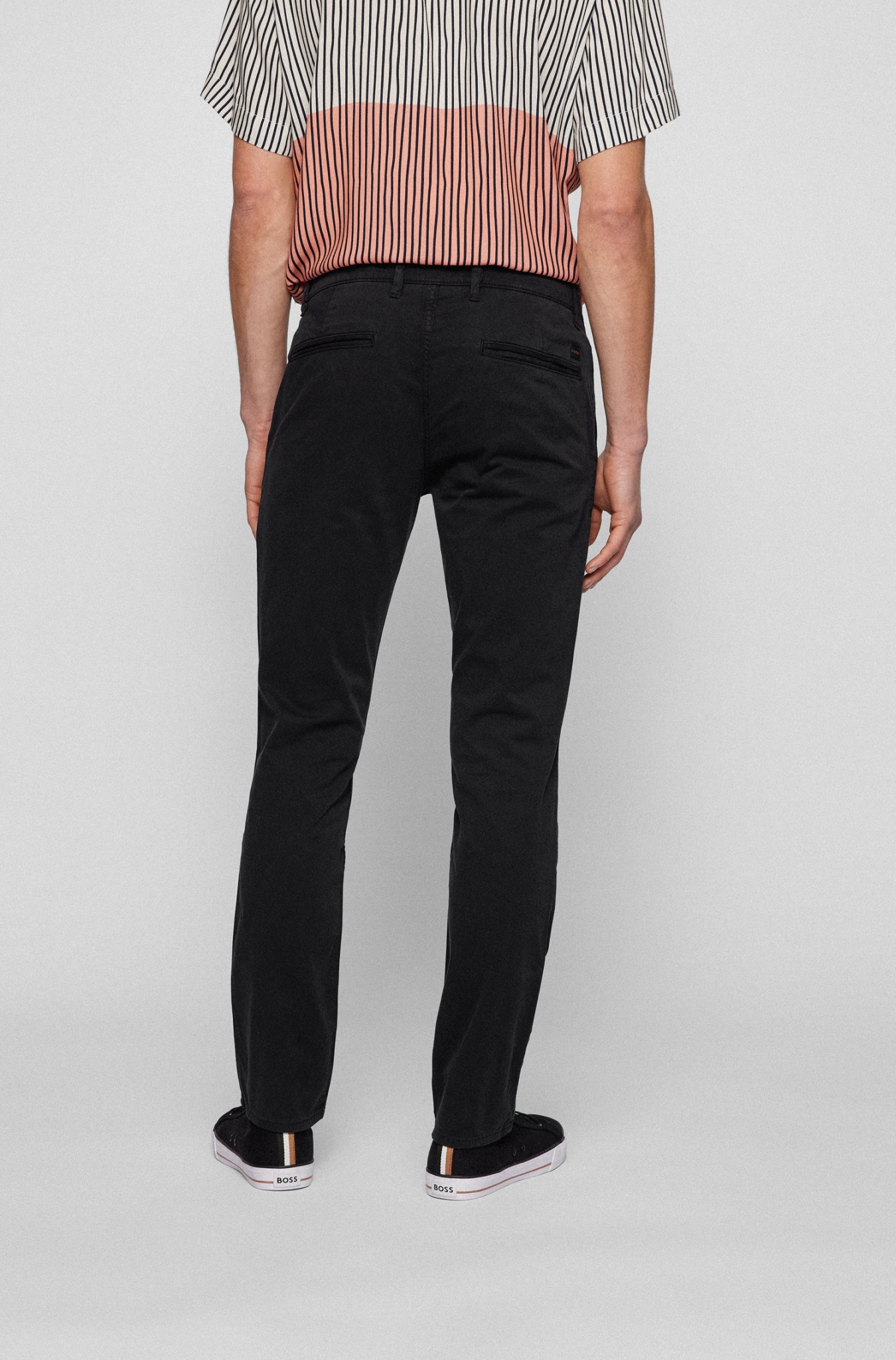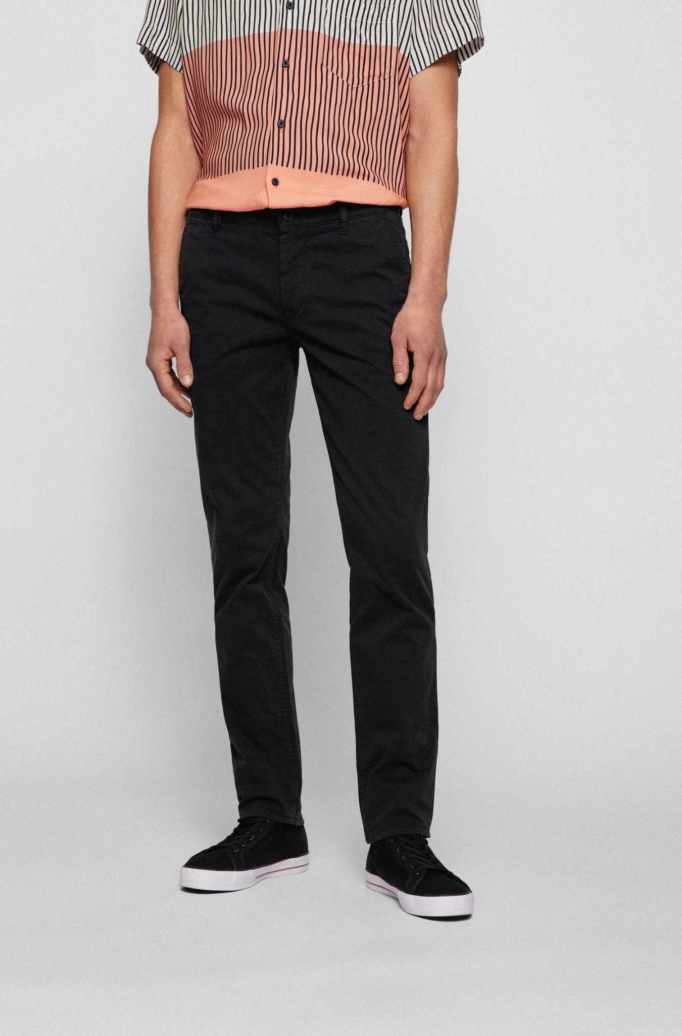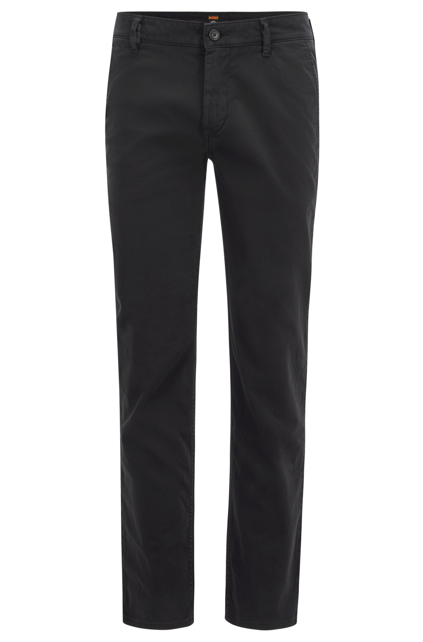 BOSS Chino aus Stretch-Satin mit schmaler Passform, mittlerer Bundhöhe und cleaner Silhouette. Hoher Tragekomfort durch Elasthan. Baumwolle aus nachhaltigem Anbau. Slim Fit.