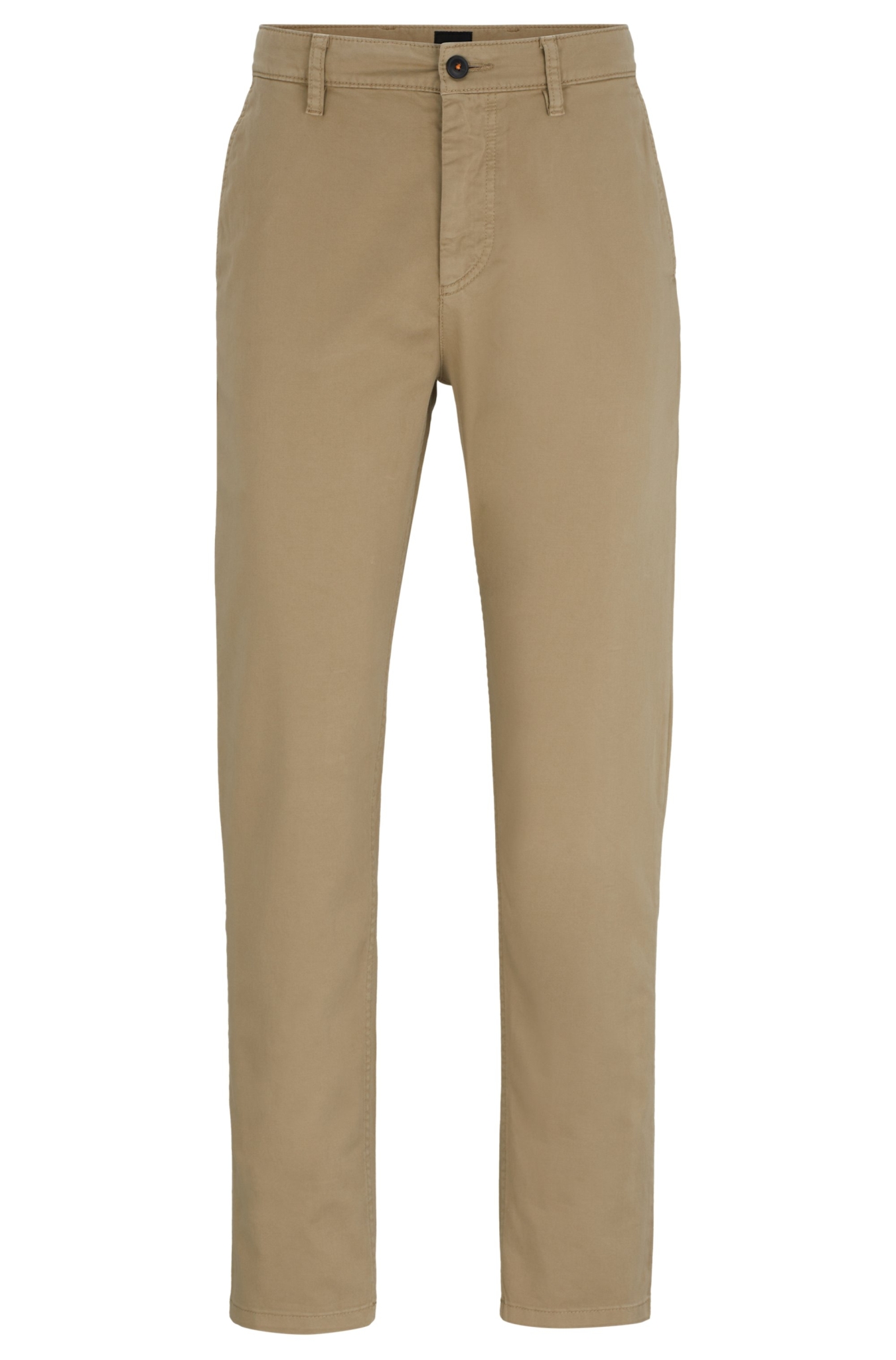 Komfortable BOSS Chino aus Stretch-Satin mit mittlerer Bundhöhe und konischem Beinverlauf.