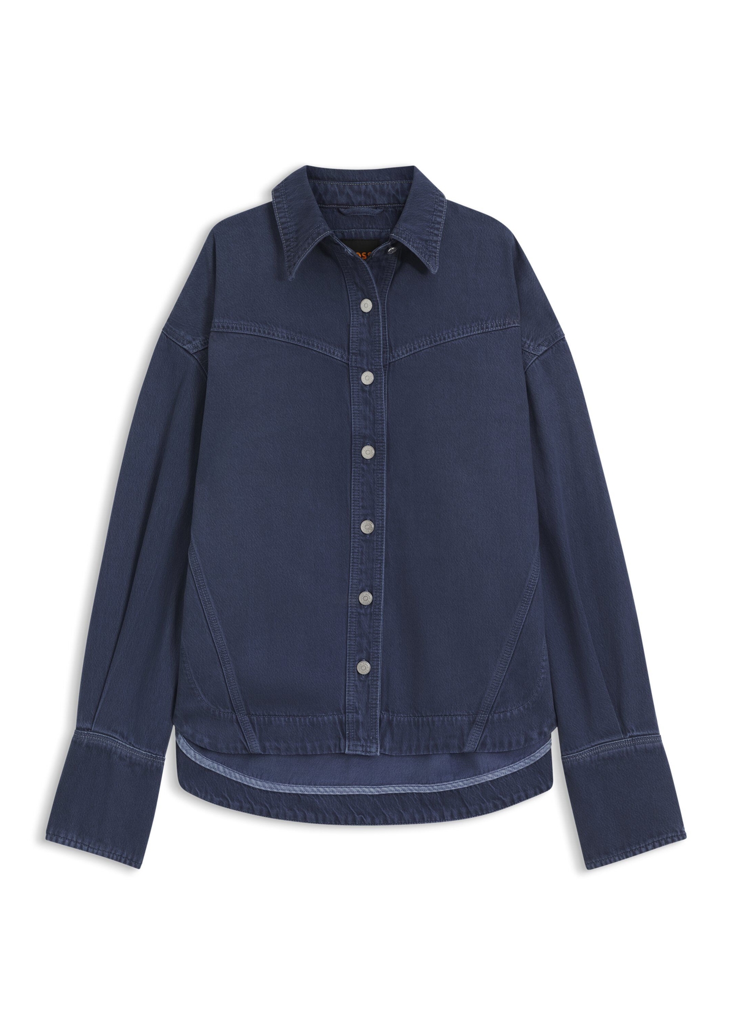 Das BOSS Overshirt in frischem Blau aus softem, festem Denim sorgt für einen legeren Casual-Look. Lange Ärmelbündchen und Kreuzfalte hinten.