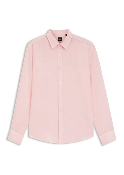 Das BOSS Hemd im entspannten Regular-Fit ist aus softem, sommerlichem Leinen gefertigt. Mit Logo-Detail an der linken Brust.