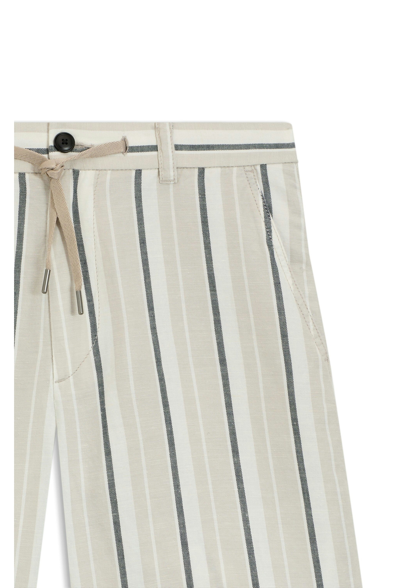 Mit einem vertikalen Streifen gemustert, sind diese BOSS Shorts aus einem sommerlichen Leinen-Baumwoll-Mix gefertigt. Teilweise elastischer Kordelzugbund für Tragekomfort.