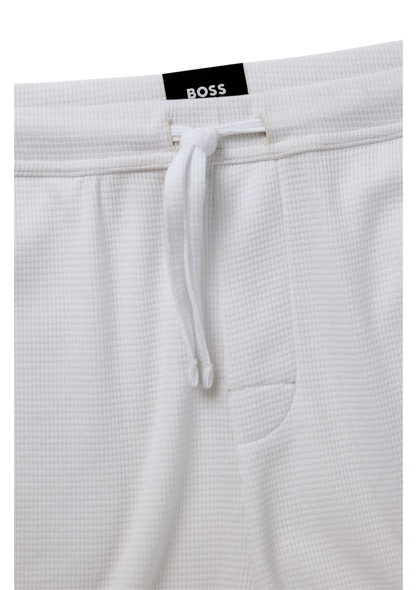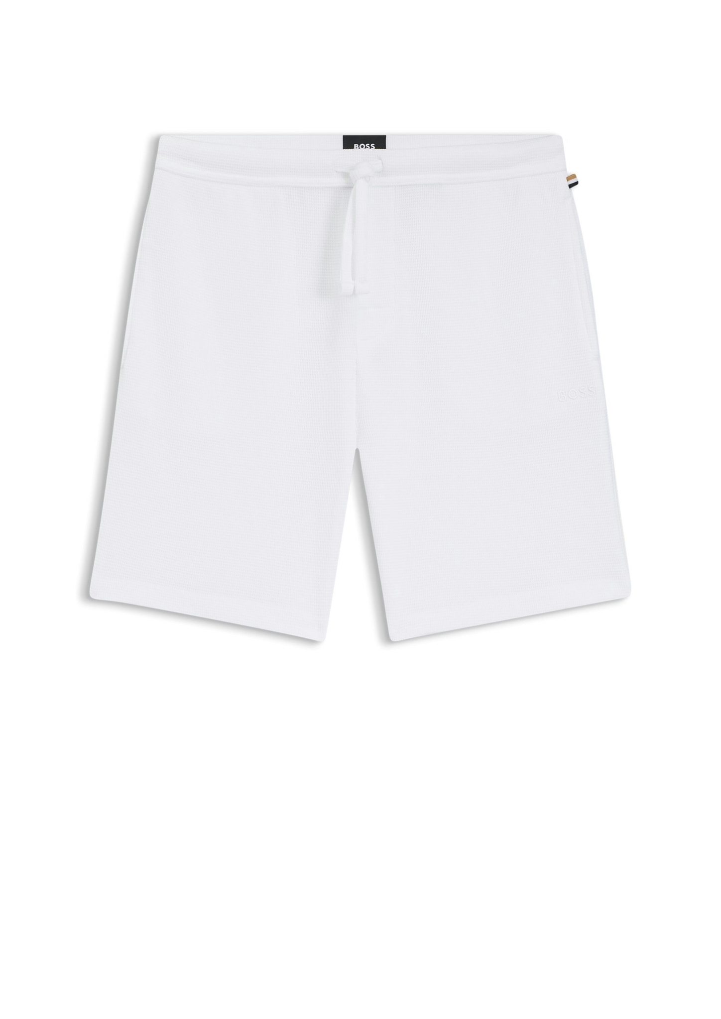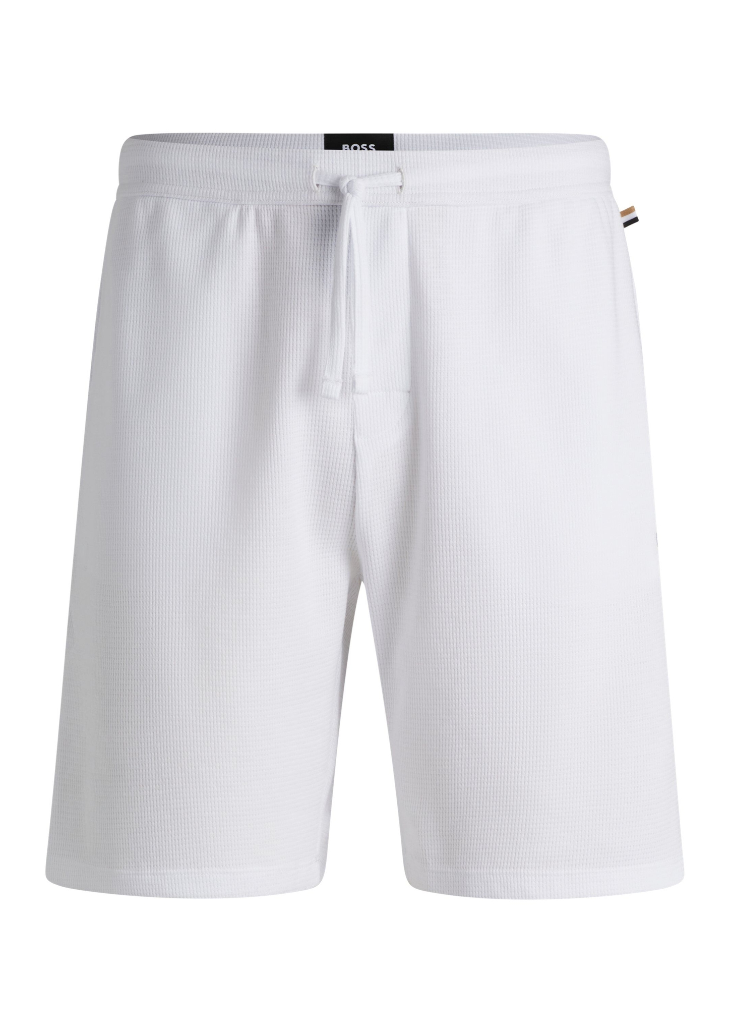 BOSS Pyjama-Shorts mit Tunnelzug. Die bequeme Hose aus einem Baumwoll-Mix mit geradem Beinverlauf und softer Waffelstruktur ist mit einer Logo-Stickerei versehen.