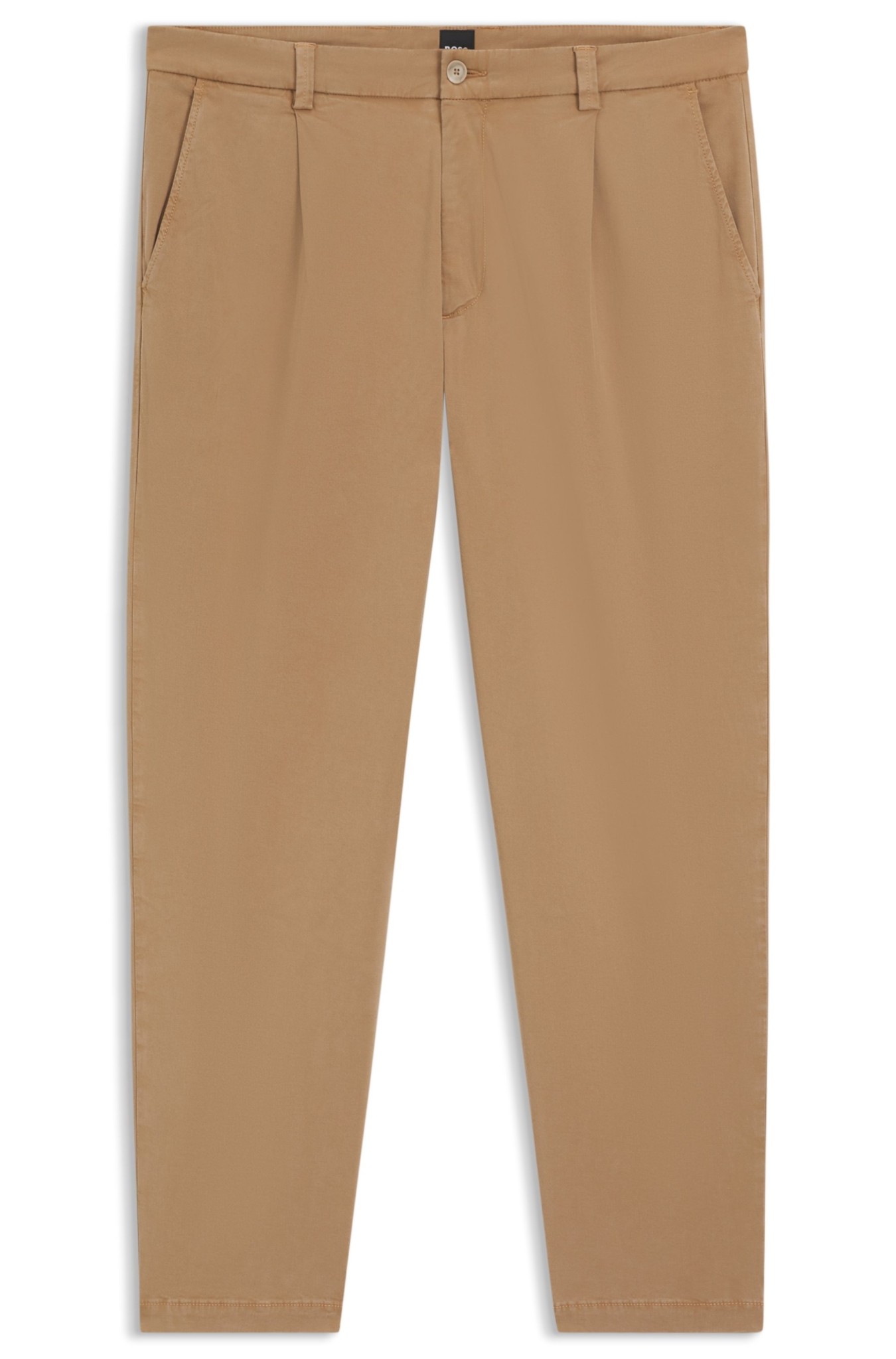 Die BOSS Hose aus gebürstetem Twill mit Baumwoll- und Elasthan-Anteil ist die ideale Grundlage für jeden Tag. Konisch zulaufende Passform mit zeitgemäßen Bundfalten auf der Vorderseite. Dieses Produkt enthält mindestens 60 % bessere Rohstoffe. Dieses Produkt wird mit Zellulosefasern gefertigt, die aus dem natürlichen Rohstoff Holz aus nachhaltiger bewirtschafteten Wäldern gewonnen werden. Gemeinsam mit externen Organisationen setzen wir uns für den respektvollen Umgang mit Urwäldern und gefährdeten Wäldern ein.