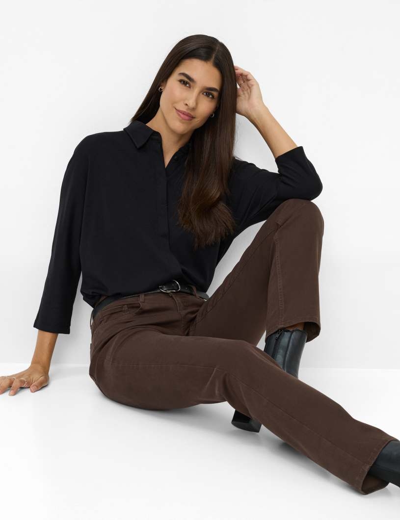 Wenn die kühleren Tage des Jahres locken, ist die Five-Pocket-Hose im STYLE MARY die perfekte Begleiterin für stilvolle Herbst-Winter-Outfits. Diese Hose vereint zeitlose Eleganz mit einem modernen Touch und begeistert in herbstlichen Farbtönen, die sich vielseitig kombinieren lassen. In einem Regular Fit mit gerader Form und normaler Leibhöhe sorgt die Damenhose für eine optimale Passform. Die klassischen Details wie aufgesetzte Gesäßtaschen, eine praktische Coinpocket sowie Einschubtaschen verleihen der Hose einen sportiven Charakter, während die dezente Steppung und die dekorative Applikation auf den Gesäßtaschen für raffinierte Akzente sorgen. Dazu gefällt die bewährte Cotton Dream-Qualität, die mit hervorragender Farbbrillanz jedem Outfit das gewisse Etwas verleiht. Gefertigt in einem feinen Satin, begeistert auch der elastische Materialmix aus Lyocell, Modal und Baumwolle mit besonders softer Haptik, Formbeständigkeit und leichtem Stretch. Mit dieser Hose unterstreichen Sie Ihren individuellen Stil und fühlen sich den ganzen Tag über wohl – eine perfekte Kombination aus Design und Komfort.