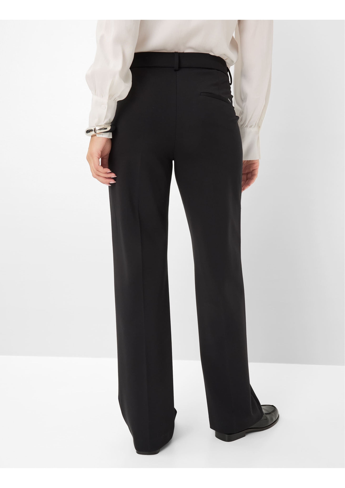 Souverän, stilbewusst, smart – so präsentiert sich die Palazzohose im Style MAINE. Mit ihrer weiten Silhouette im Wide Leg und der klaren Linienführung steht die Hose für einen modernen, femininen Look. Die fließende Form wird mit einem präzisen Bügelbruch, normaler Leibhöhe und französischen Taschen klassisch interpretiert. In Kombination mit der cleanen Optik entsteht ein zeitloser Stil, der die Damenhose zu einem stilsicheren Allrounder für jede Saison macht. Für Komfort sorgt die hochwertige Jersey-Qualität. Der Mix aus Viskose, Polyamid und Elasthan vereint angenehme Elastizität mit Formstabilität und bietet ein glattes, komfortables Tragegefühl.