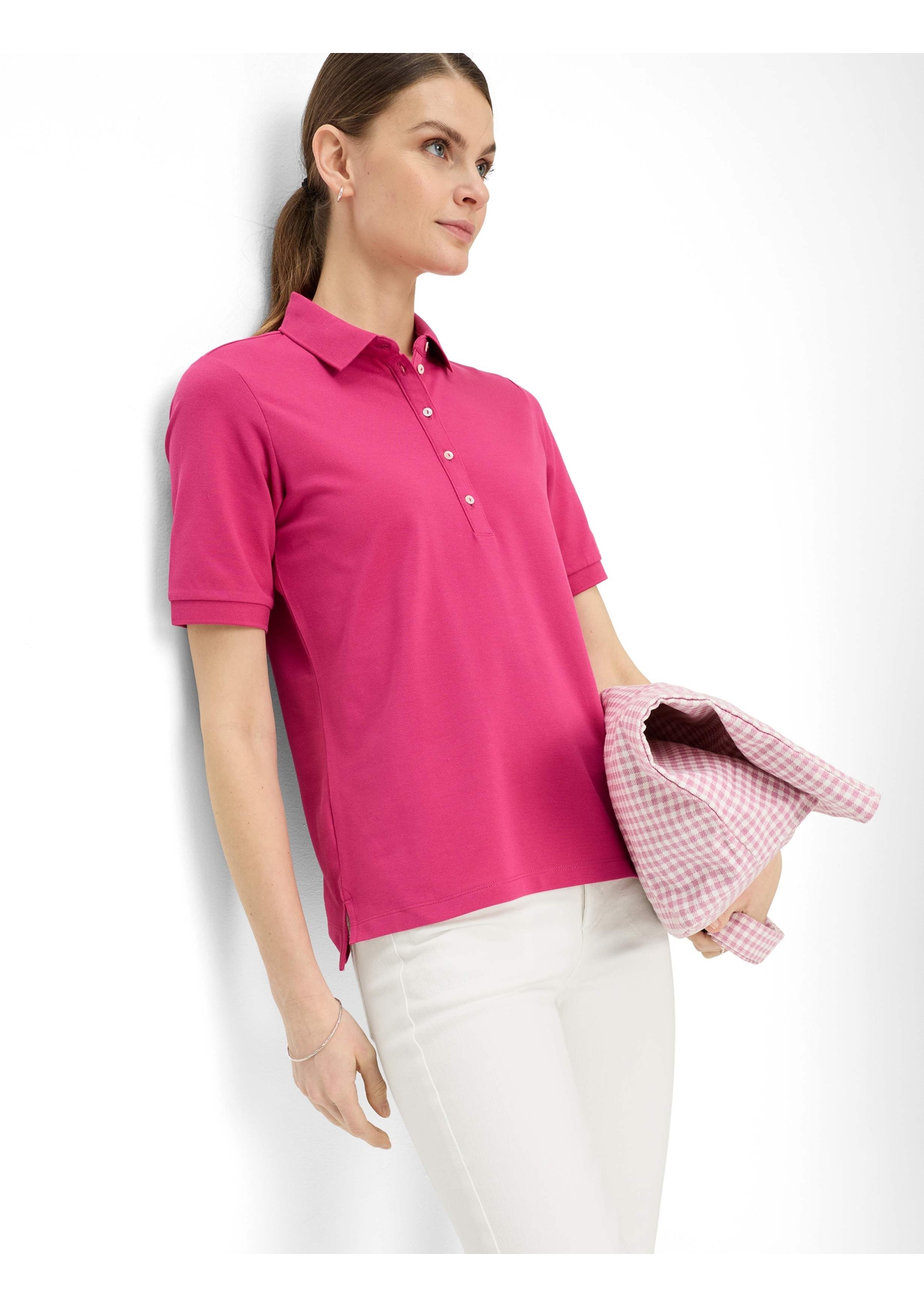 Das Poloshirt im Style Cleo ist Ihr perfekter Begleiter für den Frühling – ein stilvolles Essential, das sportive Eleganz mit moderner Lässigkeit verbindet. Die taillierte Silhouette schmeichelt der Figur und sorgt für eine feminine Ausstrahlung, während die klassische Knopfleiste mit Polokragen den zeitlosen Charakter dieses Designs unterstreicht. Gefertigt aus hochwertigem Piqué-Gewebe mit 97 % Baumwolle und 3 % Elasthan, bietet das Shirt eine angenehme Haptik und optimale Bewegungsfreiheit.