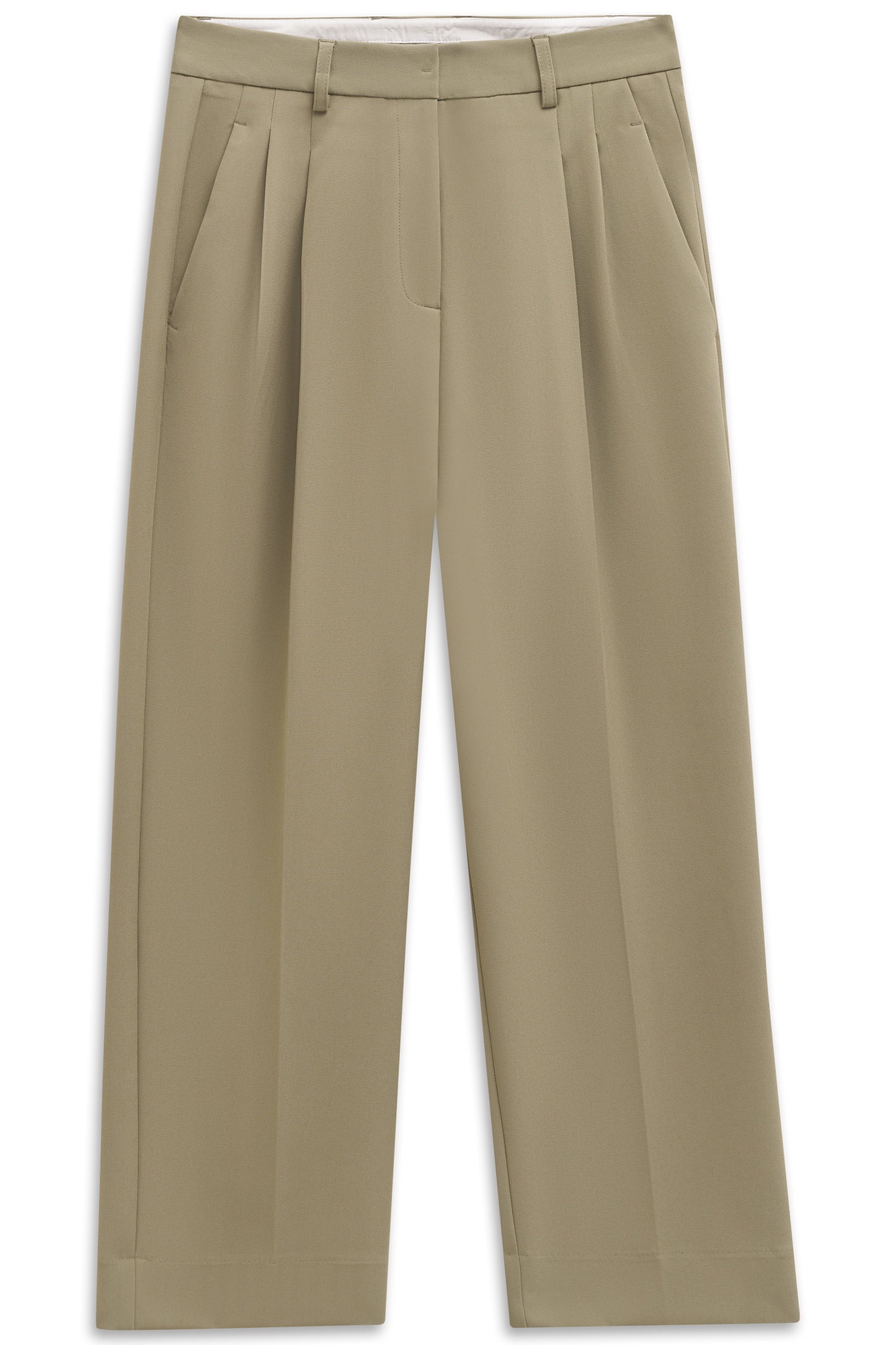 Leicht verkürzte Hose mit geradem Beinverlauf und Bundfalten.