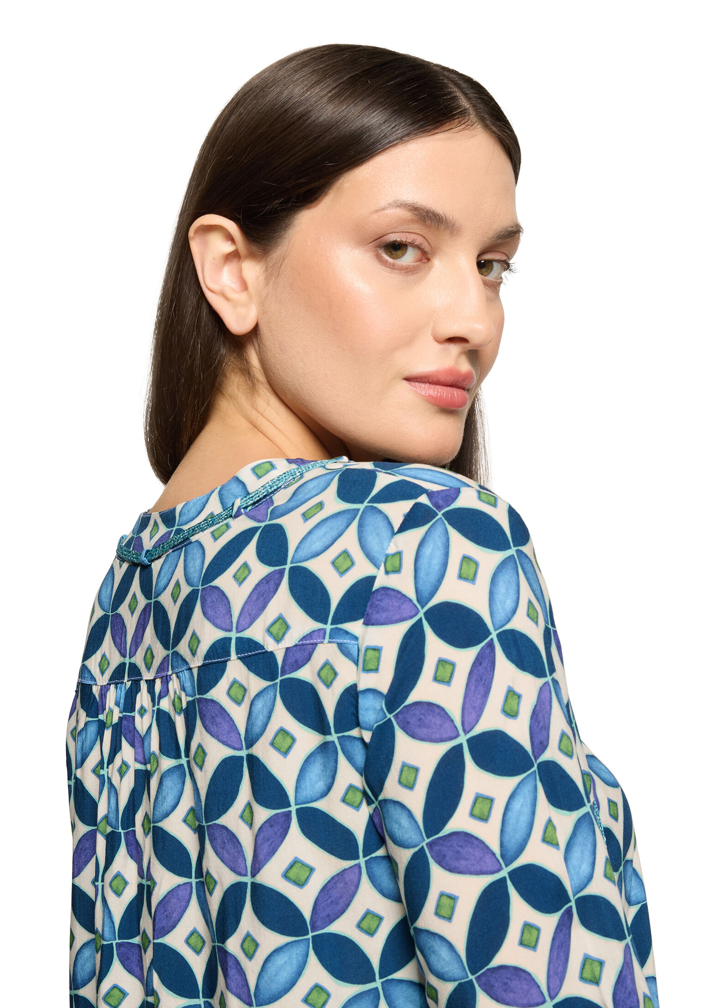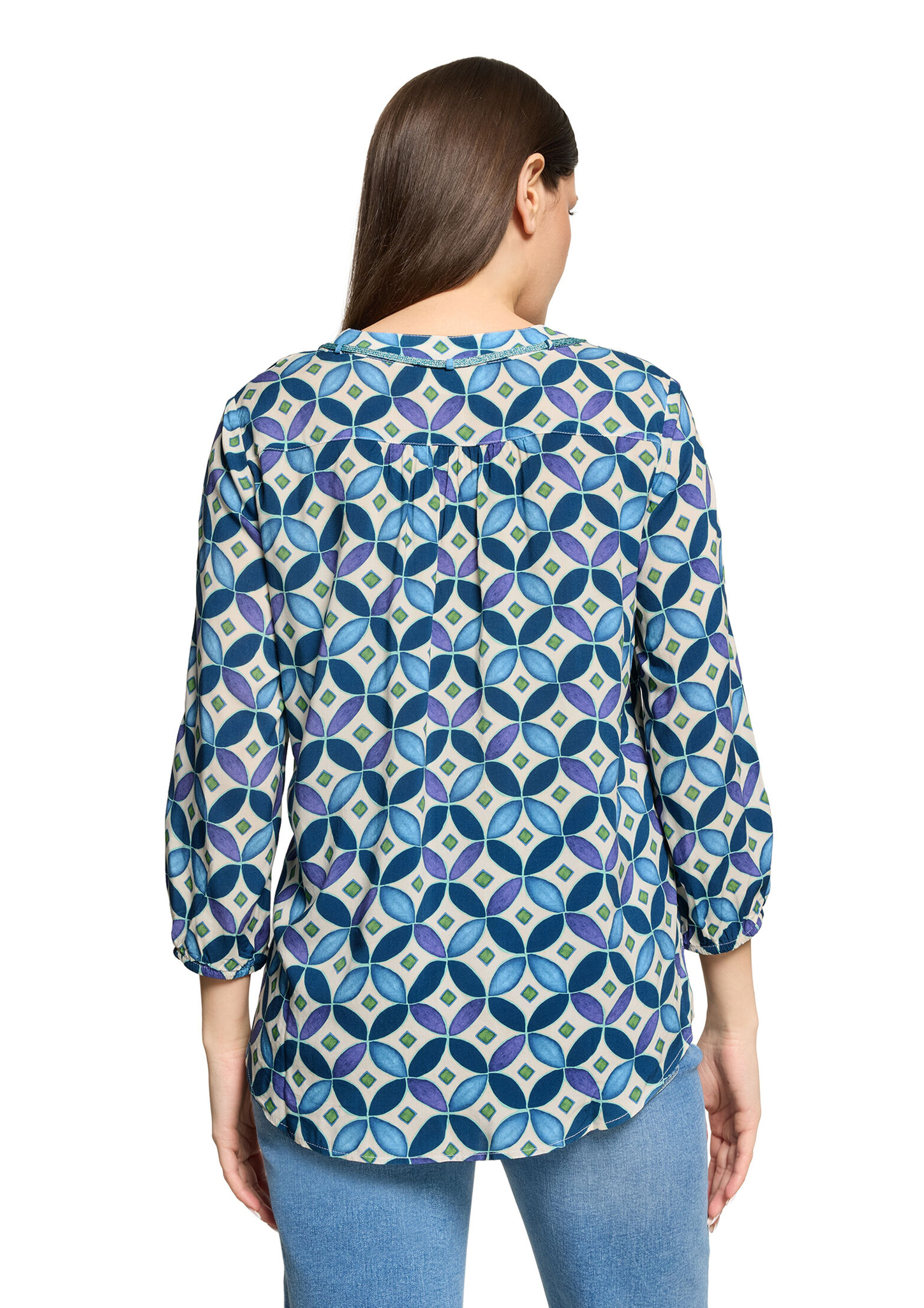 * Passform: Figurumspielend * Gesamtlänge: 70 cm * Ärmellänge: 3/4 Arm * Ausschnittform: Rundhals-Ausschnitt * Kragenform: Stehkragen * Muster: Grafisch
