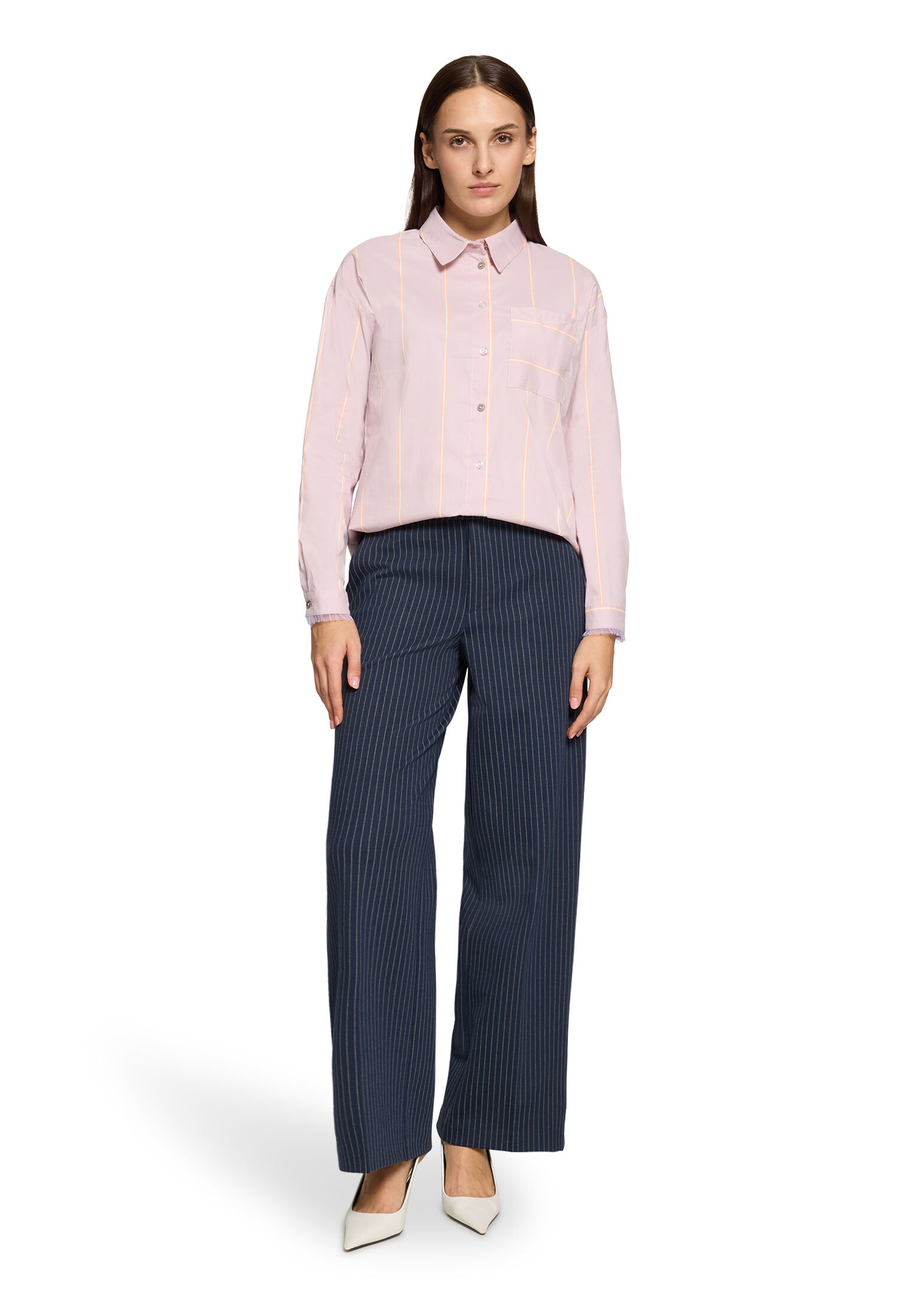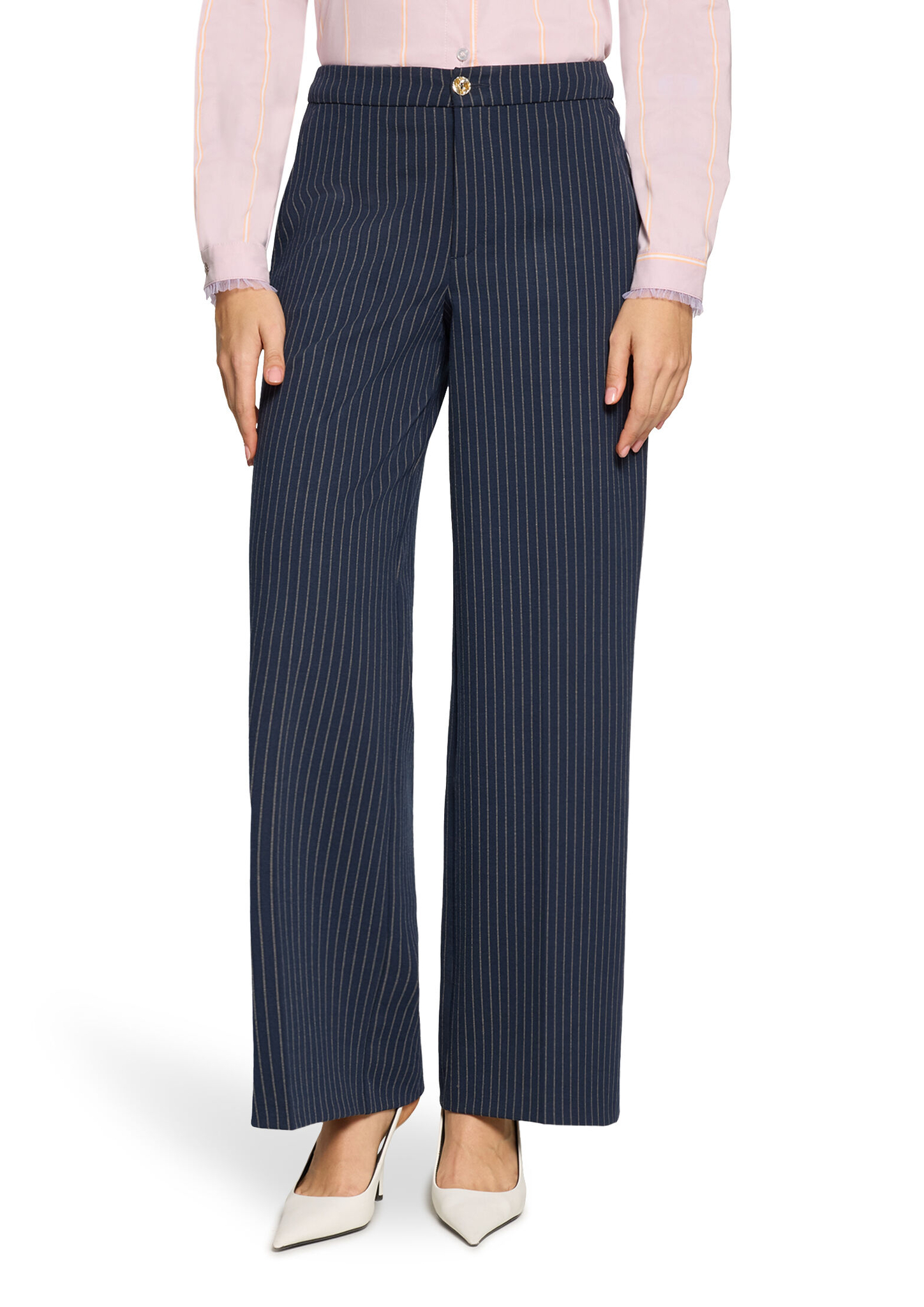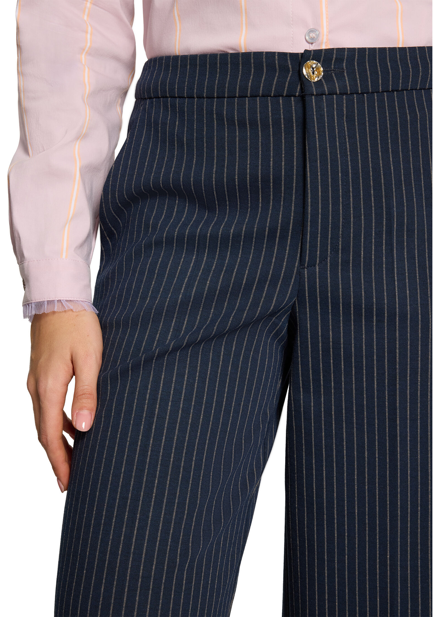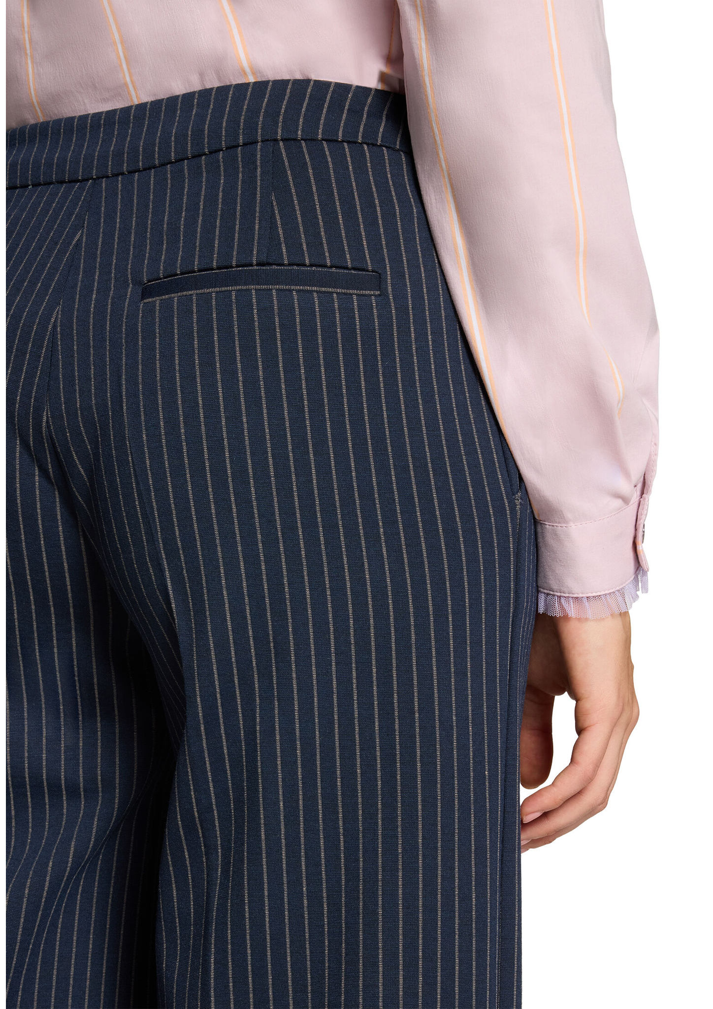 * Passform: Gerade * Schrittlänge: 79 cm * Fussweite: 60 cm * Längeninfo: 1/1 * Leibhöhe: Mid Waist * Tasche: Eingrifftaschen * Muster: Streifen