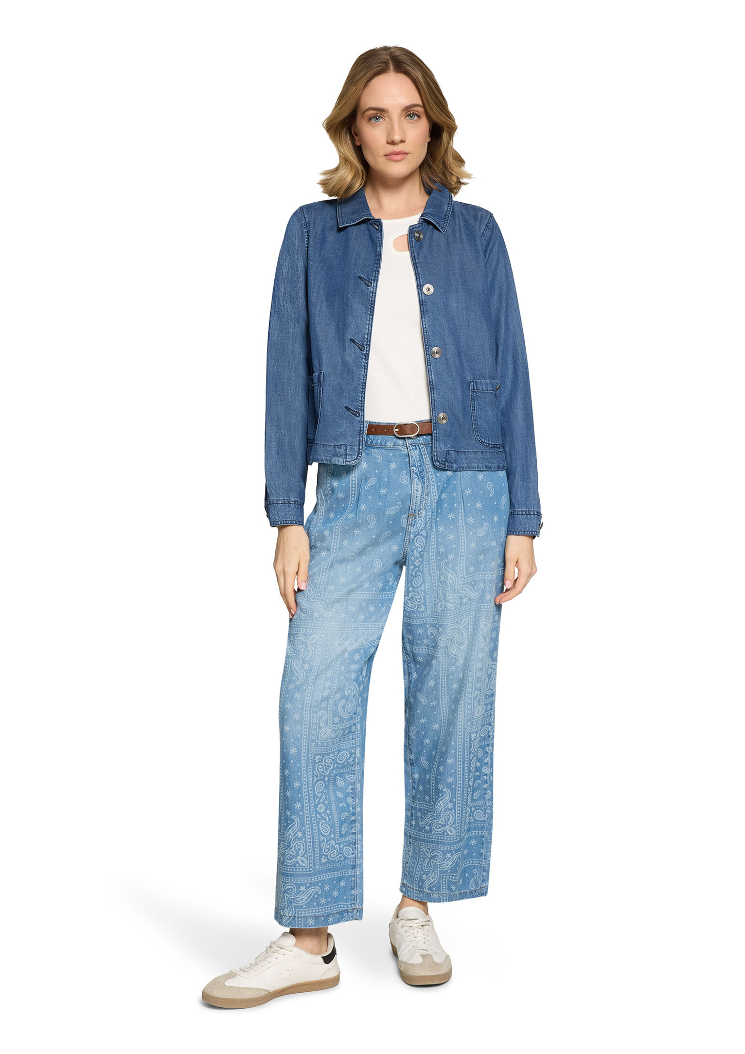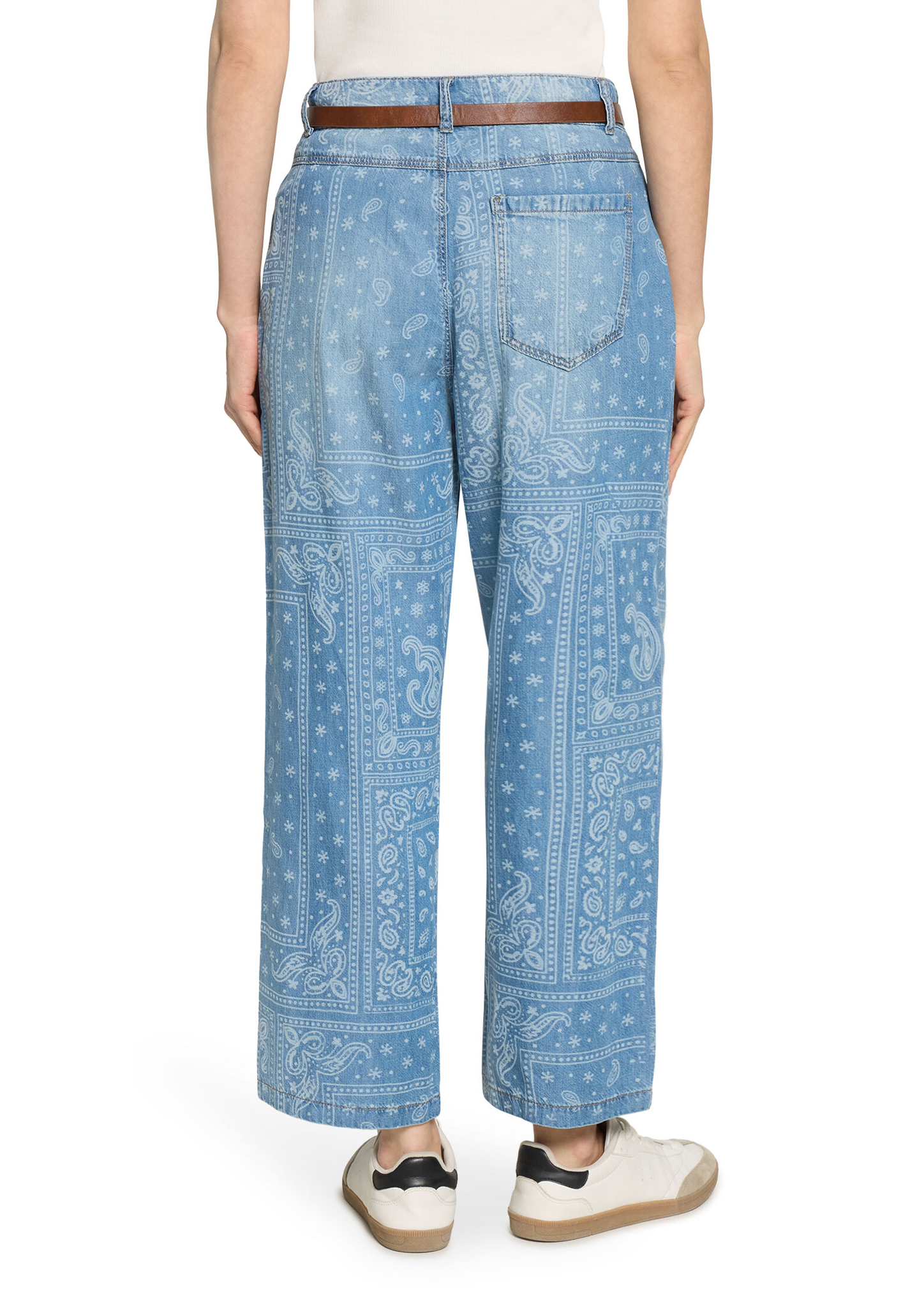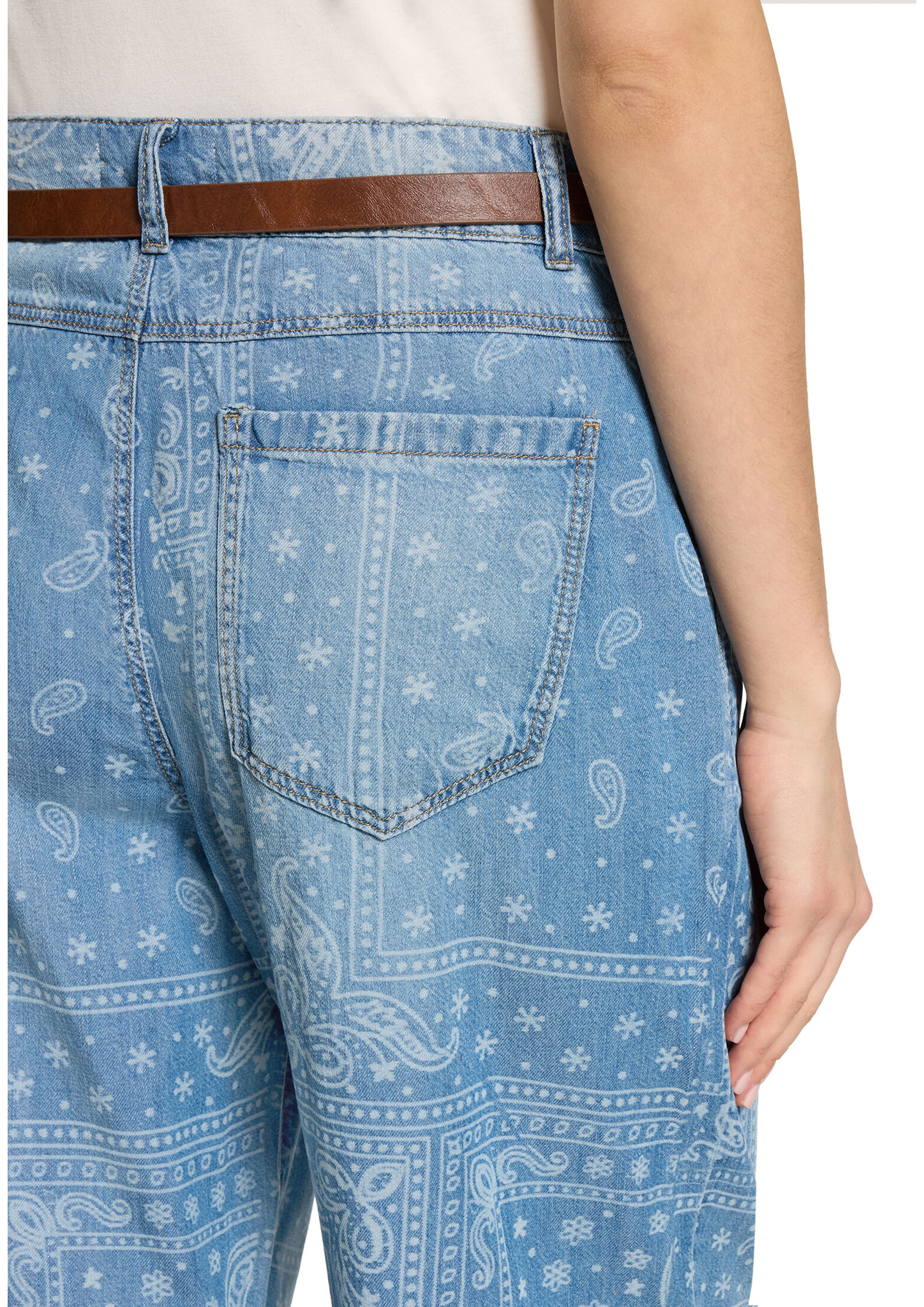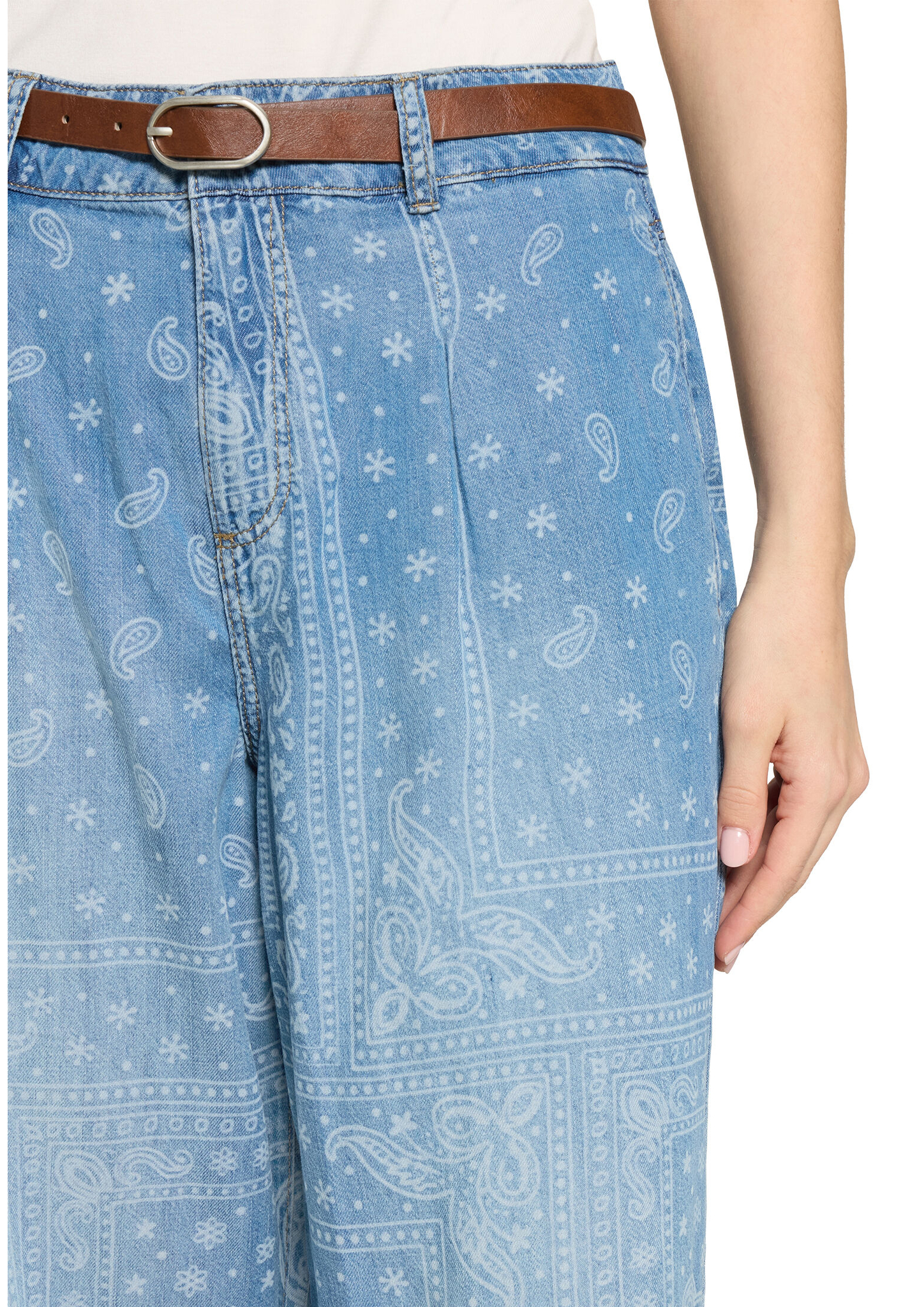 * Passform: Loose Fit * Schrittlänge: 68 cm * Fussweite: 50 cm * Leibhöhe: High Waist * Tasche: Eingrifftaschen * Verschluss: Reißverschluss, Knopf * Muster: Paisley * Gürtel: 100% Polyurethan