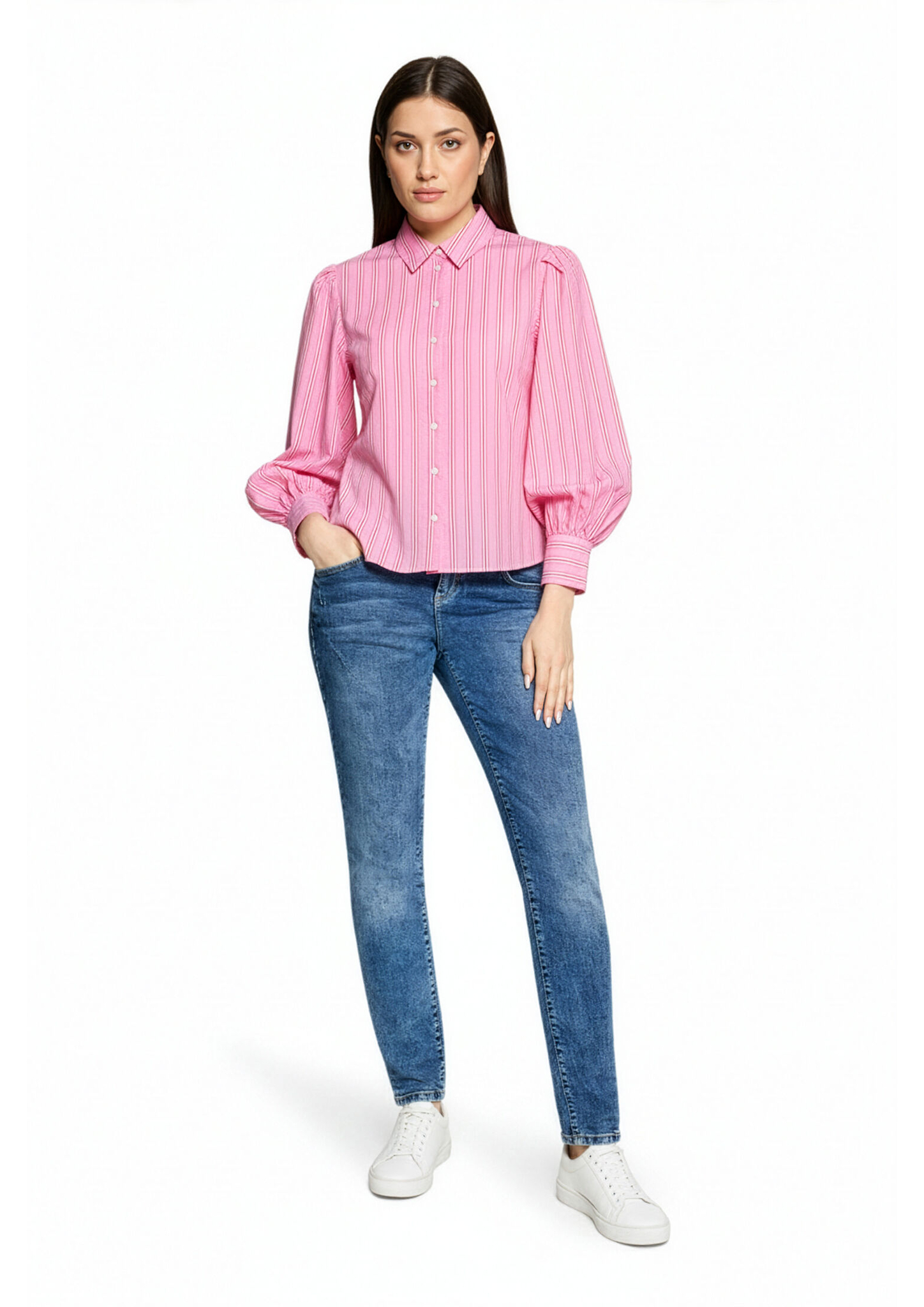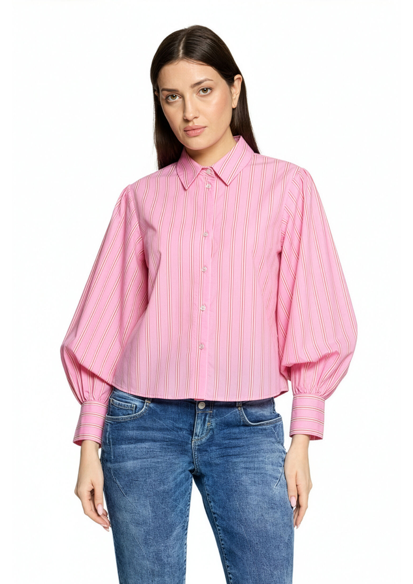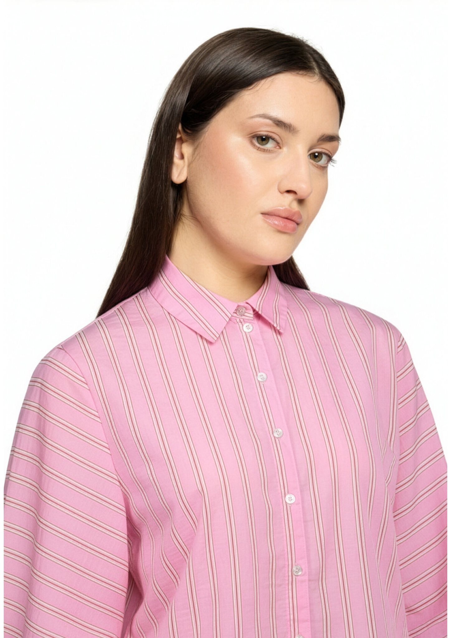 * Passform: Oversized * Gesamtlänge: 62 cm * Ärmellänge: Langarm * Kragenform: Hemdkragen * Verschluss: Knopfleiste * Muster: Streifen