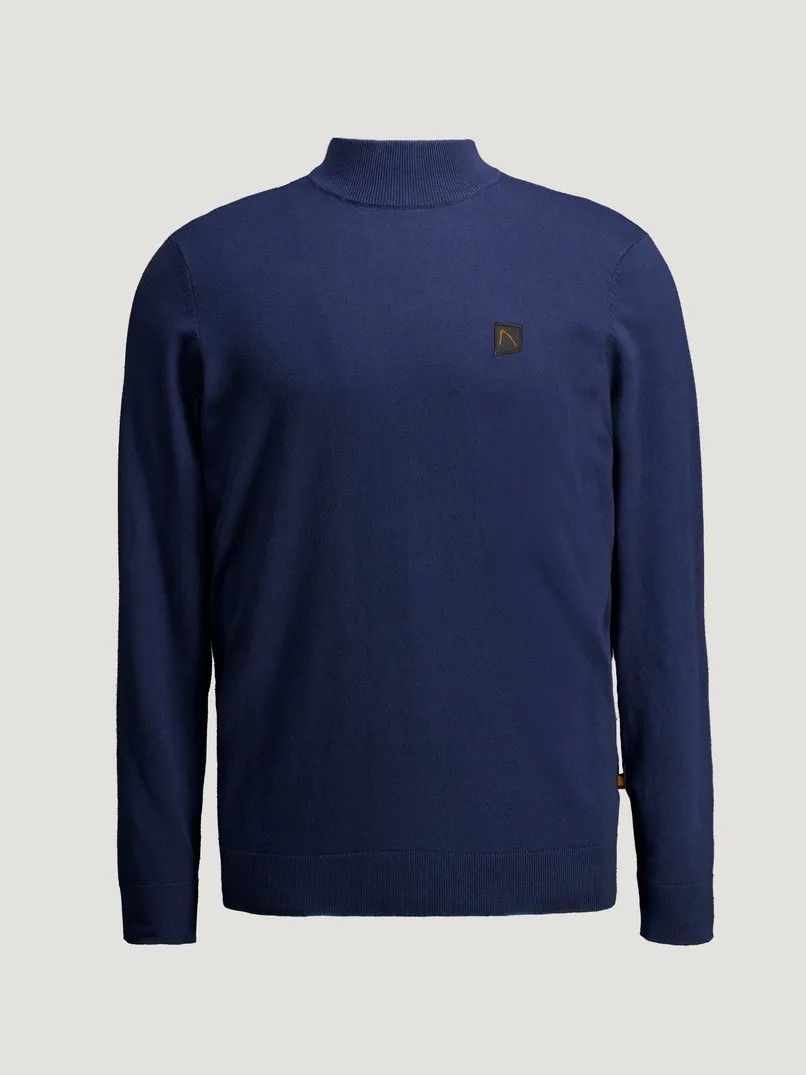 Der Ard Mock ist ein Regular-Fit-Strickpullover mit Mockneck. Mit natürlichem Stretch an geripptem Kragen und Bündchen sowie einem CHASIN'-Komma-Badge auf der Brust.