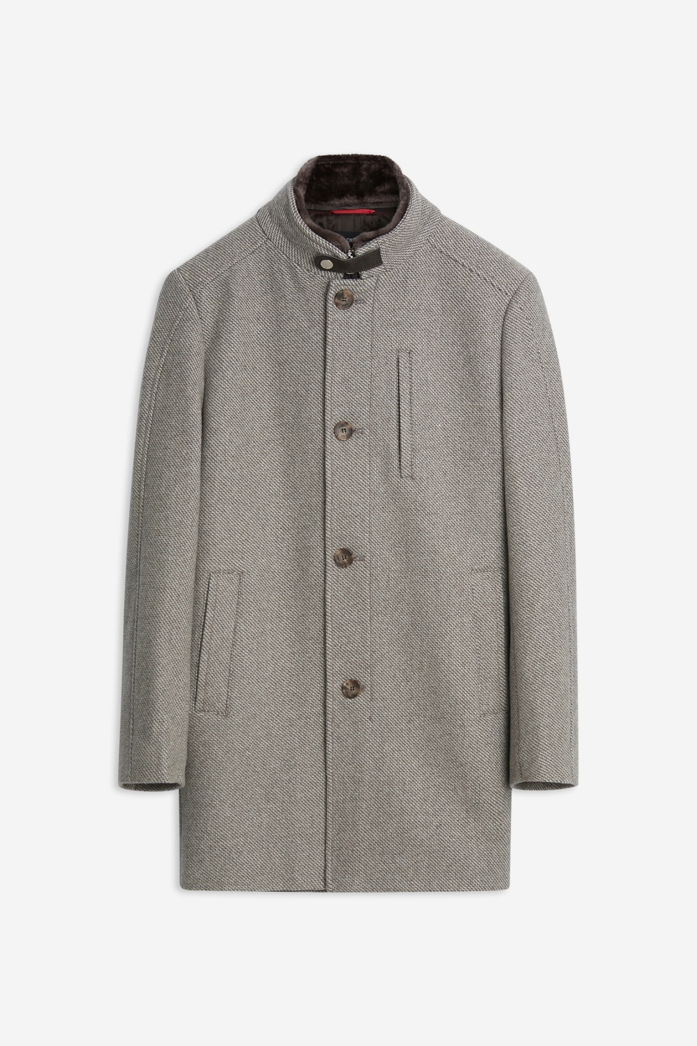 Moderner Stehkragenmantel in 2-in-1-Optik, mit austrennbarem Krageneinsatz. Passt perfekt zum Anzug und ergänzt jeden Freizeitlook mühelos.
