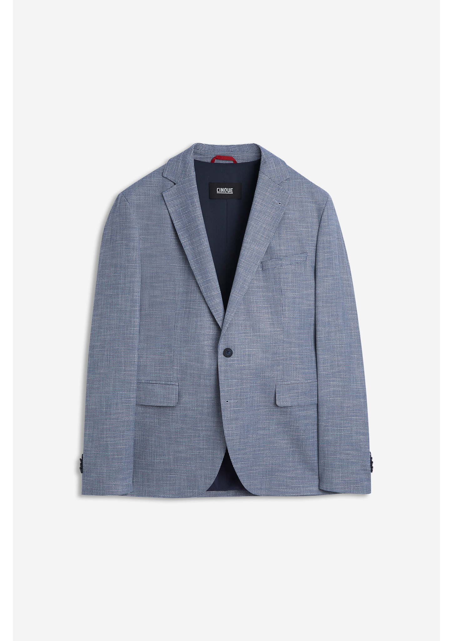 Modernes Sakko, das besonders durch das fallende Revers geprägt ist. Eine Brusttasche für das Einstecktuch und Pattentaschen runden den Style aus der aktuellen CINQUE Kollektion ab.