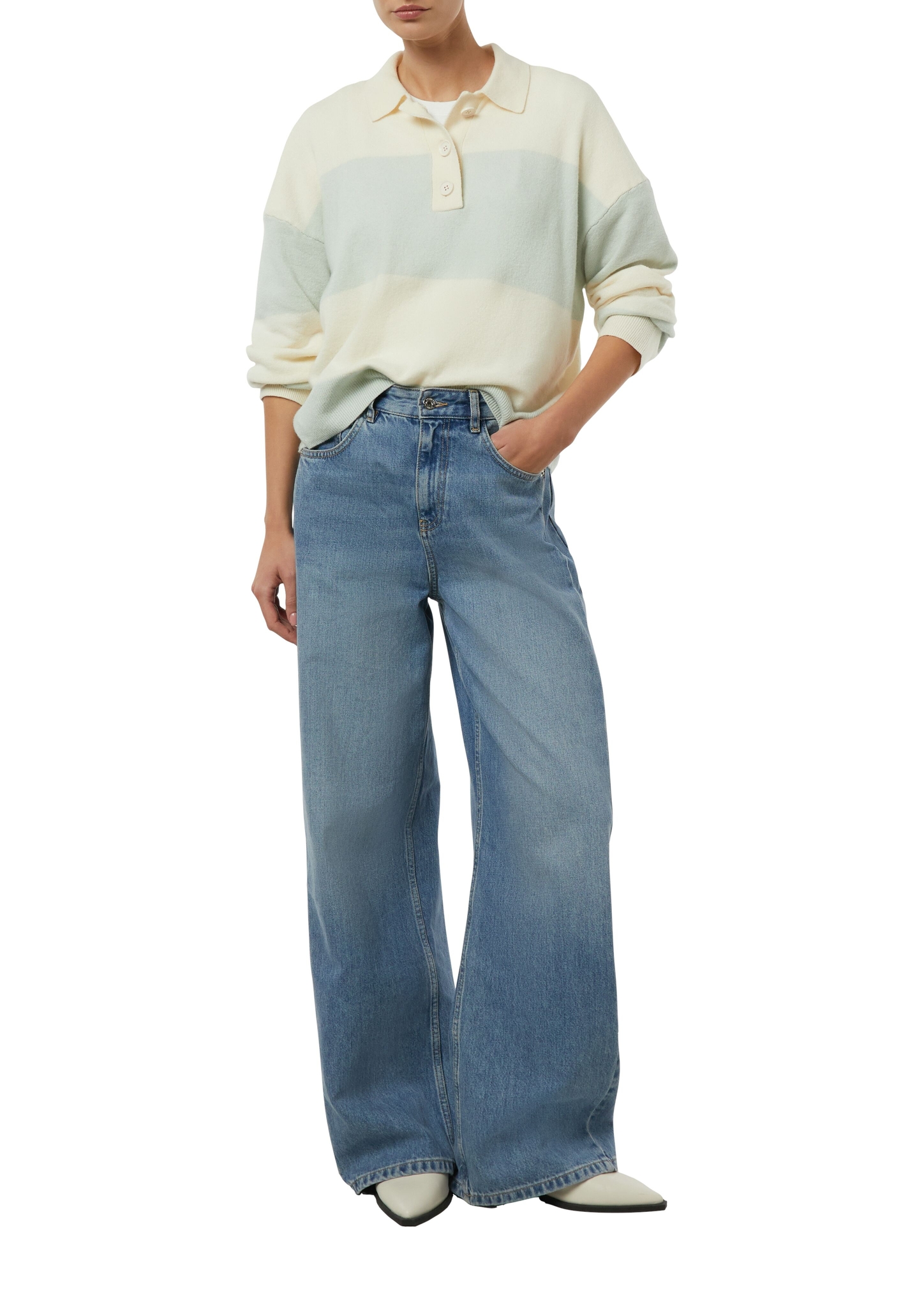 Pflegehinweise "Comma Gestreifter Feinstrickpullover mit Polokragen "