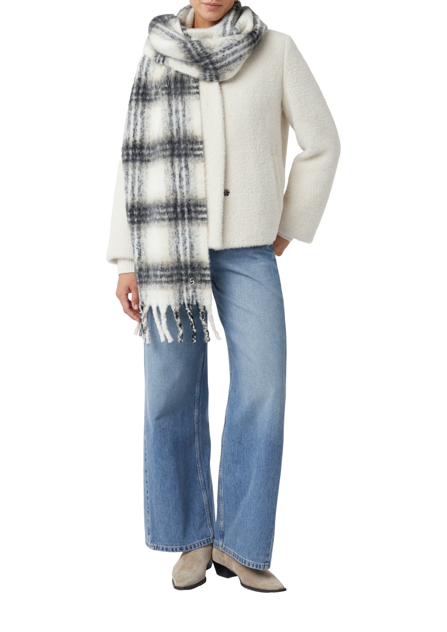 Materialzusammensetzung "Comma Karierter Schal mit Fransen"