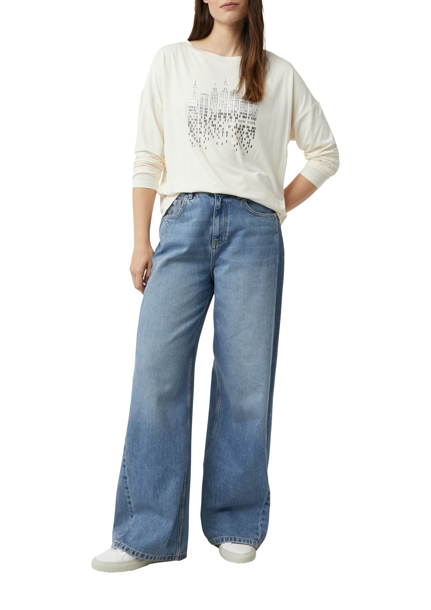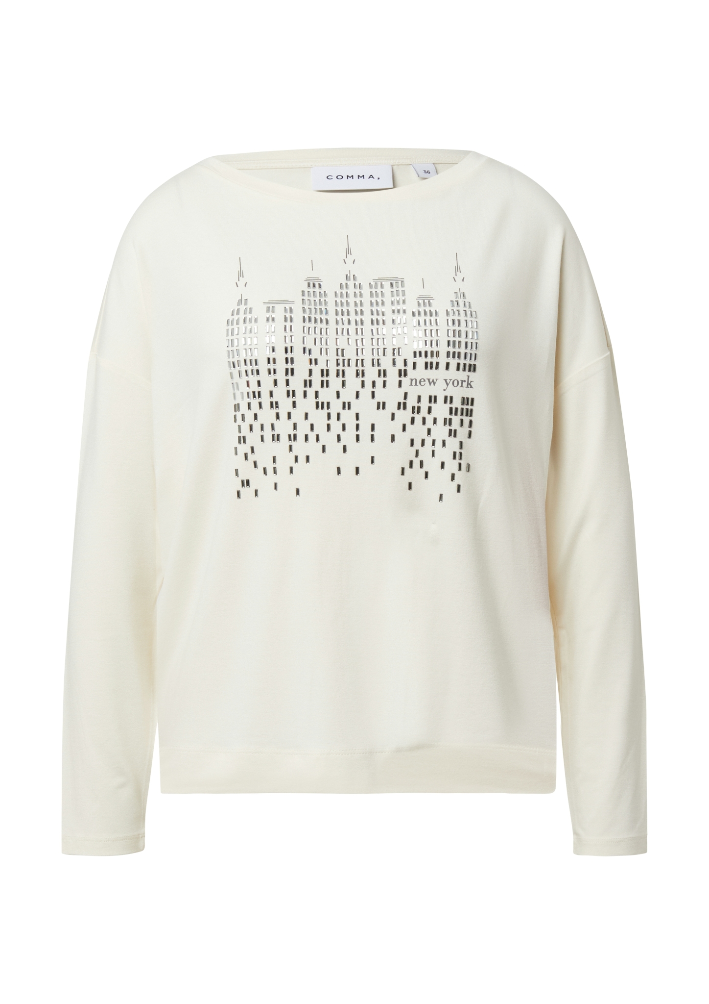 Eigenschaften "Comma Langarmshirt mit Frontprint und Strassdetails"