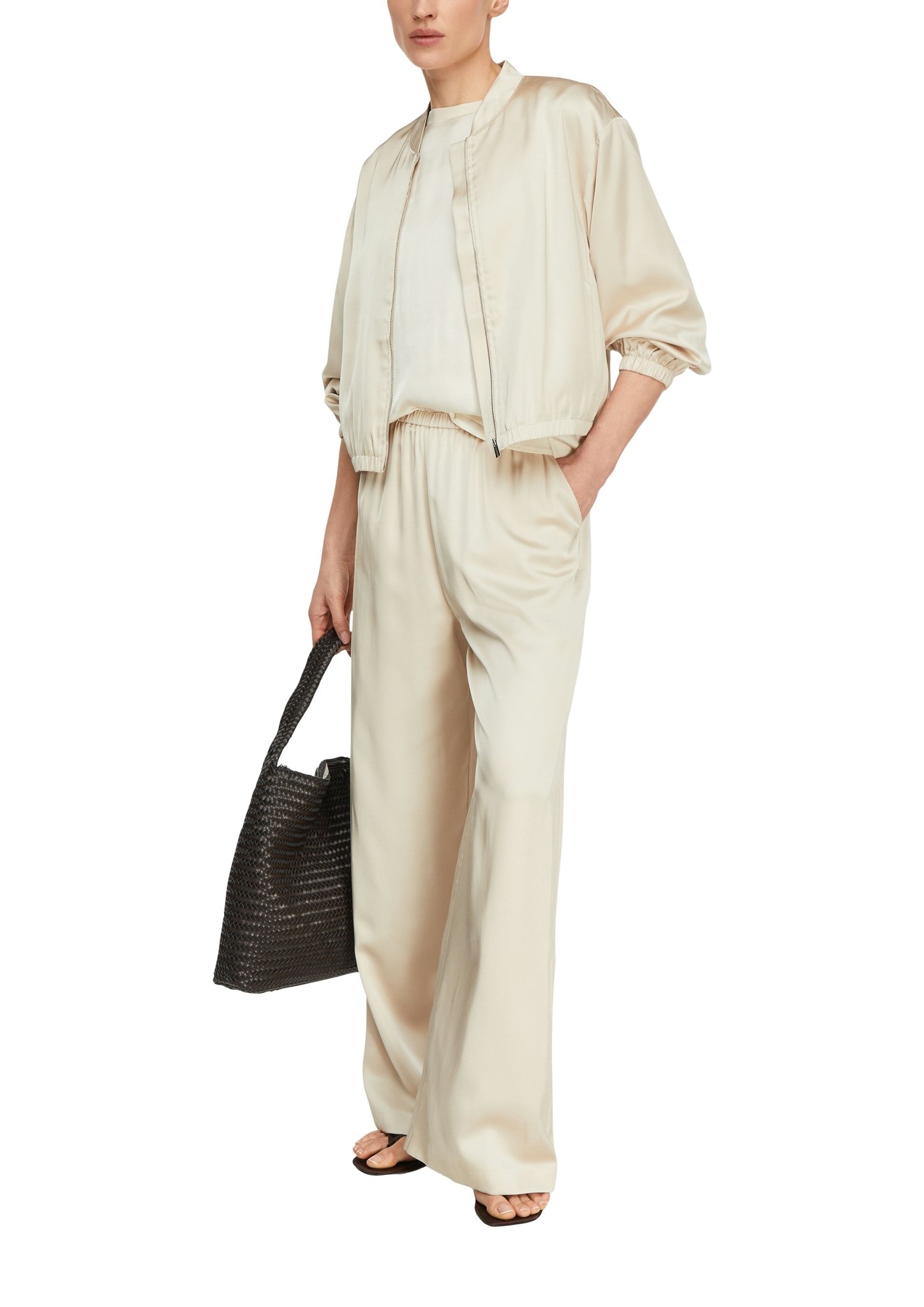 Materialzusammensetzung "Comma Satin-Mix-Shirt mit fließenden Kurzärmeln und geripptem Ausschnitt "