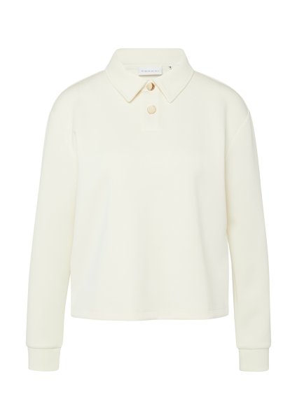 Entdecken Sie dieses softe Sweatshirt mit elegantem Polokragen und raffinierten Zierknöpfen. Das lässige Design vereint sportiven Komfort mit femininer Note und lässt sich vielseitig kombinieren. Perfekt für entspannte Freizeitmomente oder den Casual-Friday im Büro. Tragen Sie es zur Jeans für einen unkomplizierten Look oder stylen Sie es zur Stoffhose für einen eleganteren Auftritt. Die Langarmvariante bietet angenehme Wärme an kühleren Tagen.