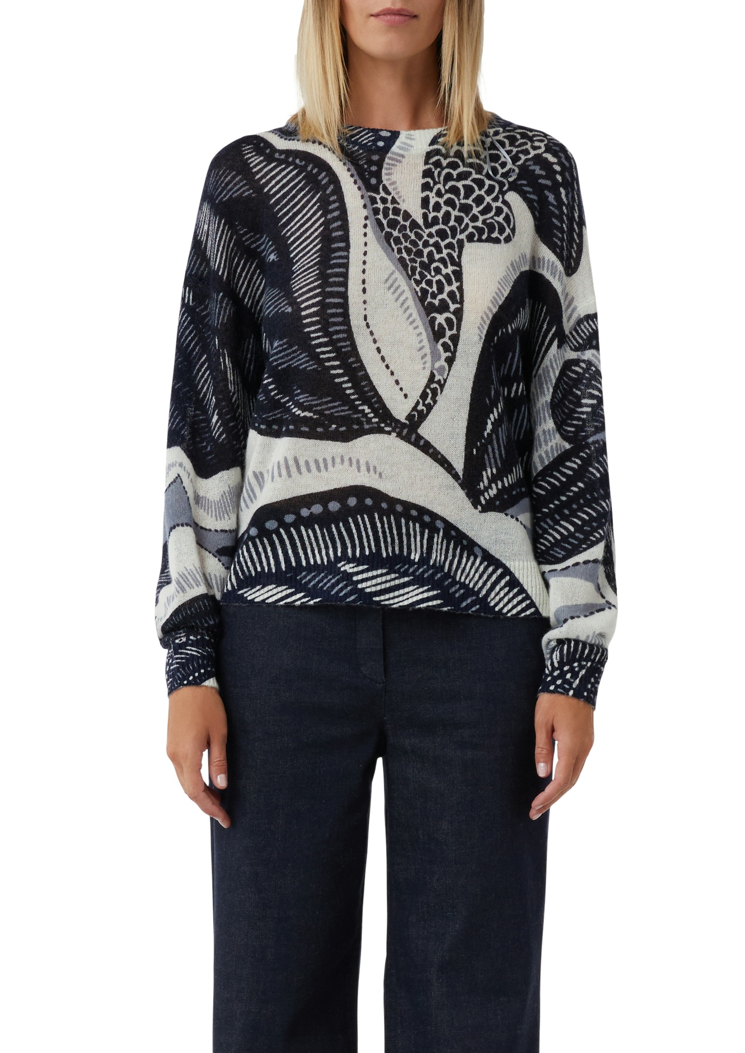Pflegehinweise "Comma Wollmixpullover im Relaxed Fit mit All-over-Artwork"