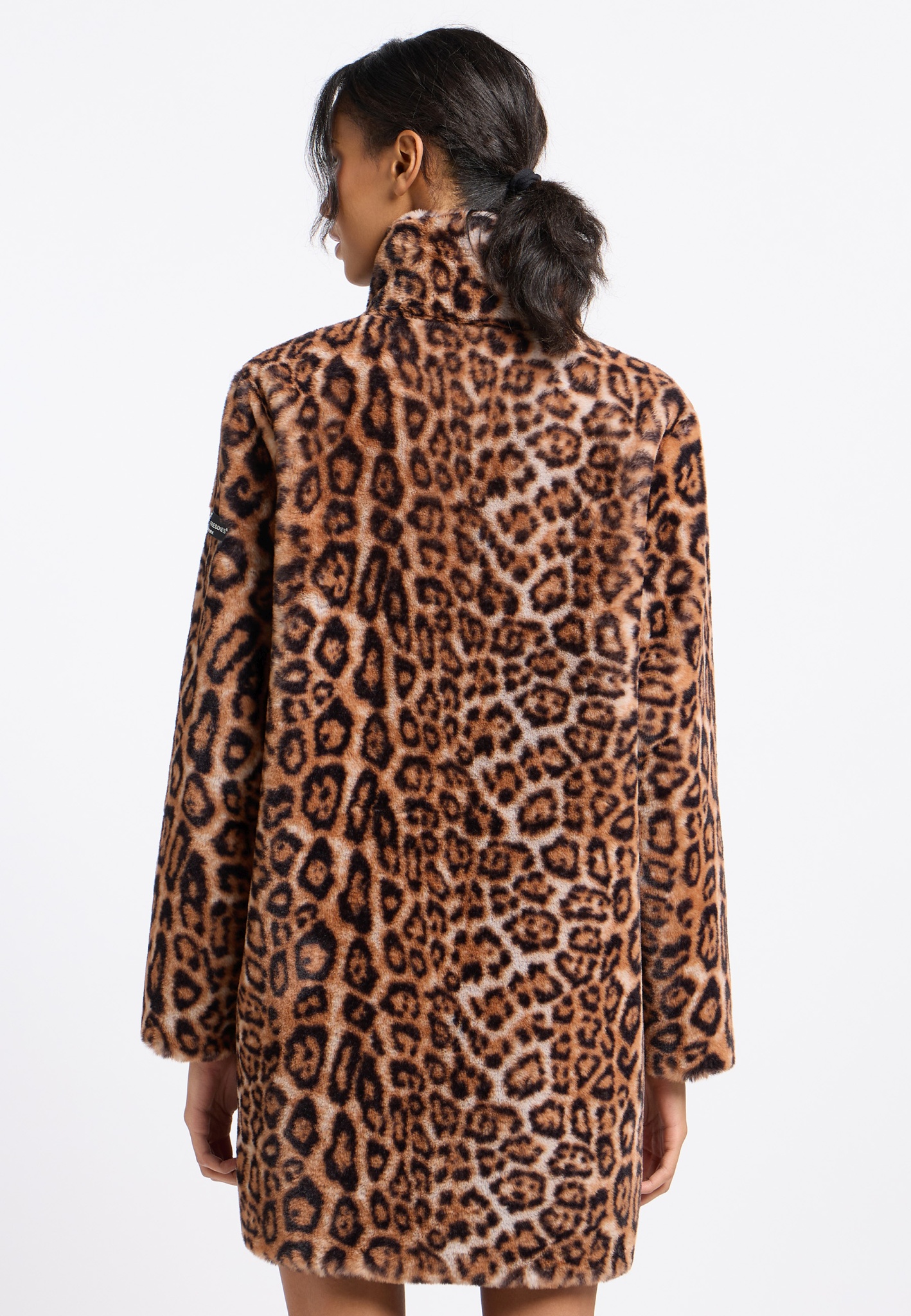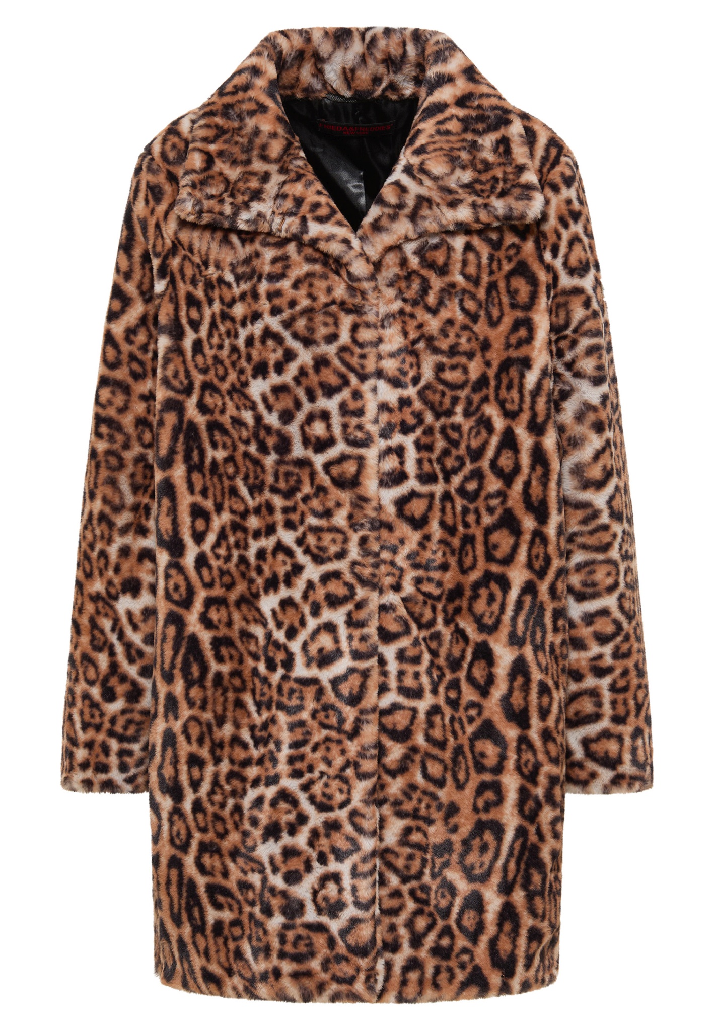 Mit dem Fake Fur Coat Eve-Mary setzt du ein Statement. Das Leo-Muster verleiht dem Look eine ordentliche Portion Attitude, während das kuschelige Material für höchsten Tragekomfort sorgt. Ein dezentes Detail am Ärmel rundet den Look stilvoll ab - wild, aber mit Klasse. Der Mantel wird durch Haken und Ösen verschlossen, sodass der Verschluss praktisch unsichtbar bleibt.
