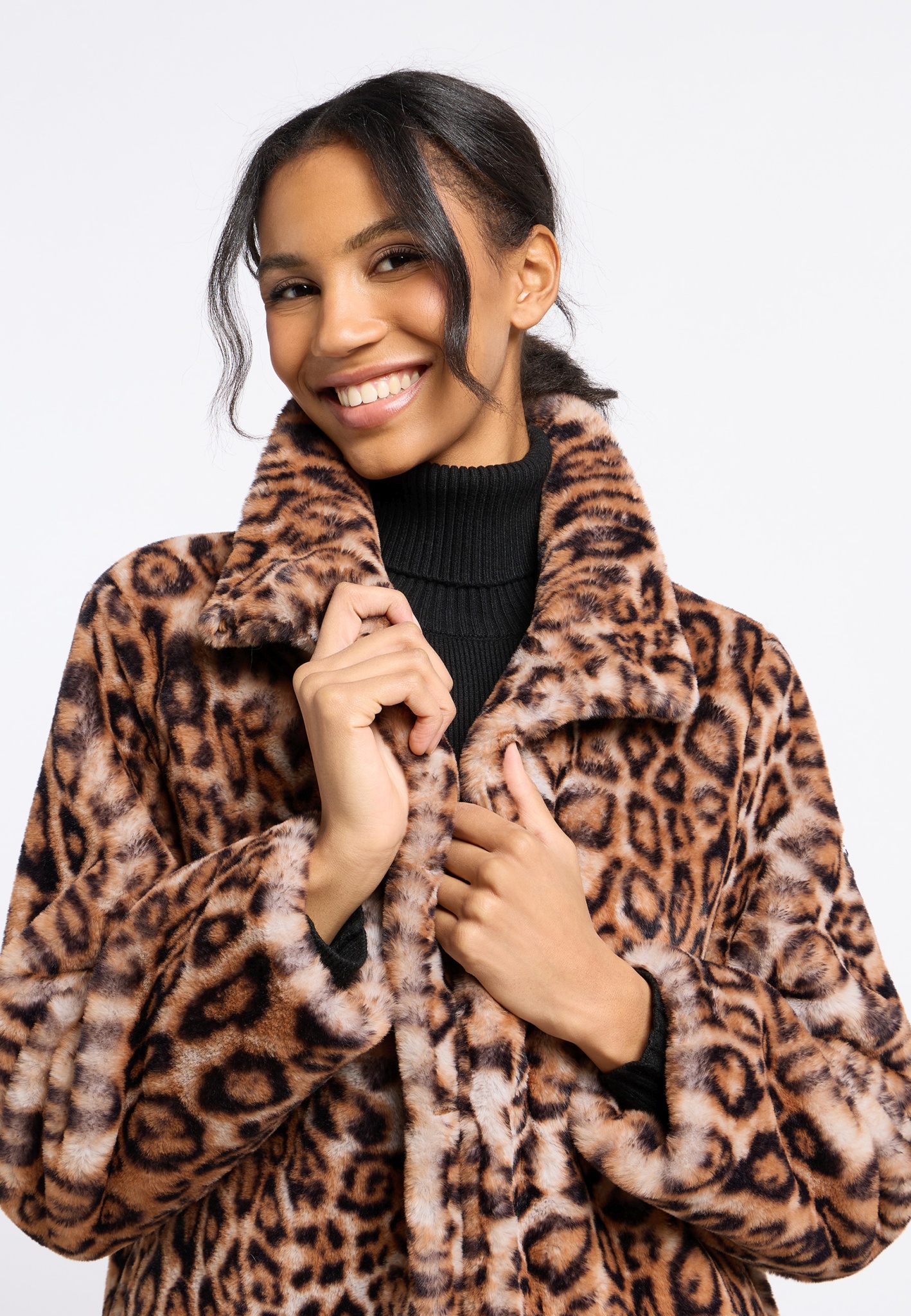 Mit dem Fake Fur Coat Eve-Mary setzt du ein Statement. Das Leo-Muster verleiht dem Look eine... mehr