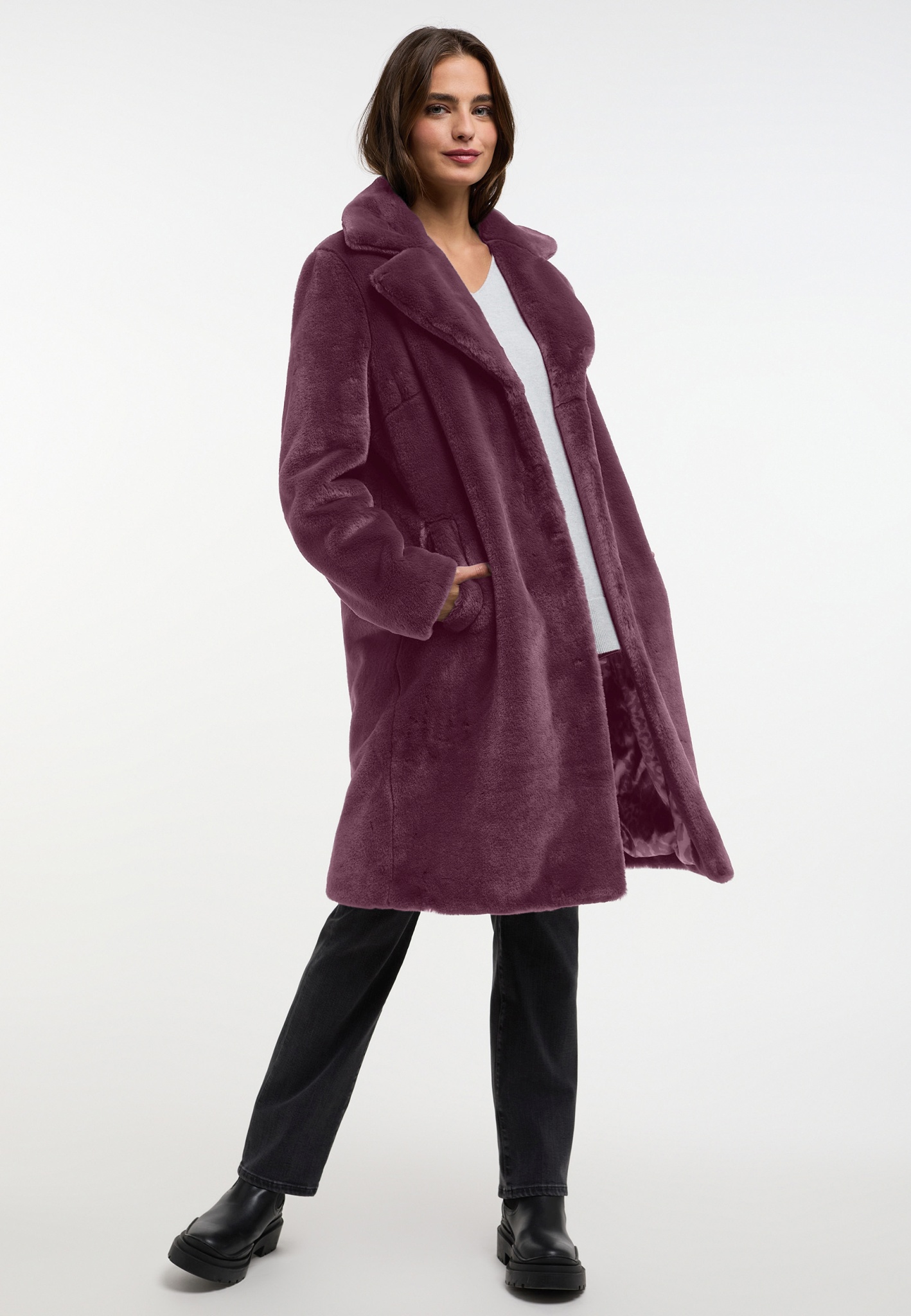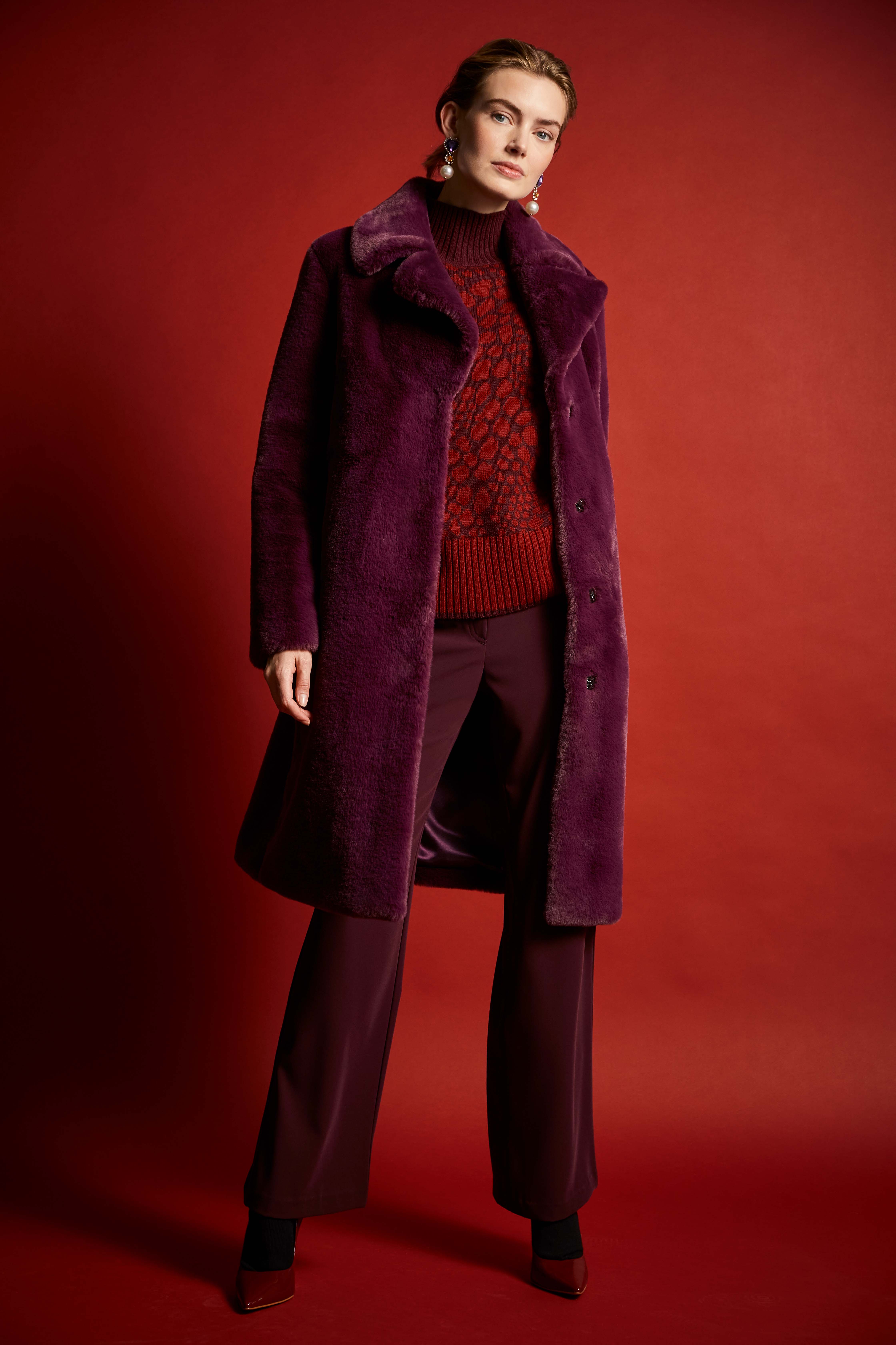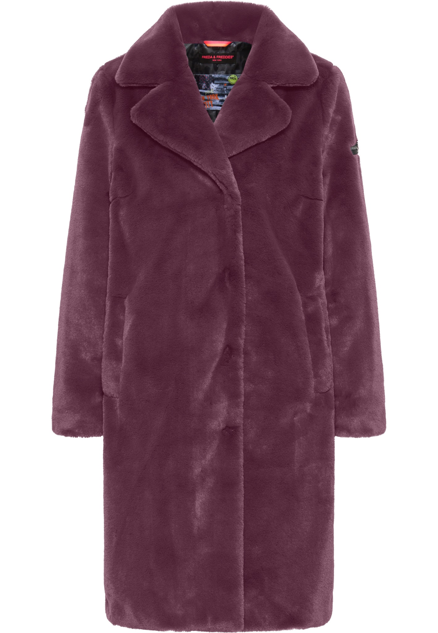 Der Damenmantel Moonriver von Frieda & Freddies präsentiert sich mit einem geraden Schnitt und einem eleganten Reverskragen. Der Kunstfellbesatz verleiht dem Mantel eine besondere Note, während seitliche Eingrifftaschen praktischen Stauraum bieten. Ideal für stilvolle Auftritte an kühleren Tagen.