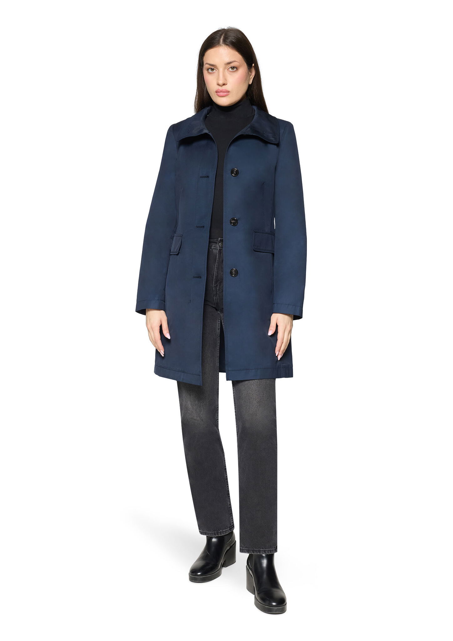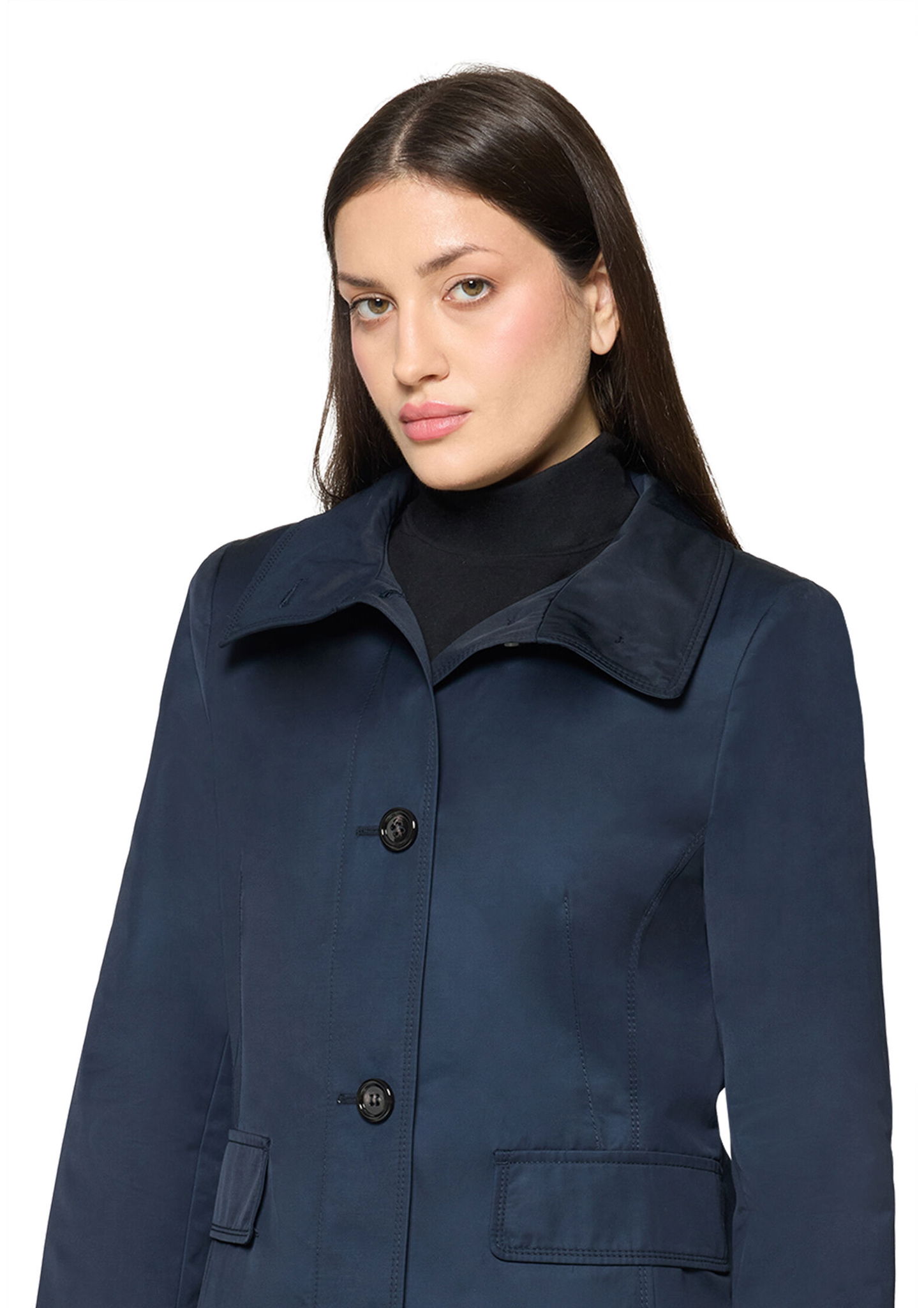 * Passform: Tailliert * Gesamtlänge: 88 cm * Ärmellänge: Langarm * Kragenform: Stehkragen * Materialart: Baumwoll-Mischung * Tasche: Pattentaschen, Eingrifftaschen * Verschluss: Knopfleiste * Muster: Uni * Futter: 100% Polyester