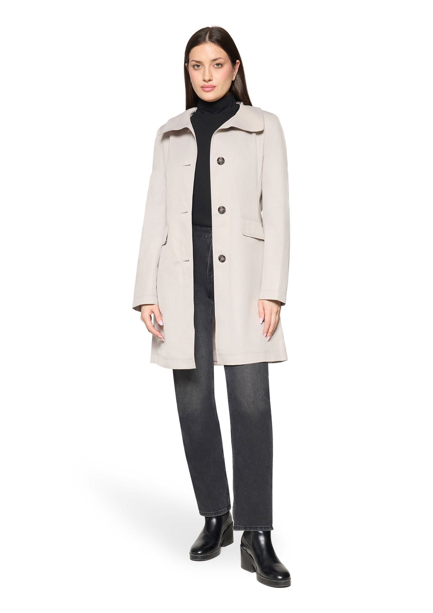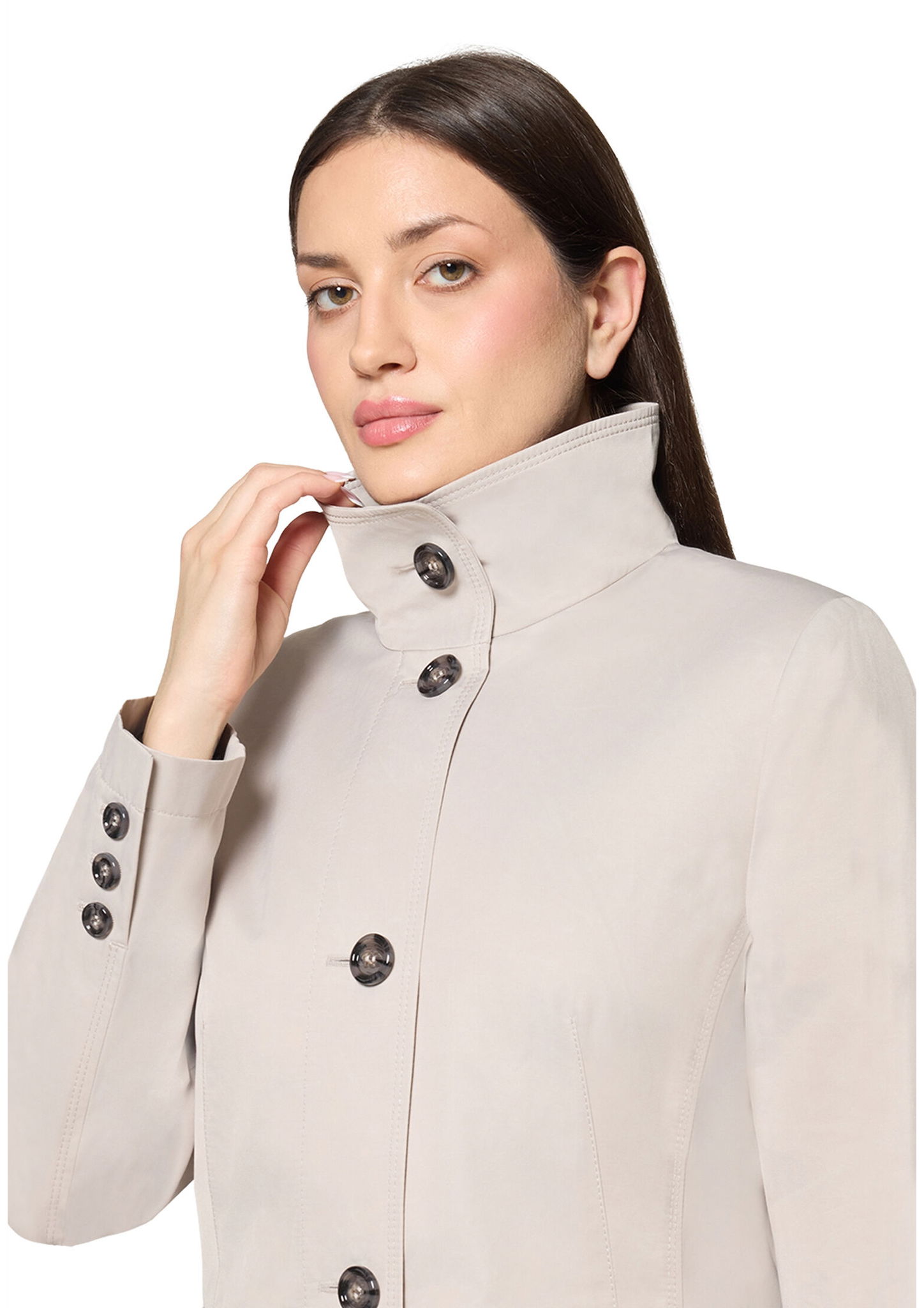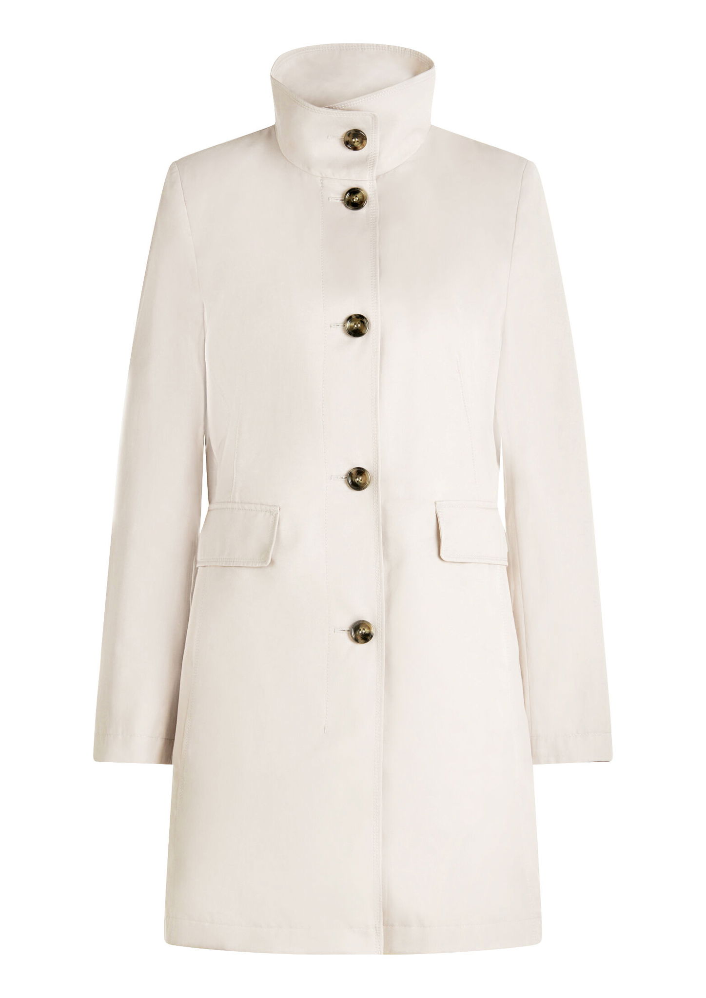 * Passform: Tailliert * Gesamtlänge: 88 cm * Ärmellänge: Langarm * Kragenform: Stehkragen * Materialart: Baumwoll-Mischung * Tasche: Pattentaschen, Eingrifftaschen * Verschluss: Knopfleiste * Muster: Uni * Futter: 100% Polyester