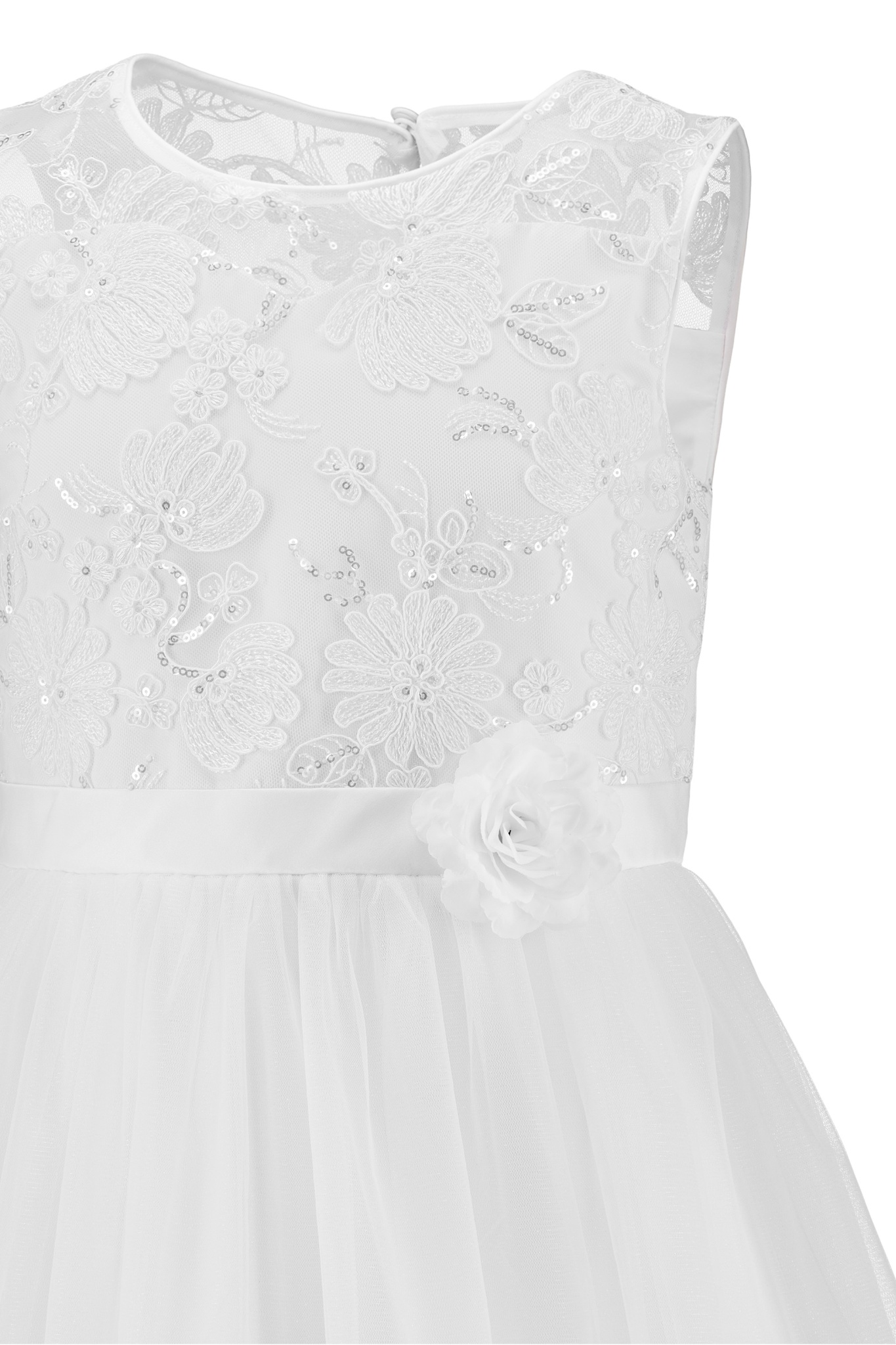 - Satin-Bindeband mit Blume, Glitzer-Tüllrock mit Spitzenborde