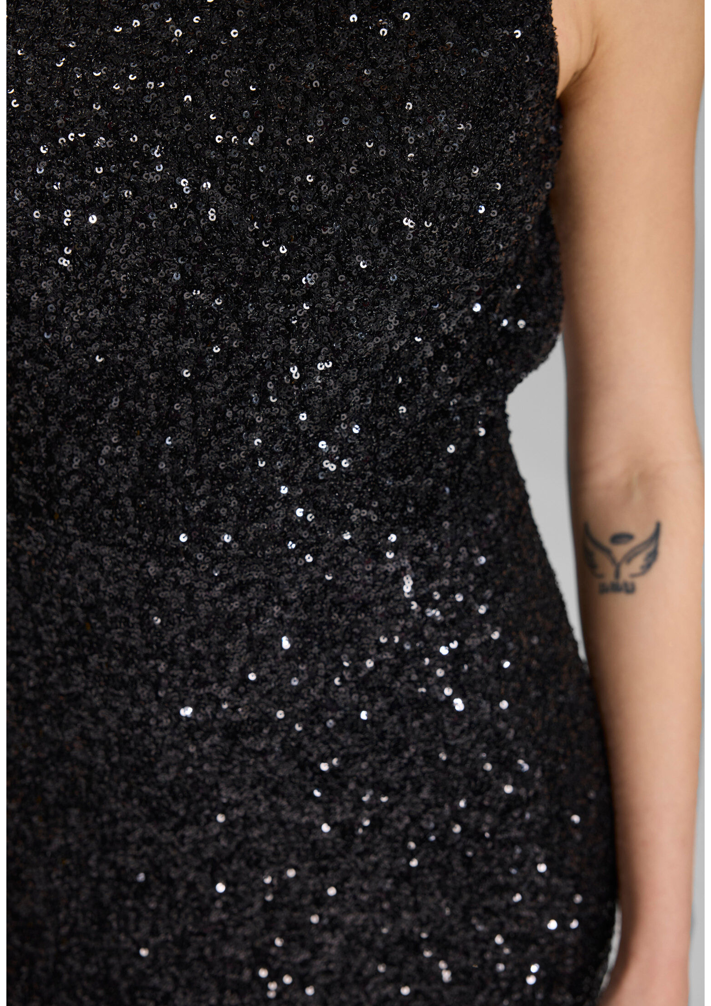 Hochgeschlossenes Paillettenkleid mit Rückenausschnitt