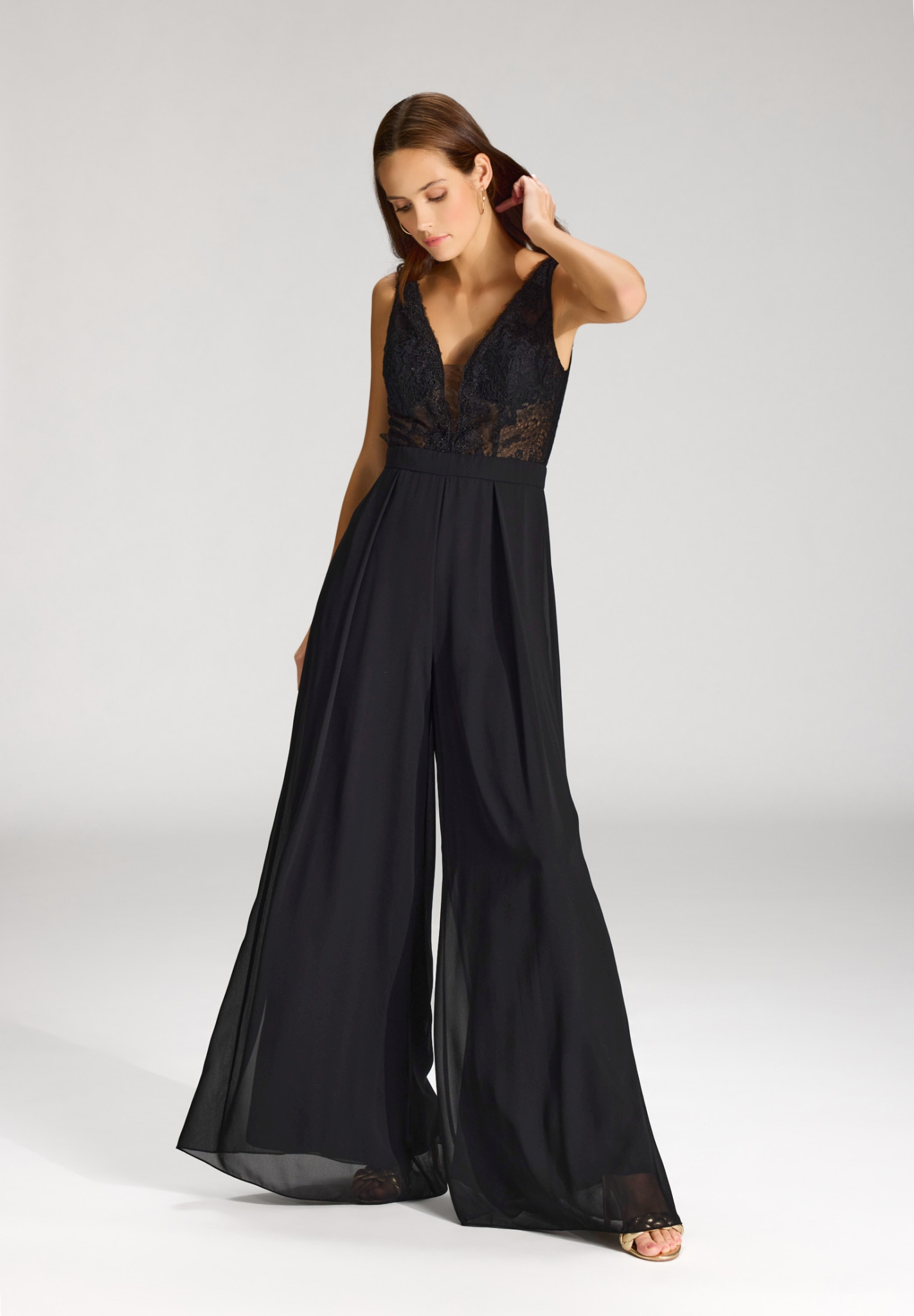 Weiterführende Links zu "Hey Kyla Jumpsuit mit Spitzentop und ausgestelltem Bein"