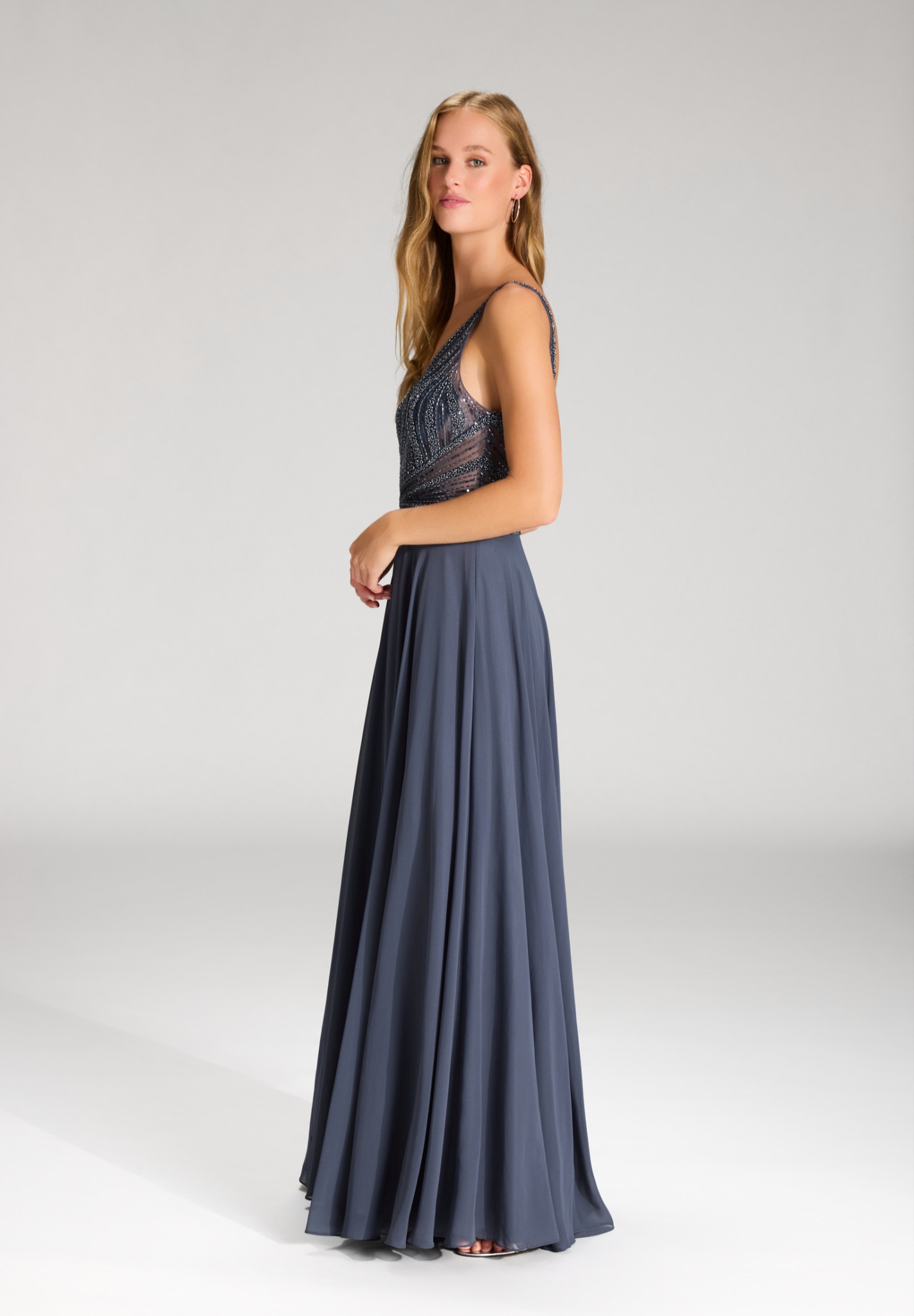 Eigenschaften "Hey Kyla Langes Chiffon-Abendkleid mit Stickerei"
