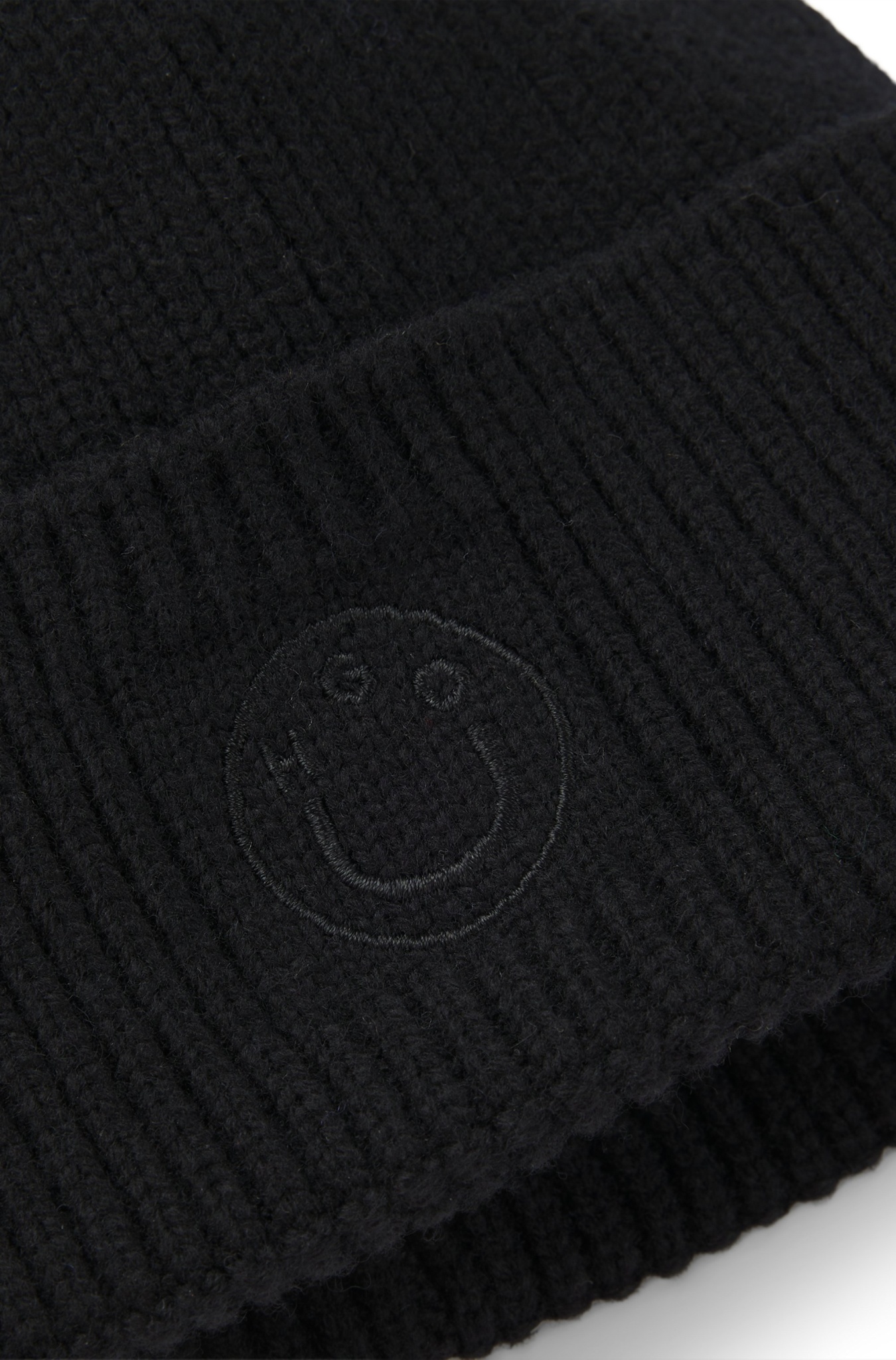 Die softe HUGO Mütze mit Ripp-Struktur rundet deine Winter-Looks ab. Mit wärmendem Schurwoll-Anteil. Tonale Happy HUGO Logo-Stickerei.