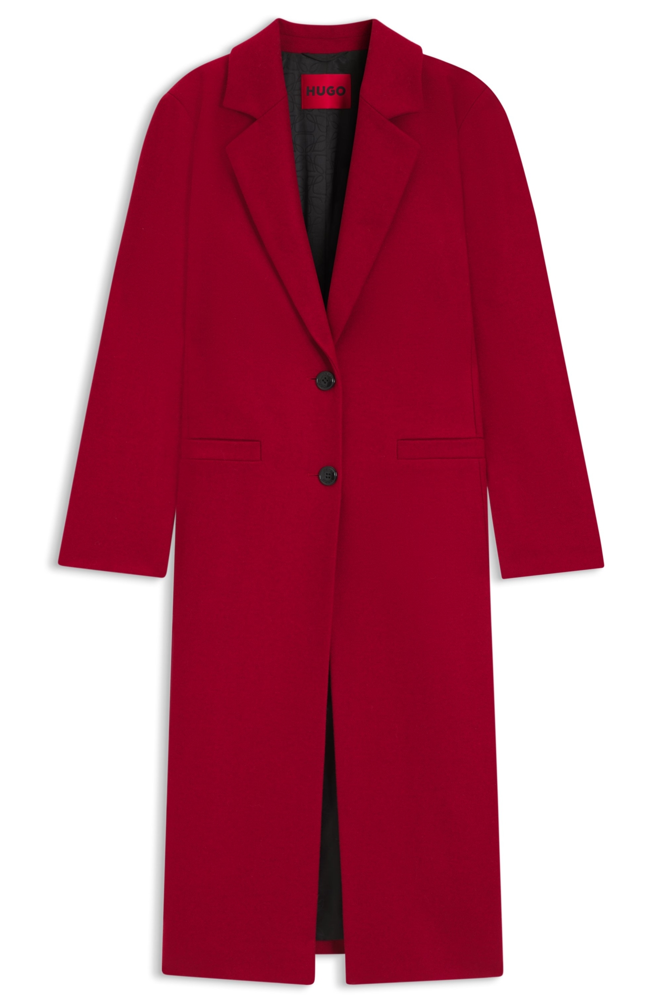 Der locker geschnittene HUGO Mantel eignet sich ideal für jeden Tag. Aus einem edlen Woll-Mix. Mit einreihiger Knopfleiste. Monogramm-Niete. Dieses Produkt enthält mindestens 60 % bessere Rohstoffe. Dieses Produkt wird teilweise mit recycelter Wolle gefertigt. Für bestimmte Materialien wie Wolle mischen wir recycelte und neue Bestandteile, um ein hochwertiges Produkt anbieten können.